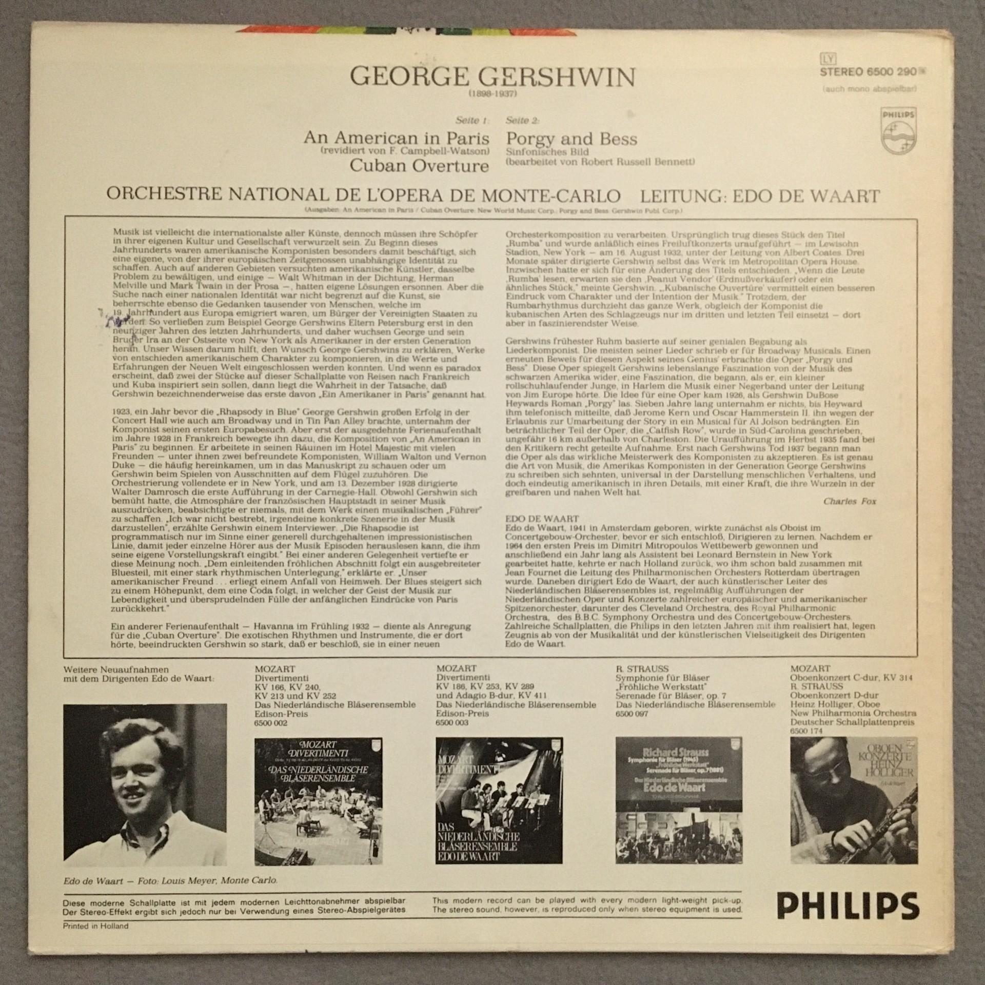 T255 Gershwin An American in Paris De Waart Philips 6500 290 Stereo