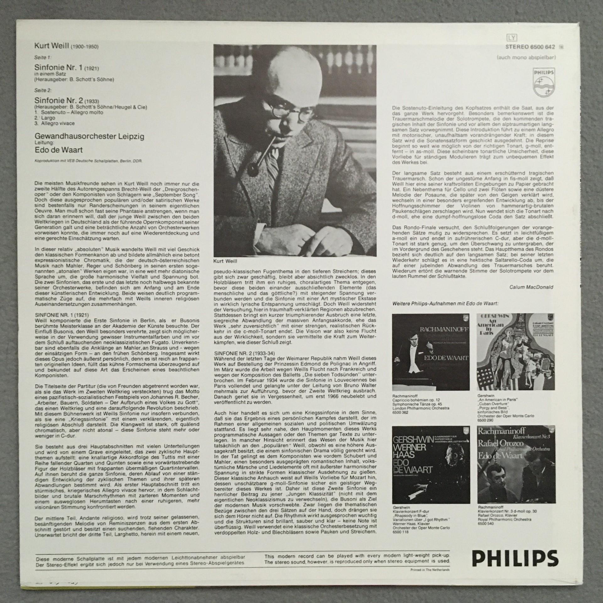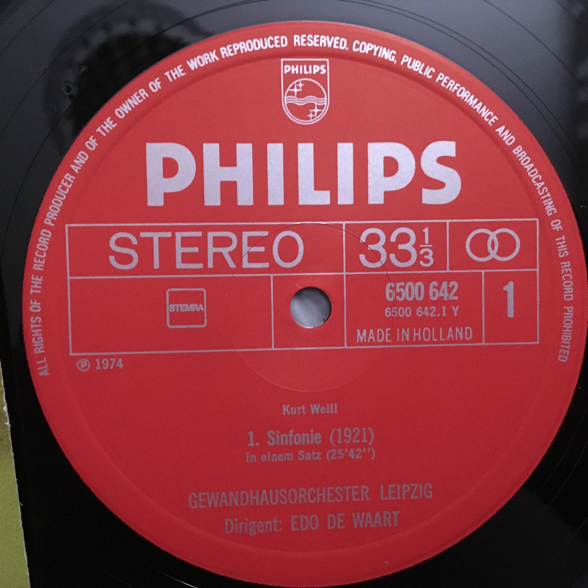 T256 Kurt Weill The 2 Symphonies de Waart Philips 6500 642 Stereo
