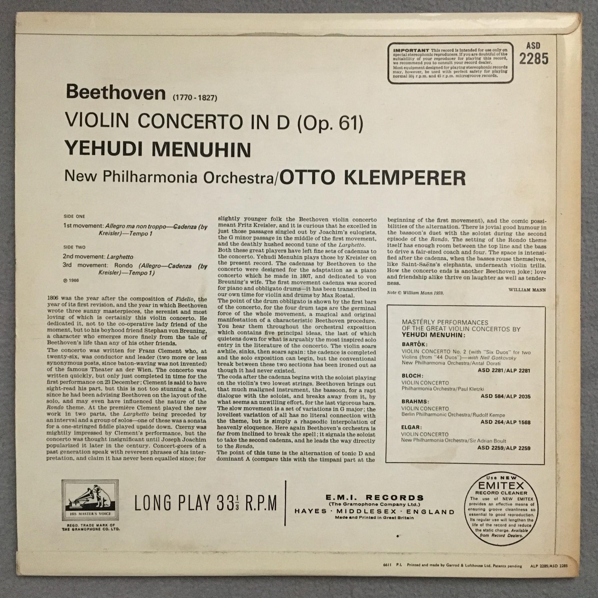 T258 Beethoven Violin Concerto Menuhin Klemperer HMV ASD 2285 Stereo