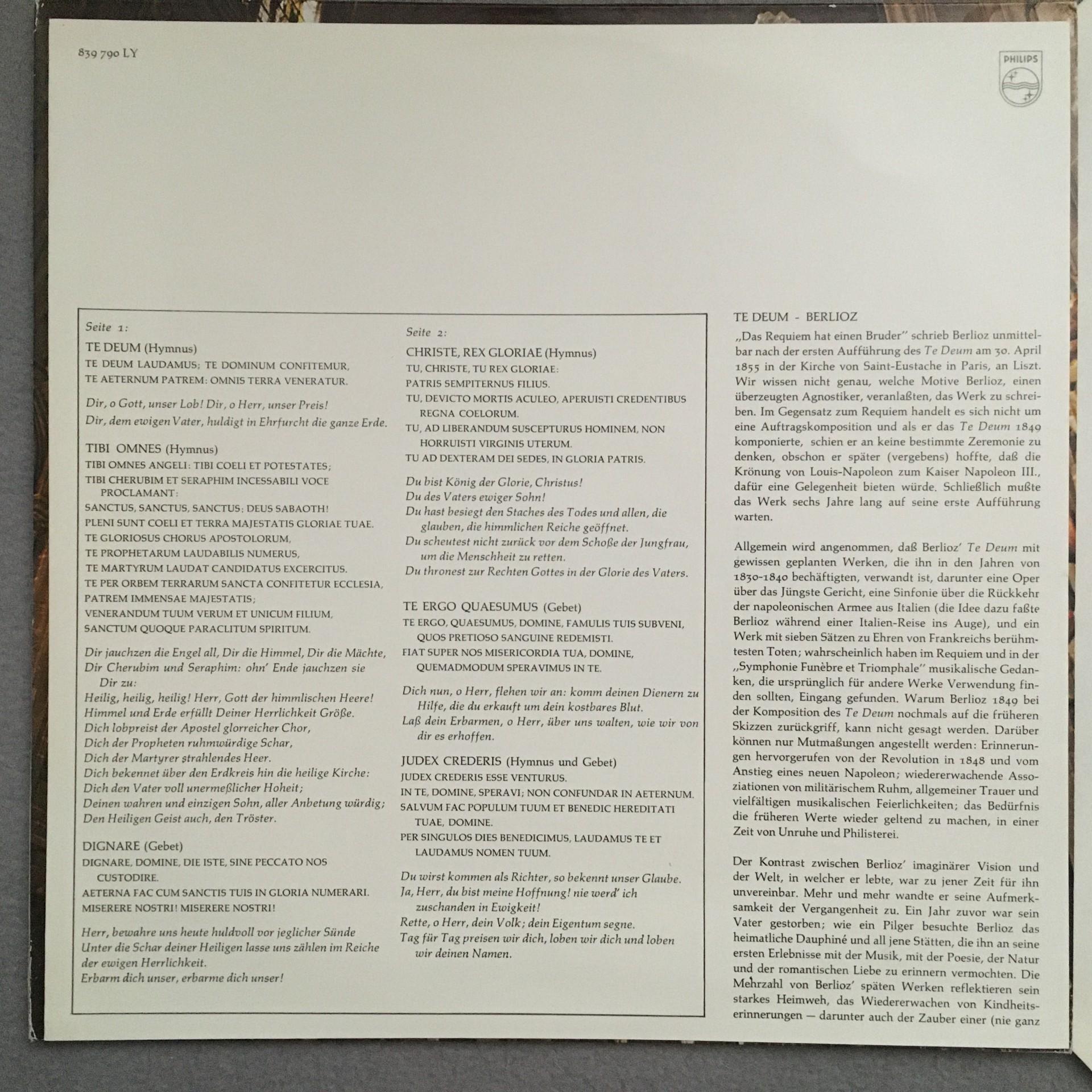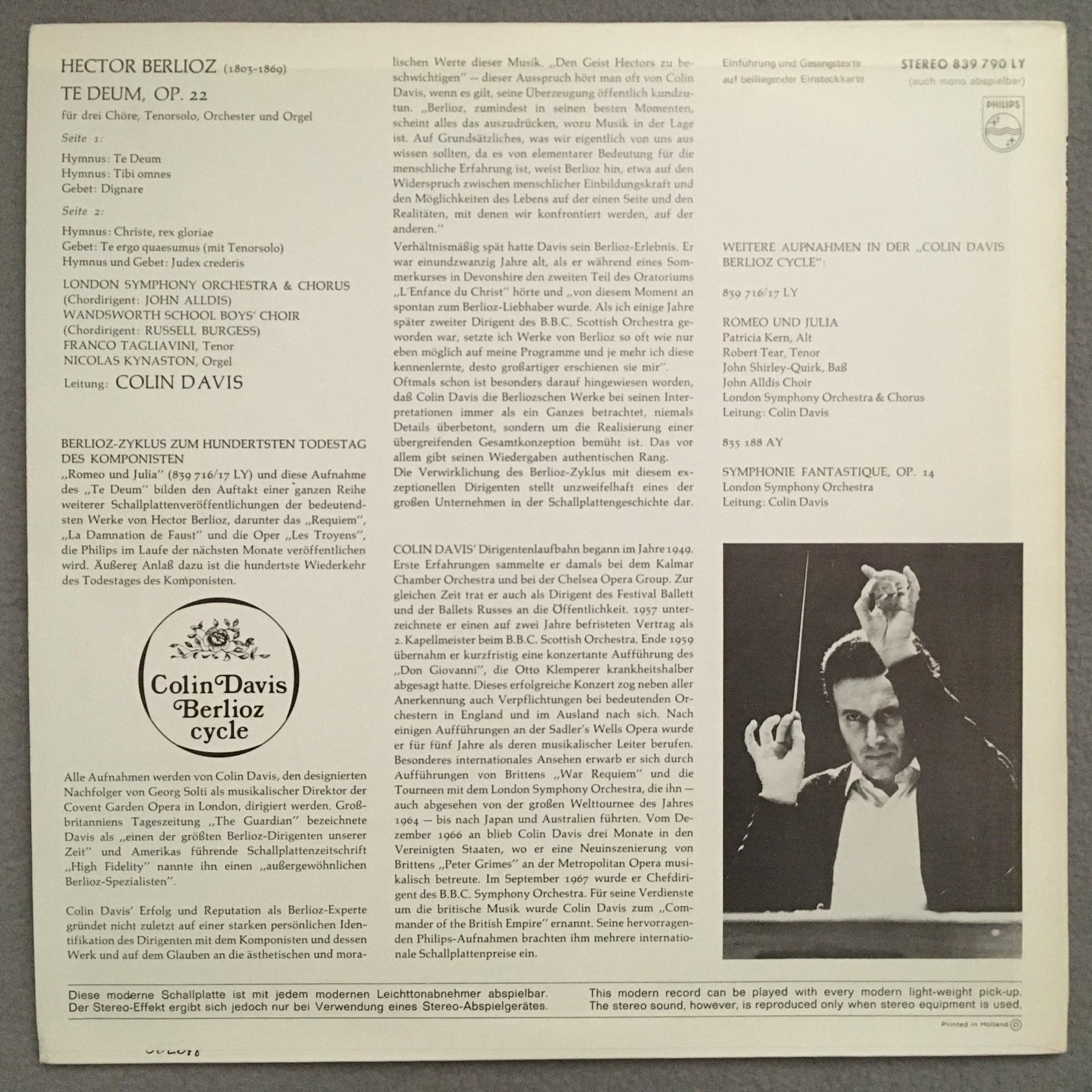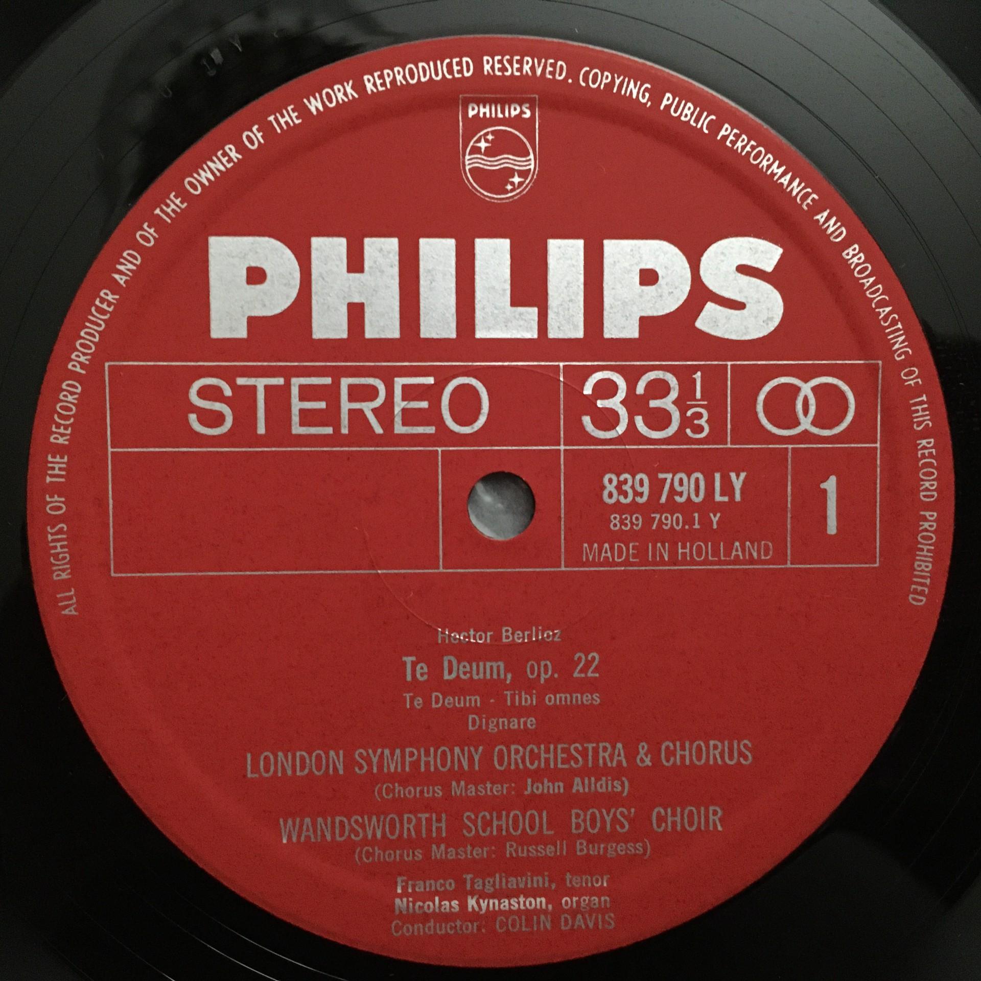T263 Berlioz Te Deum Tagliavini Davis Philips 839 790 LY Stereo