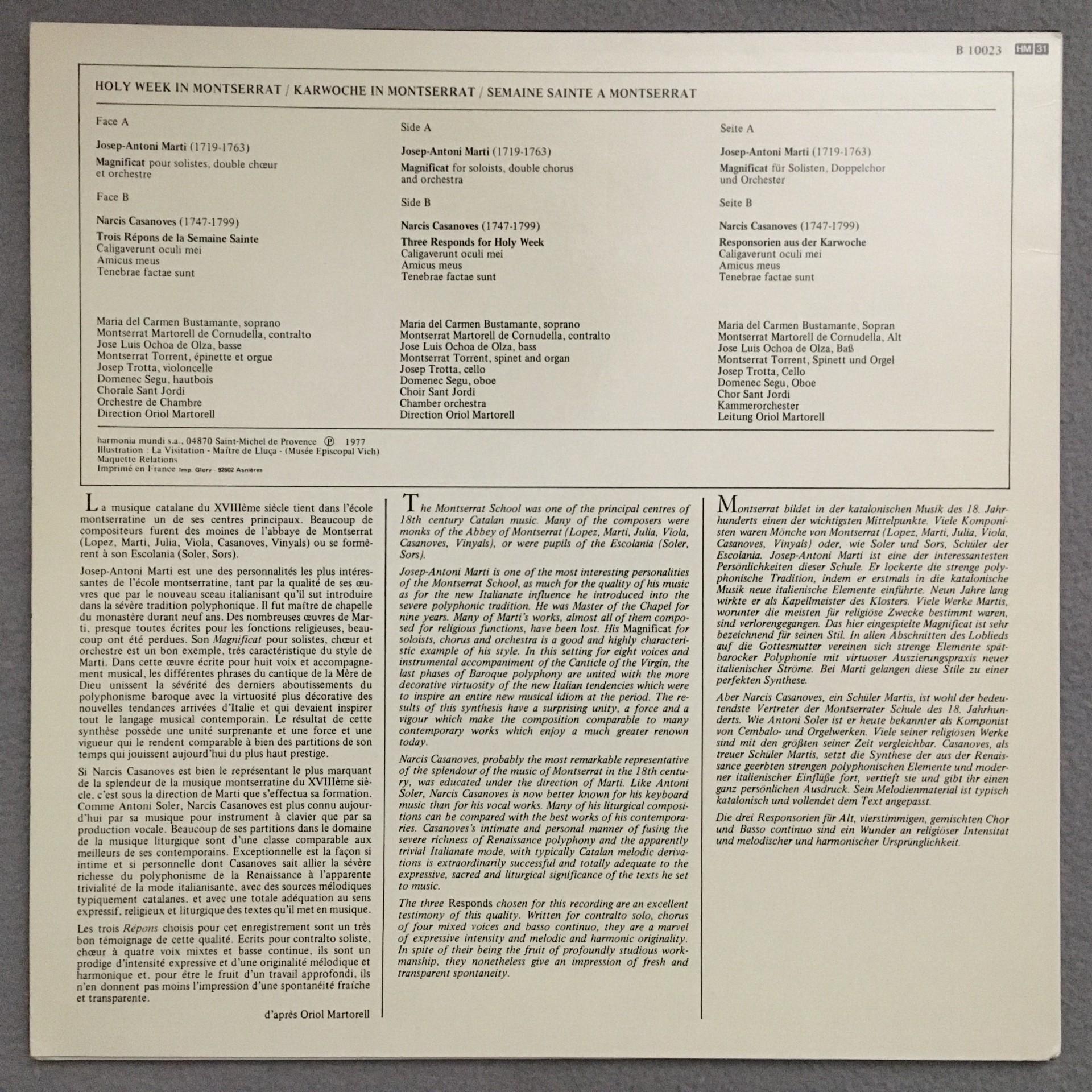 T271 Holy Week in Montserrat Martorell Harmonia Mundi France B 10023
