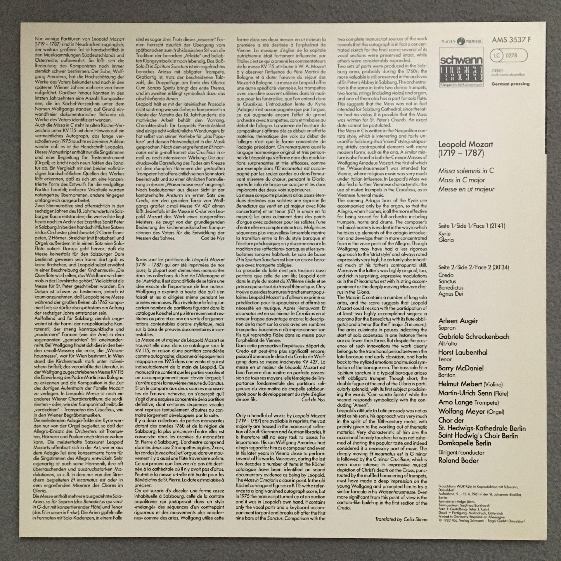 T274 L. Mozart Missa Solemnis Auger Bader Schwann AMS 3537 Stereo