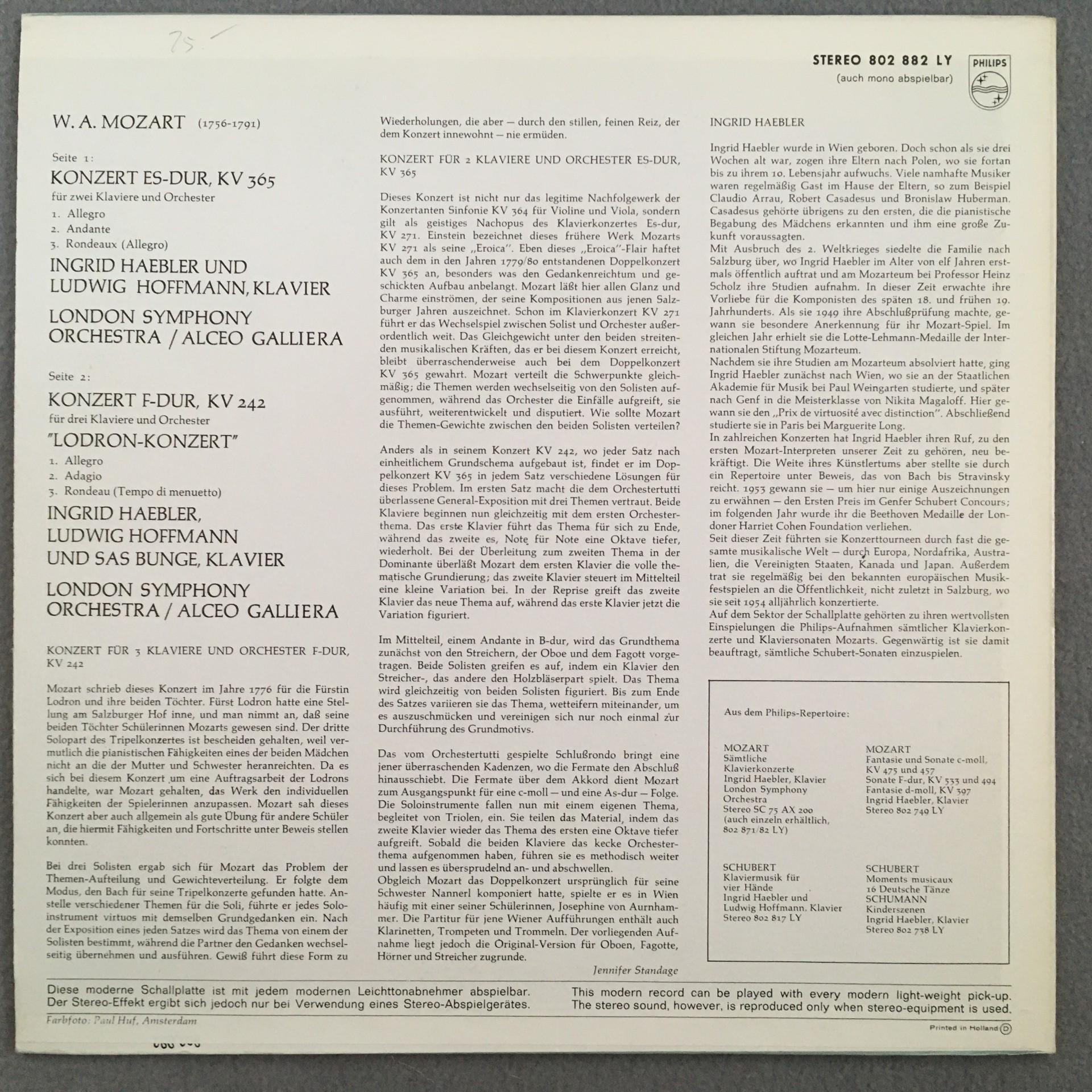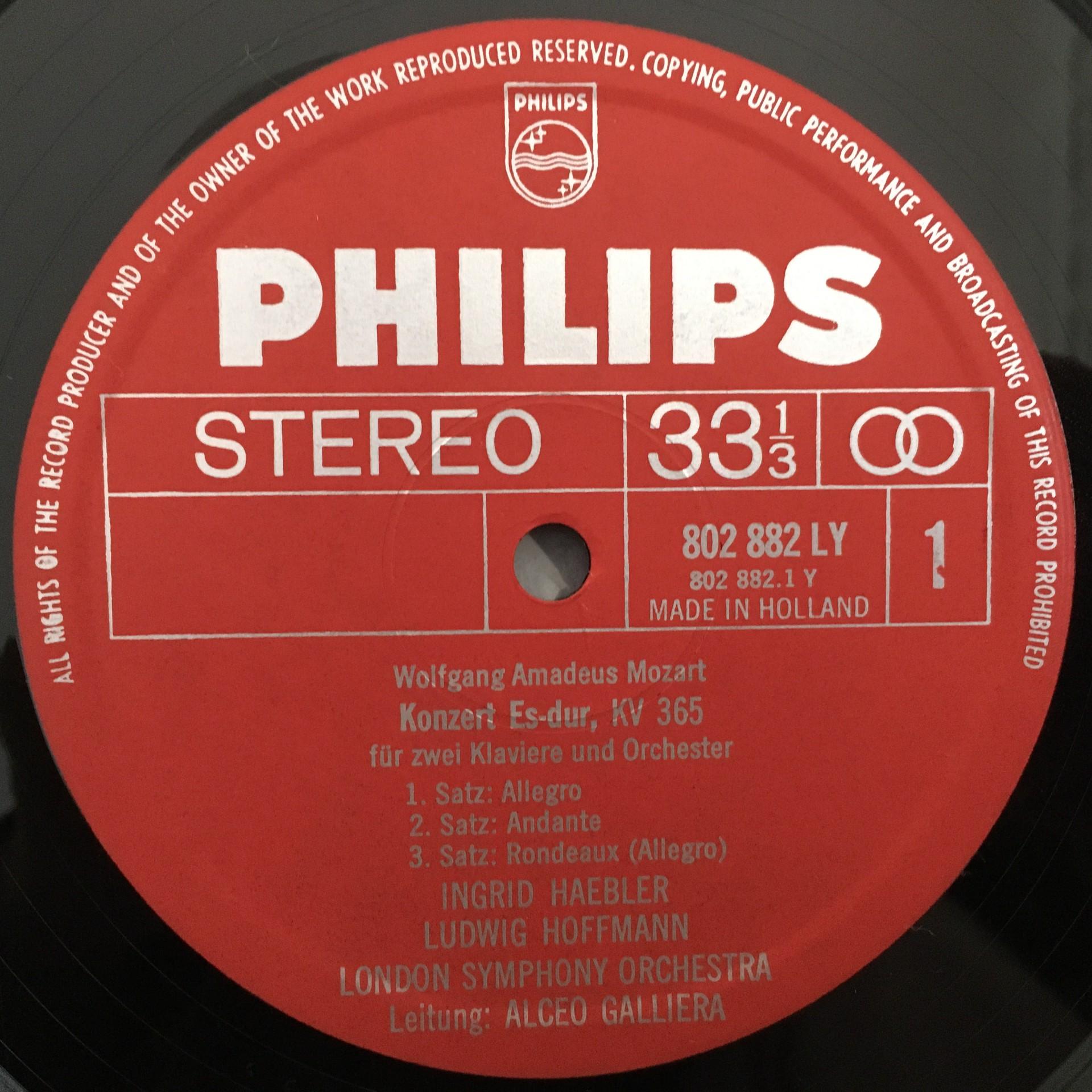 T296 Mozart Piano Concertos Haebler Galliera Philips 802 882 LY Stereo