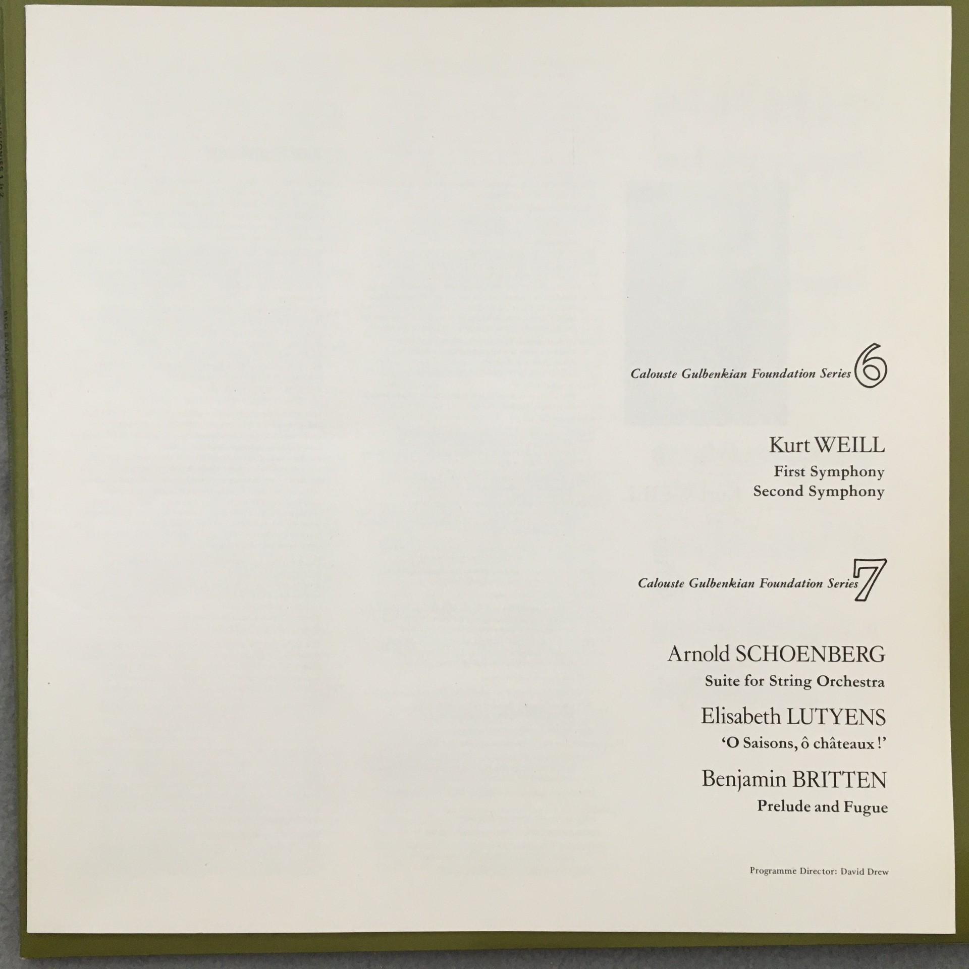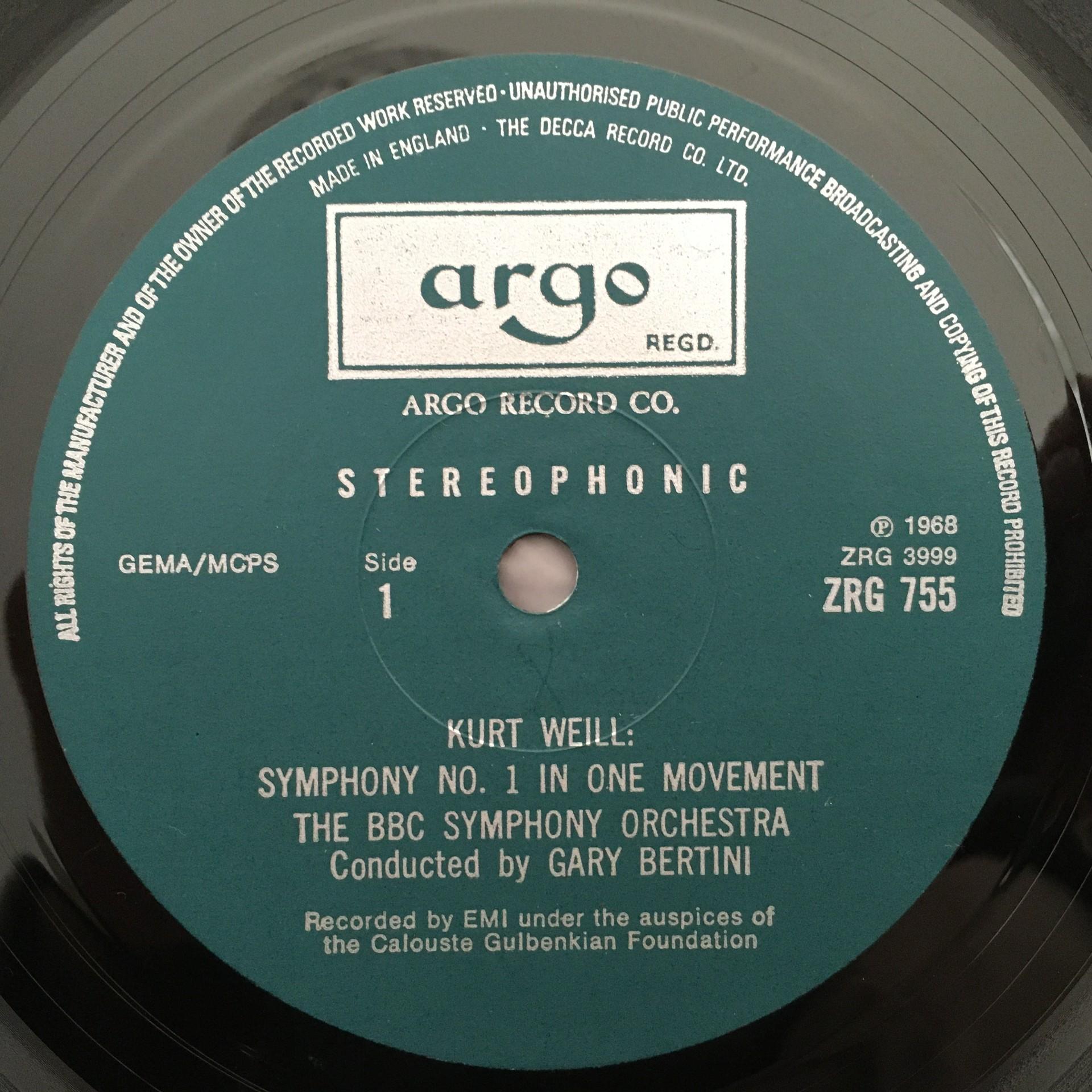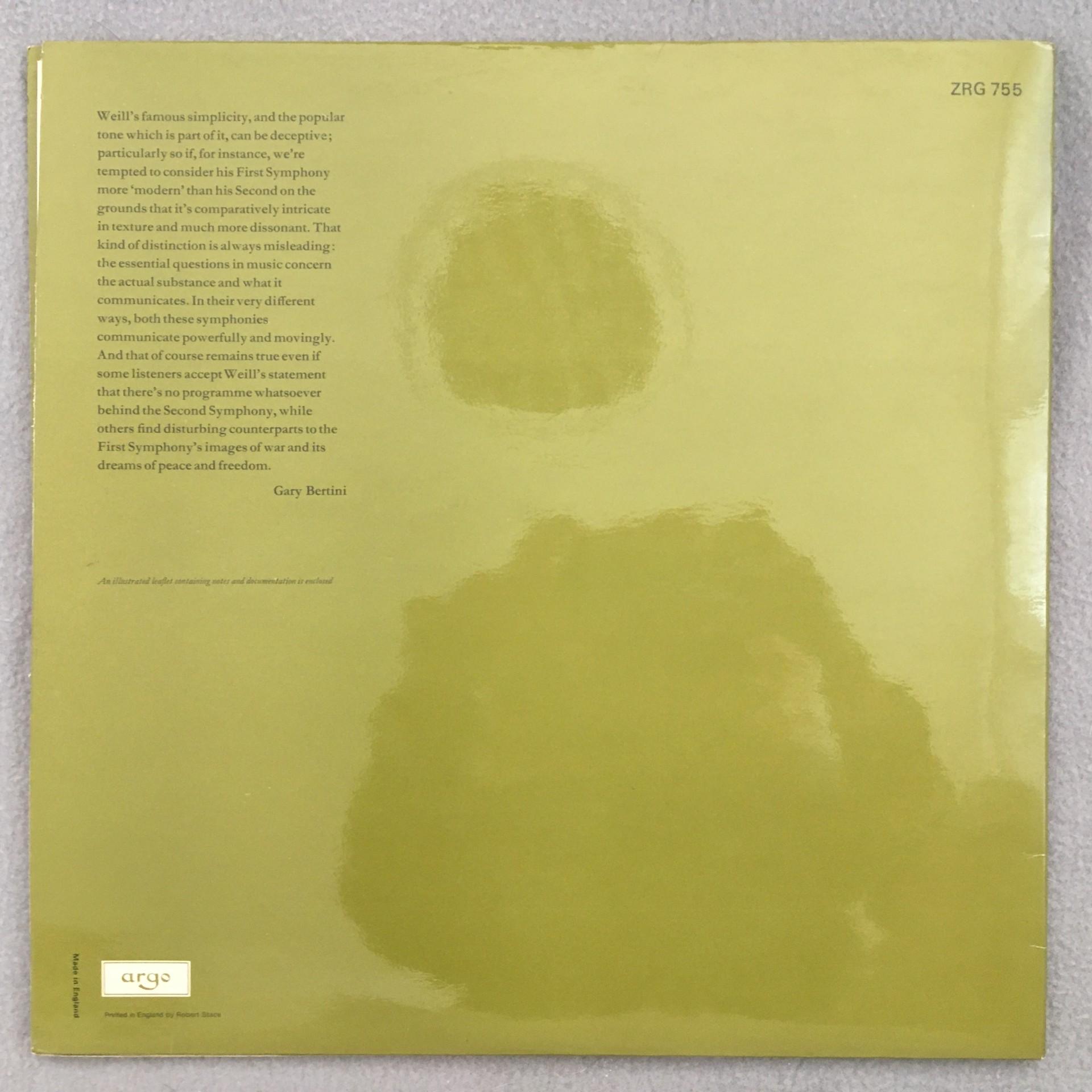 T304 Weill Symphonies No.1 & No.2 Bertini Argo ZRG 755 Stereo