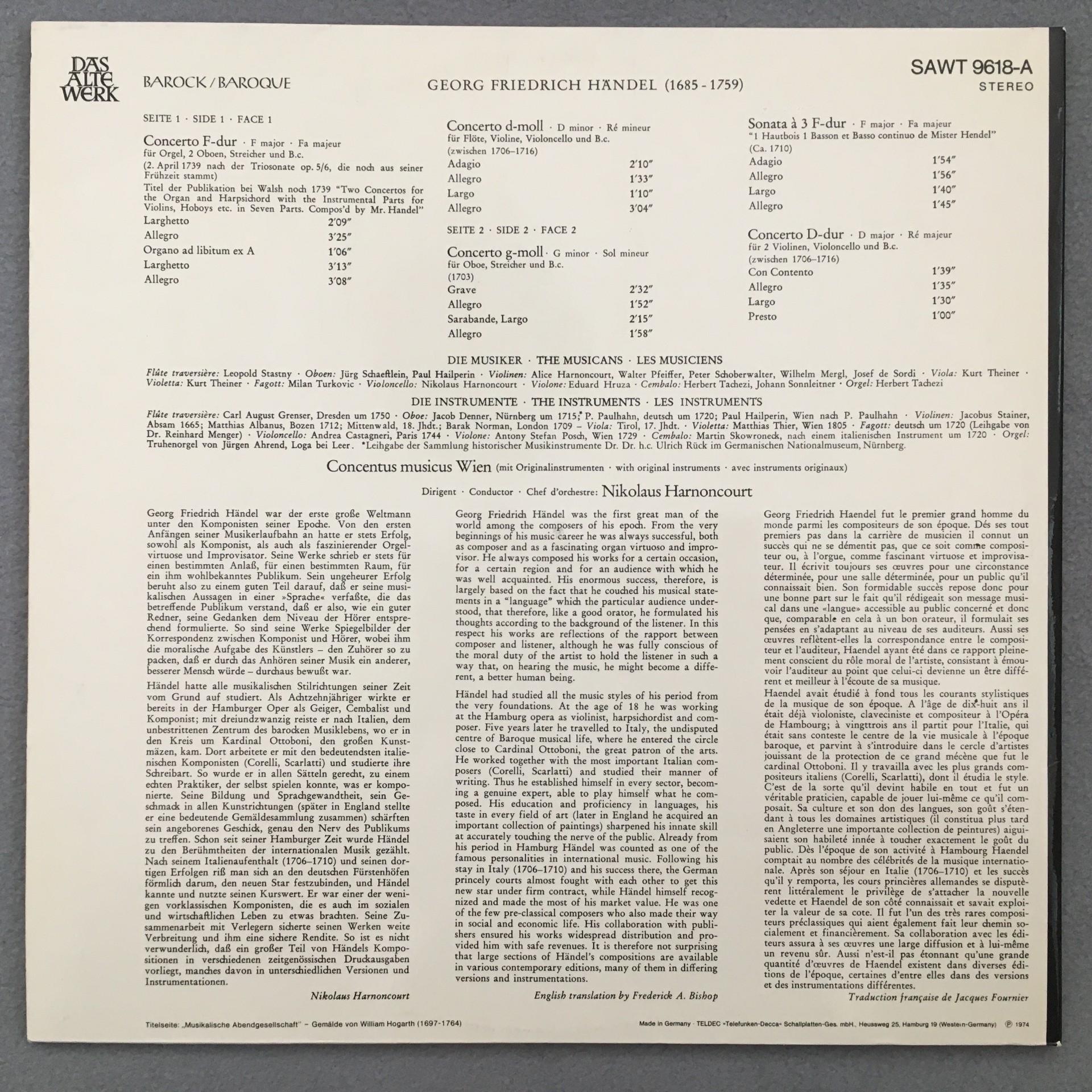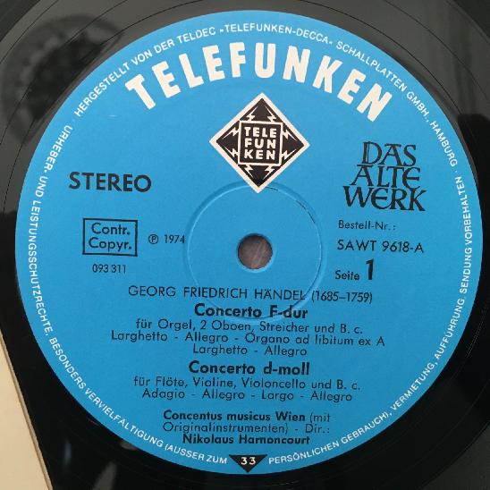 V587 Handel Concertos Sonata Harnoncourt Telefunken SAWT 9618-A Stereo