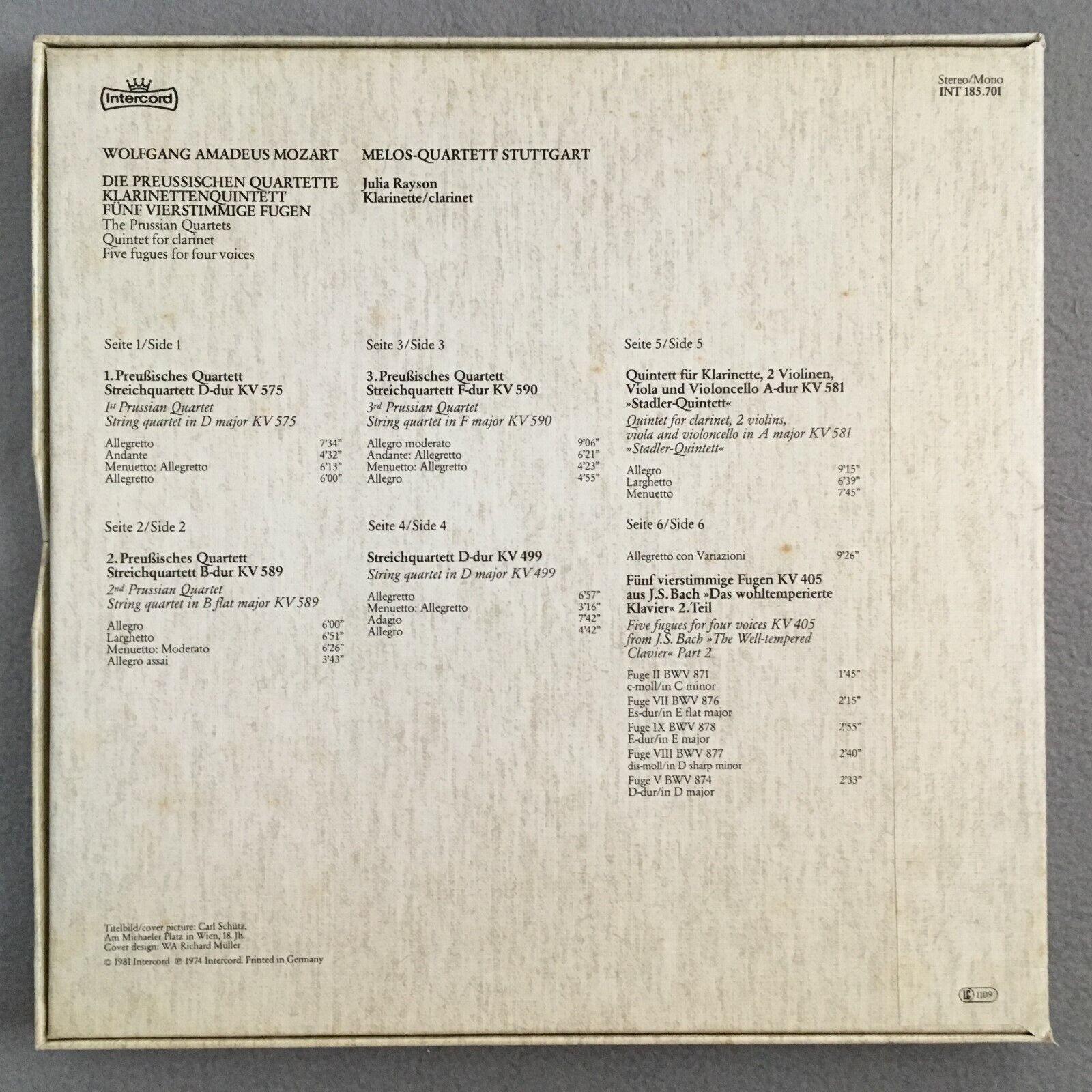 B030 Mozart The Prussian Quartets Rayson Melos 3LP Intercord INT 185.701 Stereo