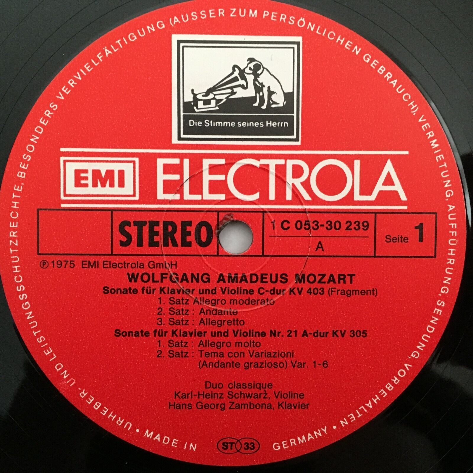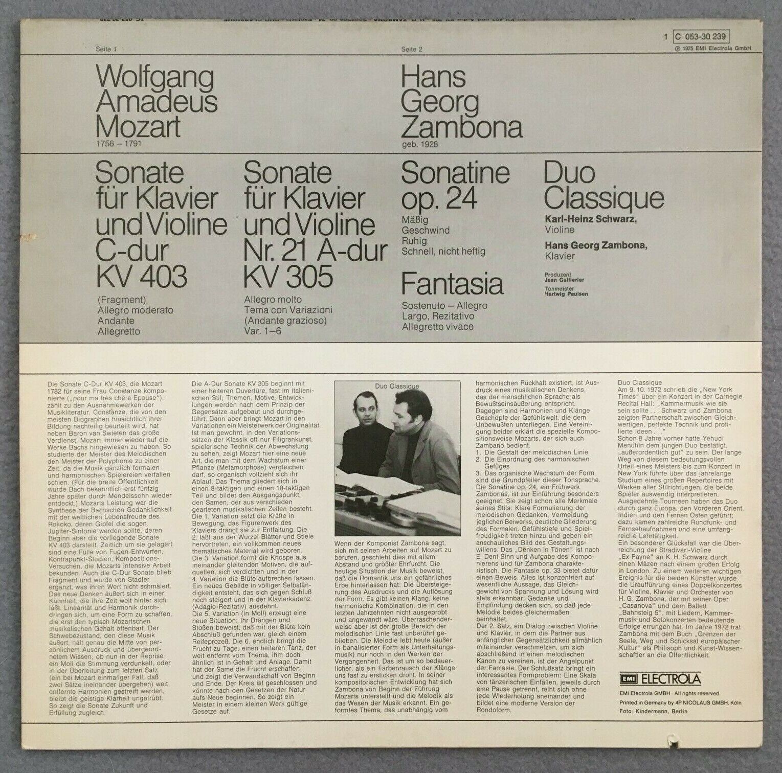 J243 Mozart Violin & Piano Sonatas Schwarz Zambona Electrola 1 C 053-30 239 St