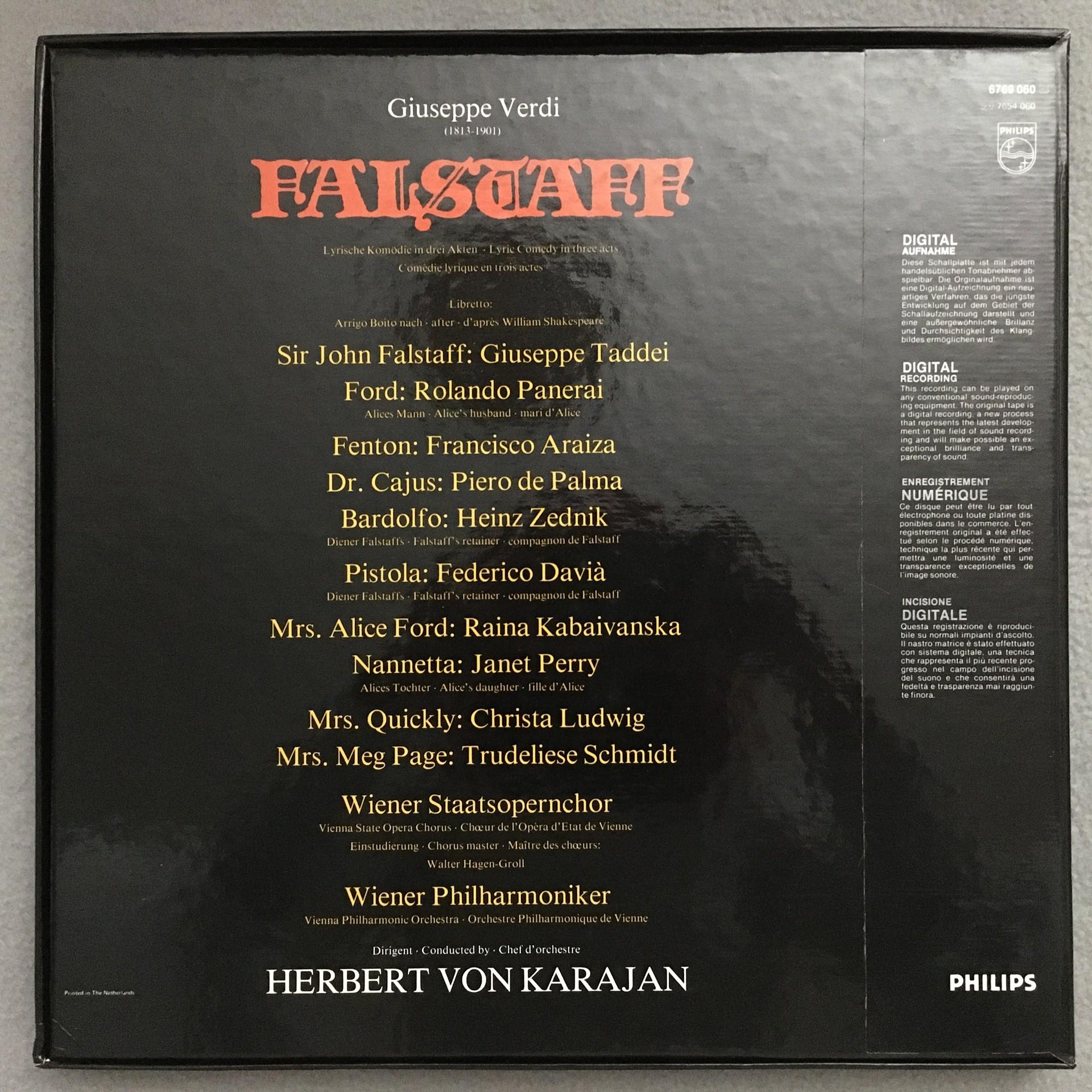 E222 Verdi Falstaff Taddei Panerai Karajan VPO 3LP Philips 6769 060 Digital Ster