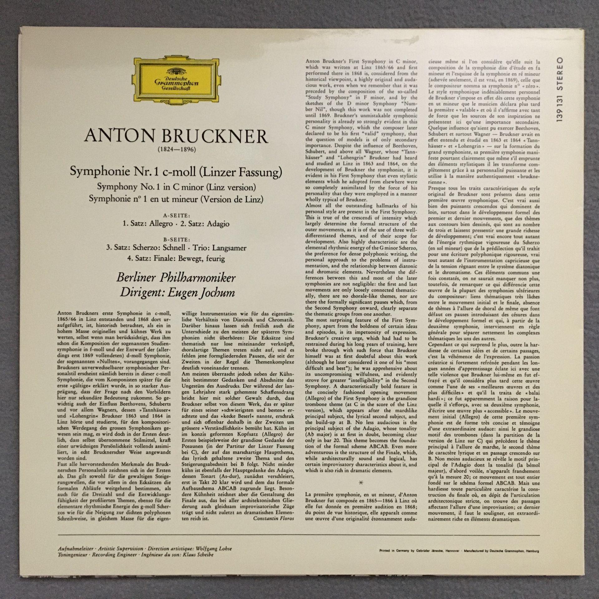 T308 Bruckner Symphony No.1 Jochum BPO DGG 139 131 SLPM Stereo Tulip