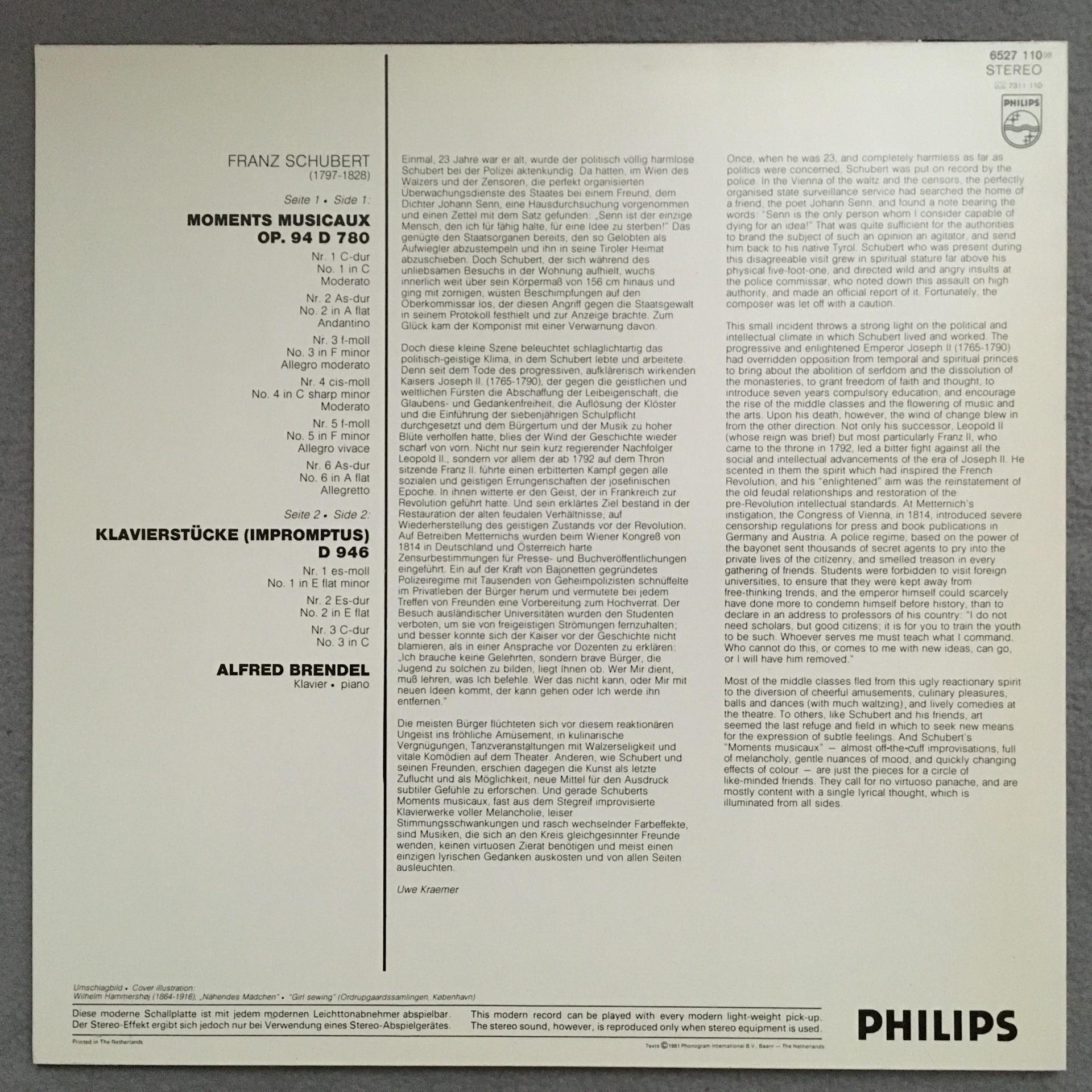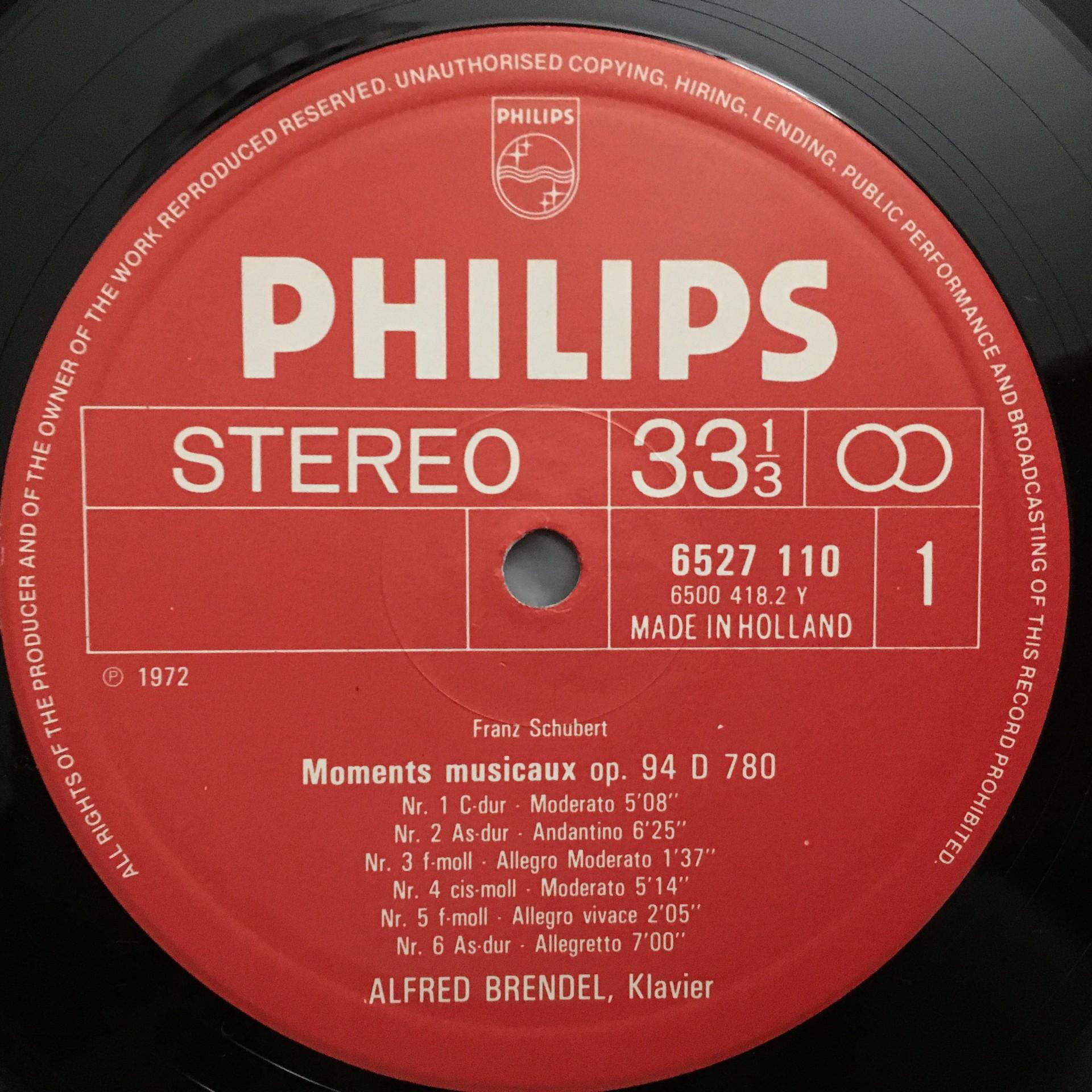 T327 Schubert Moments Musicaux Piano Pieces Brendel Philips 6527 110 Stereo