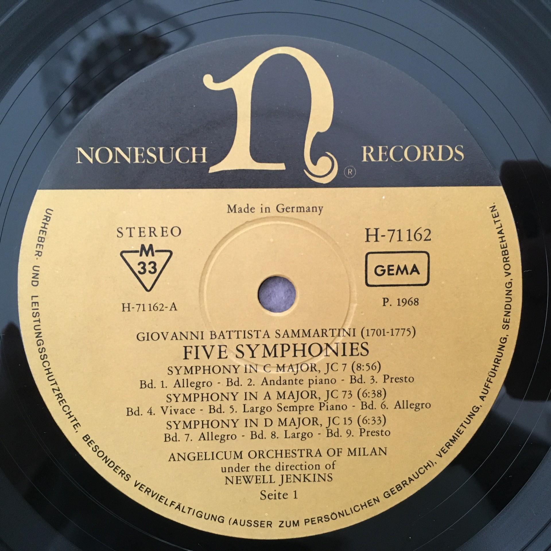 T332 Sammartini 5 Symphonies Jenkins Nonesuch H 71162 Stereo