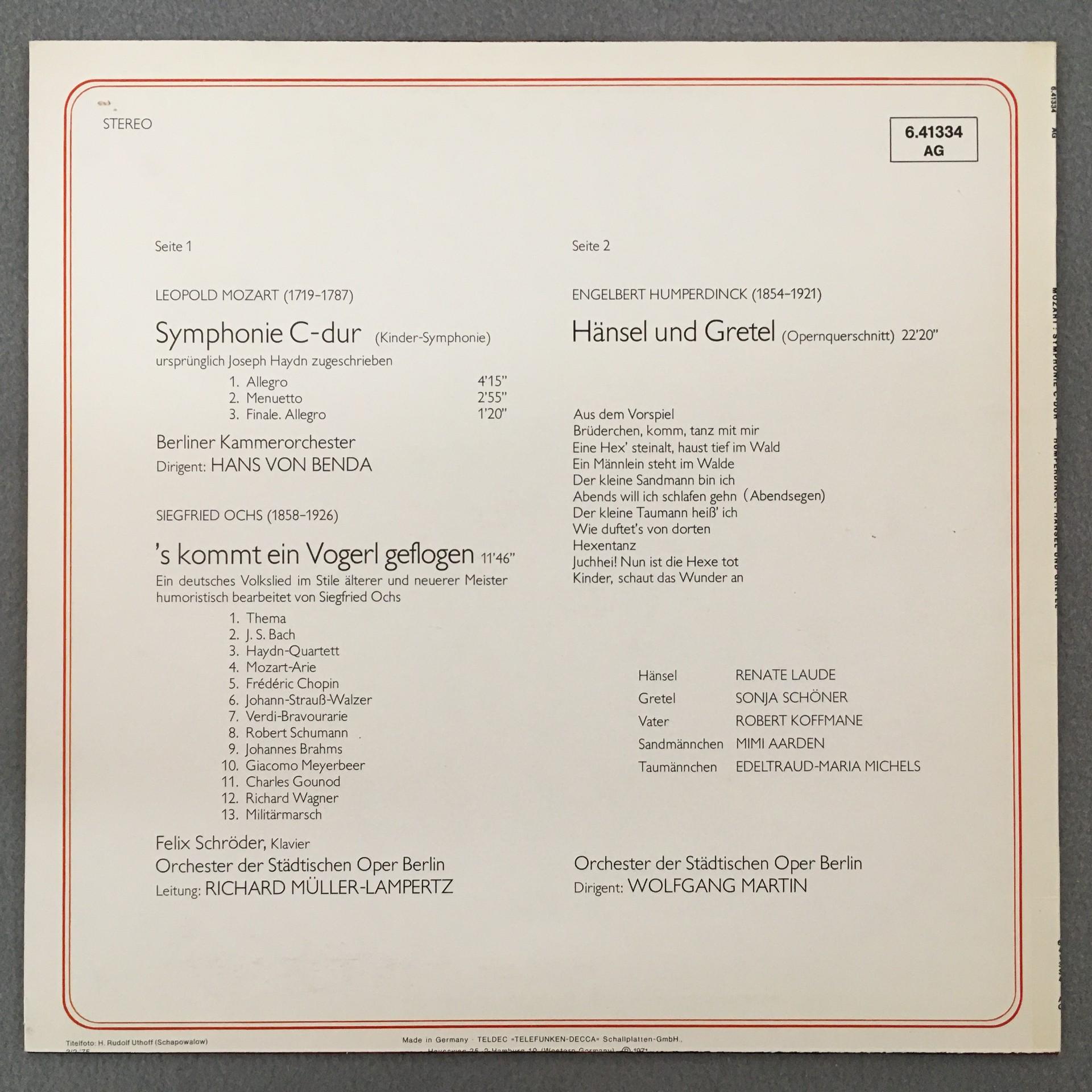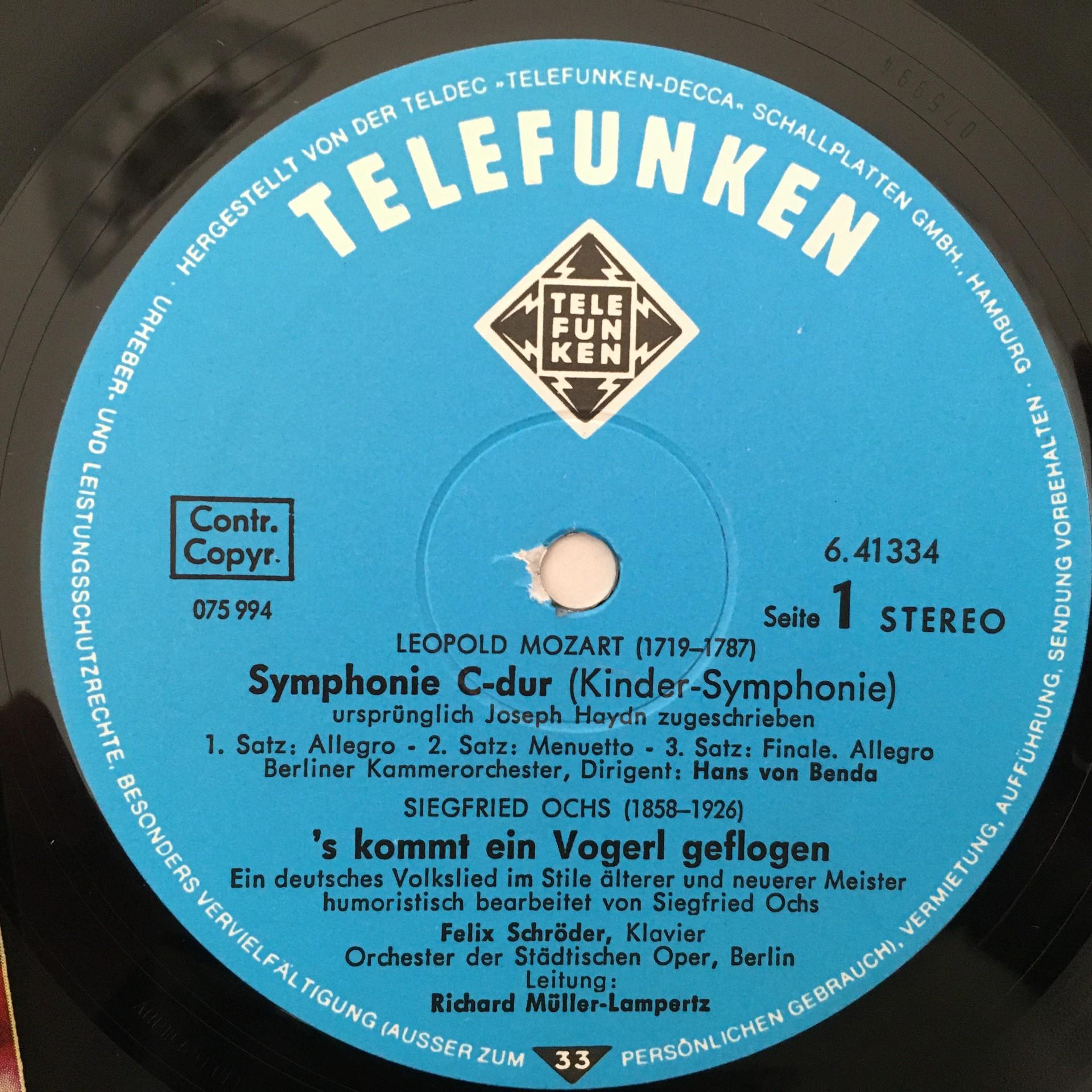 T339 L. Mozart Children Symphony Songs Martin Telefunken 6.41334 AG Stereo