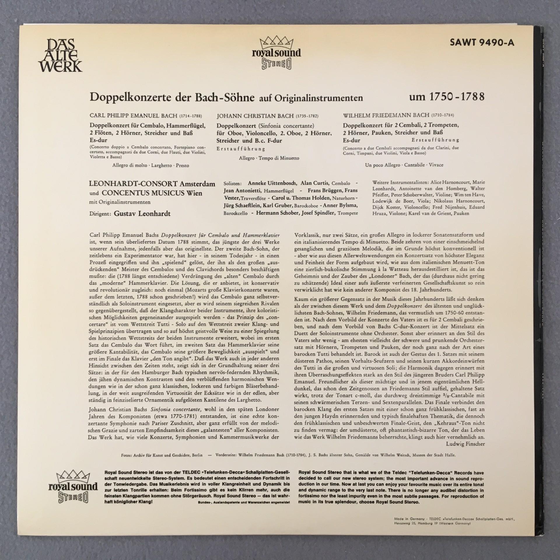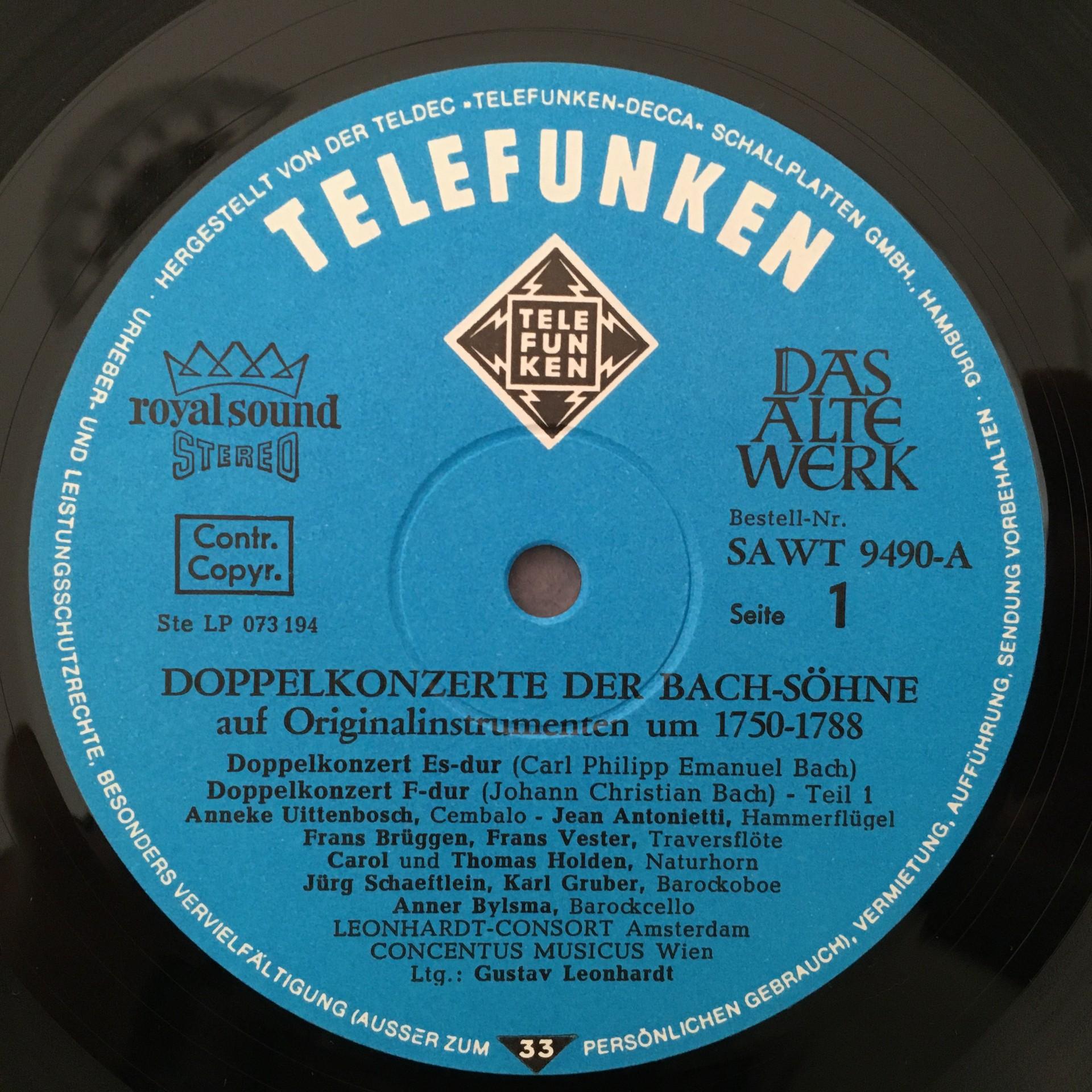 T344 Bach Sons Double Concertos Leonhardt Telefunken SAWT 9490-A Stereo