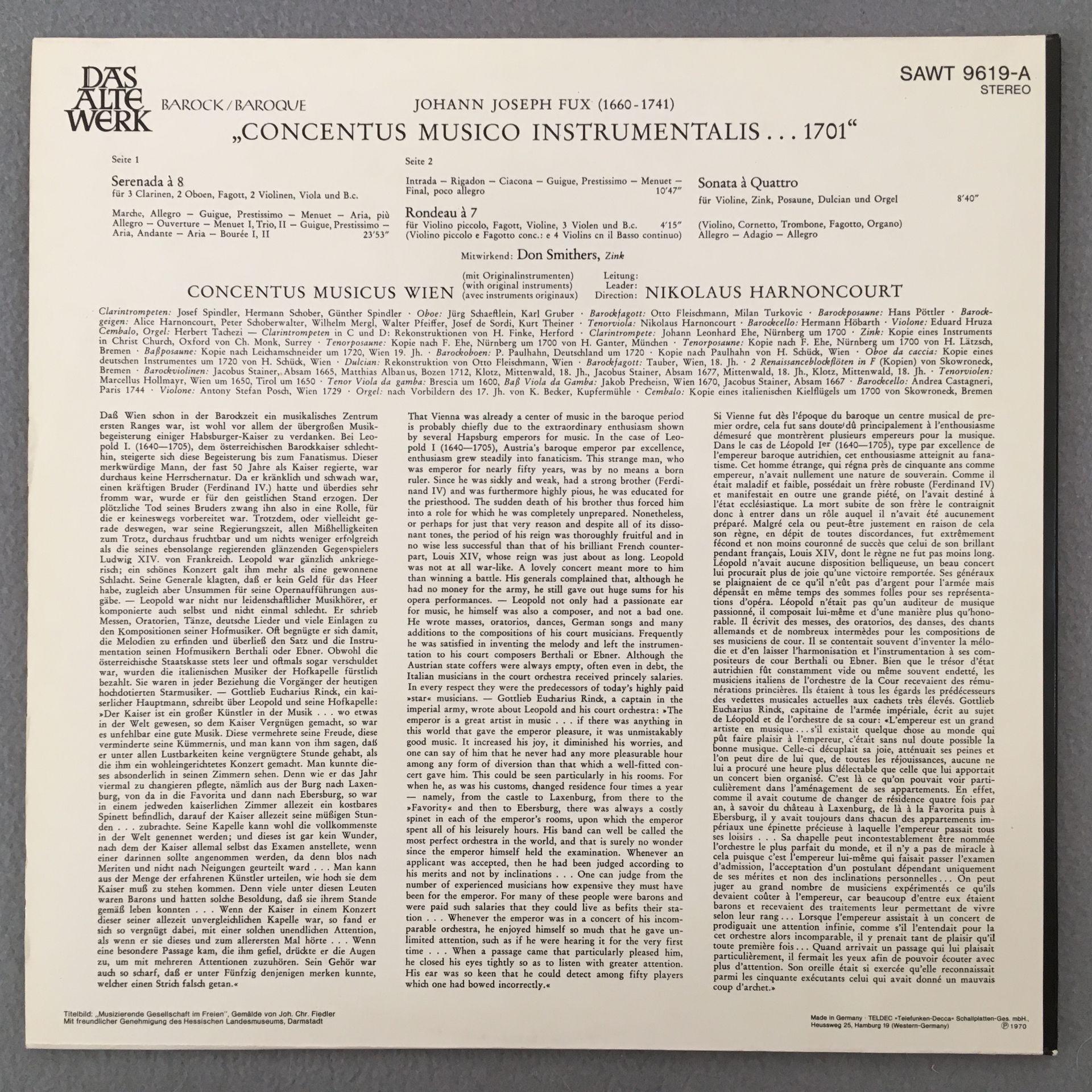 T345 Fux Serenade Sonata Rondo Harnoncourt Telefunken SAWT 9619-A Stereo