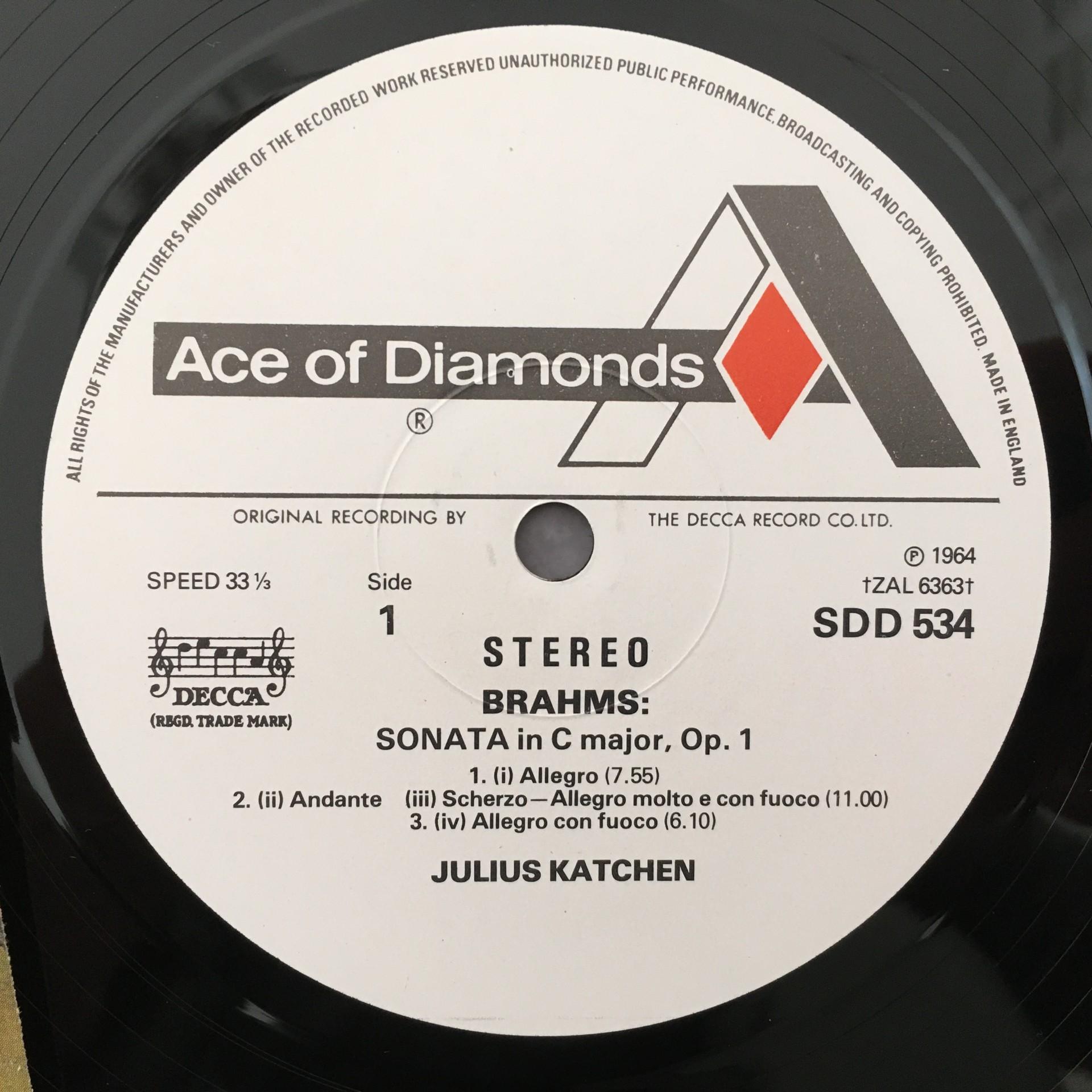 T348 Brahms Piano Works Vol.3 Sonatas Katchen Ace of Diamonds SDD 534 Stereo