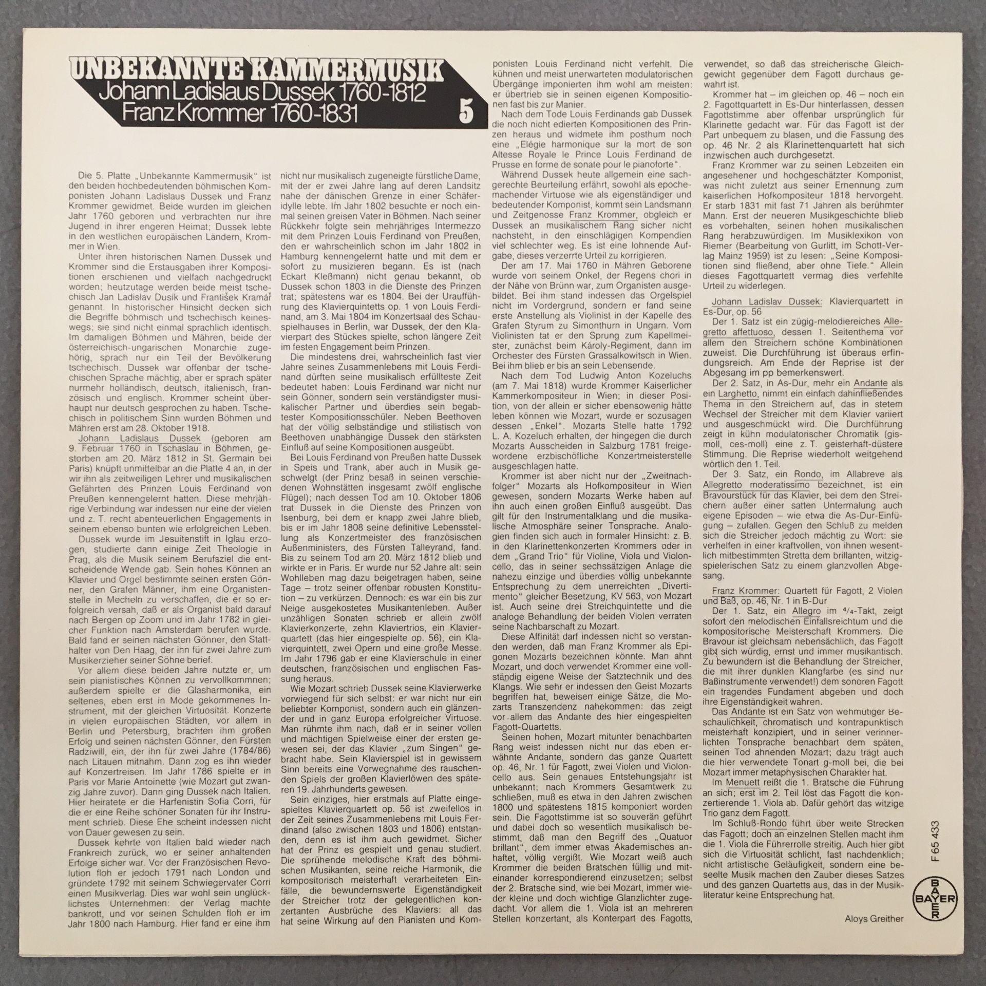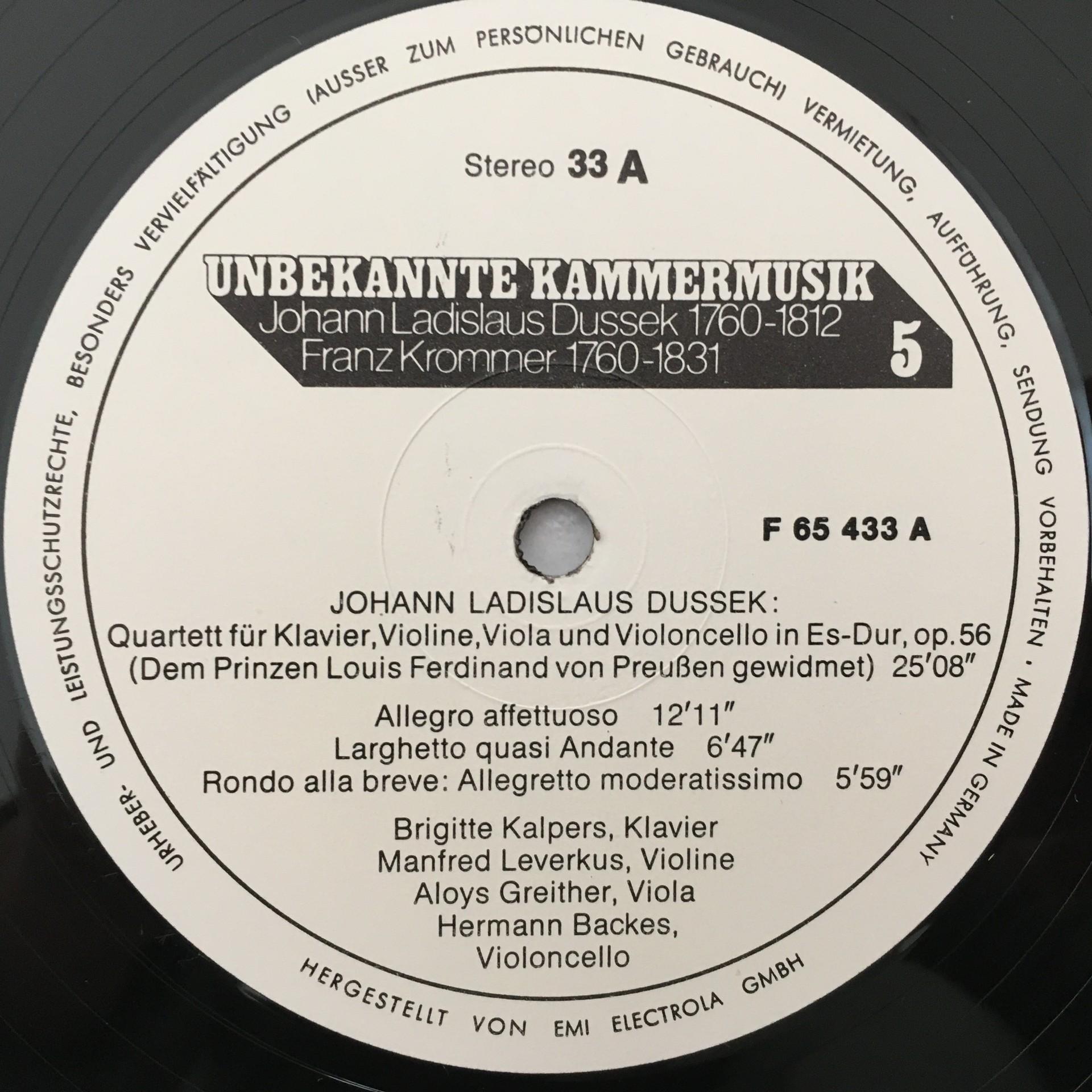 T350 Unknown Chamber Music Vol.5 Dussek Krommer Private F 65 433 Stereo