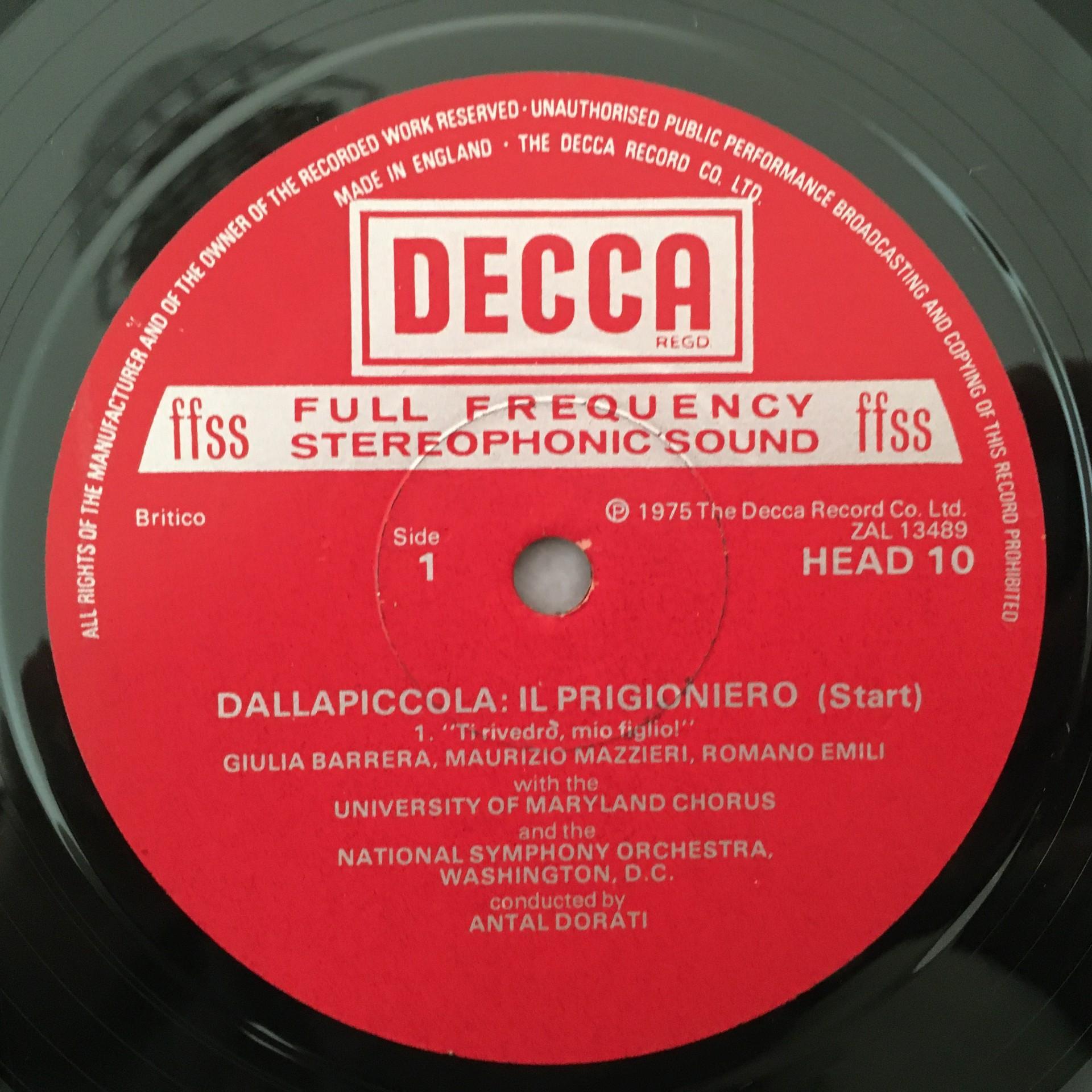 T351 Dallapiccola Il Prigioniero Dorati DECCA HEAD 10 Stereo