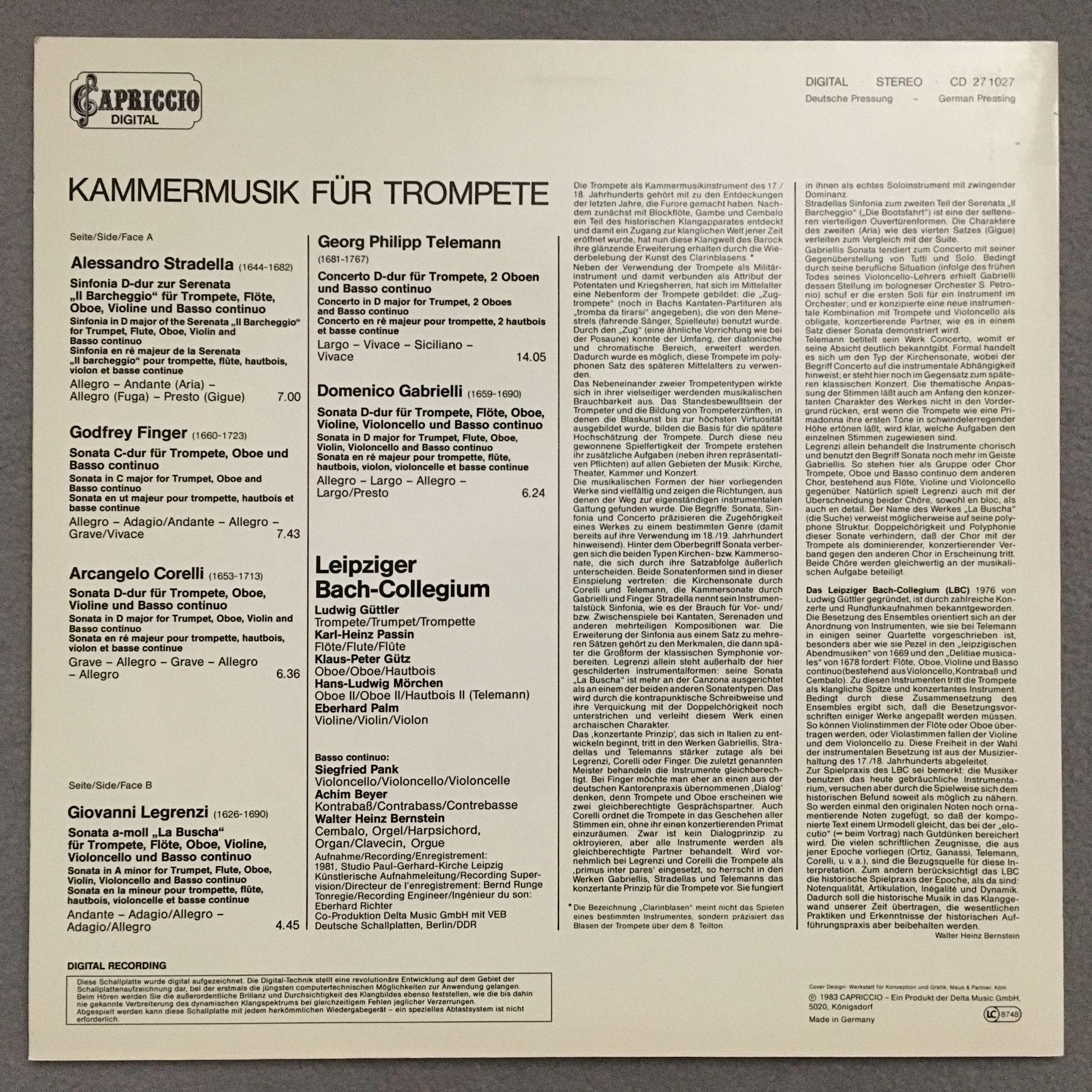 T353 Chamber Music for Trumpets Leipzig Bach Collegium Capriccio CD 27 1027 St