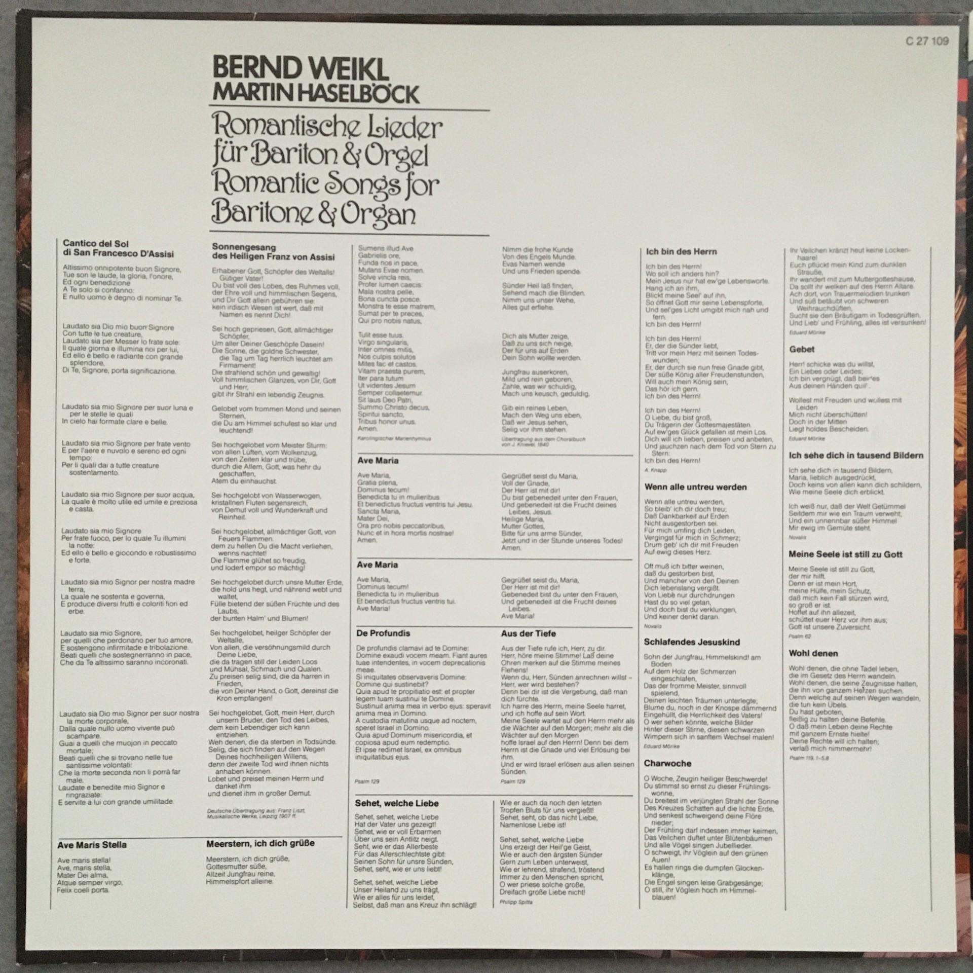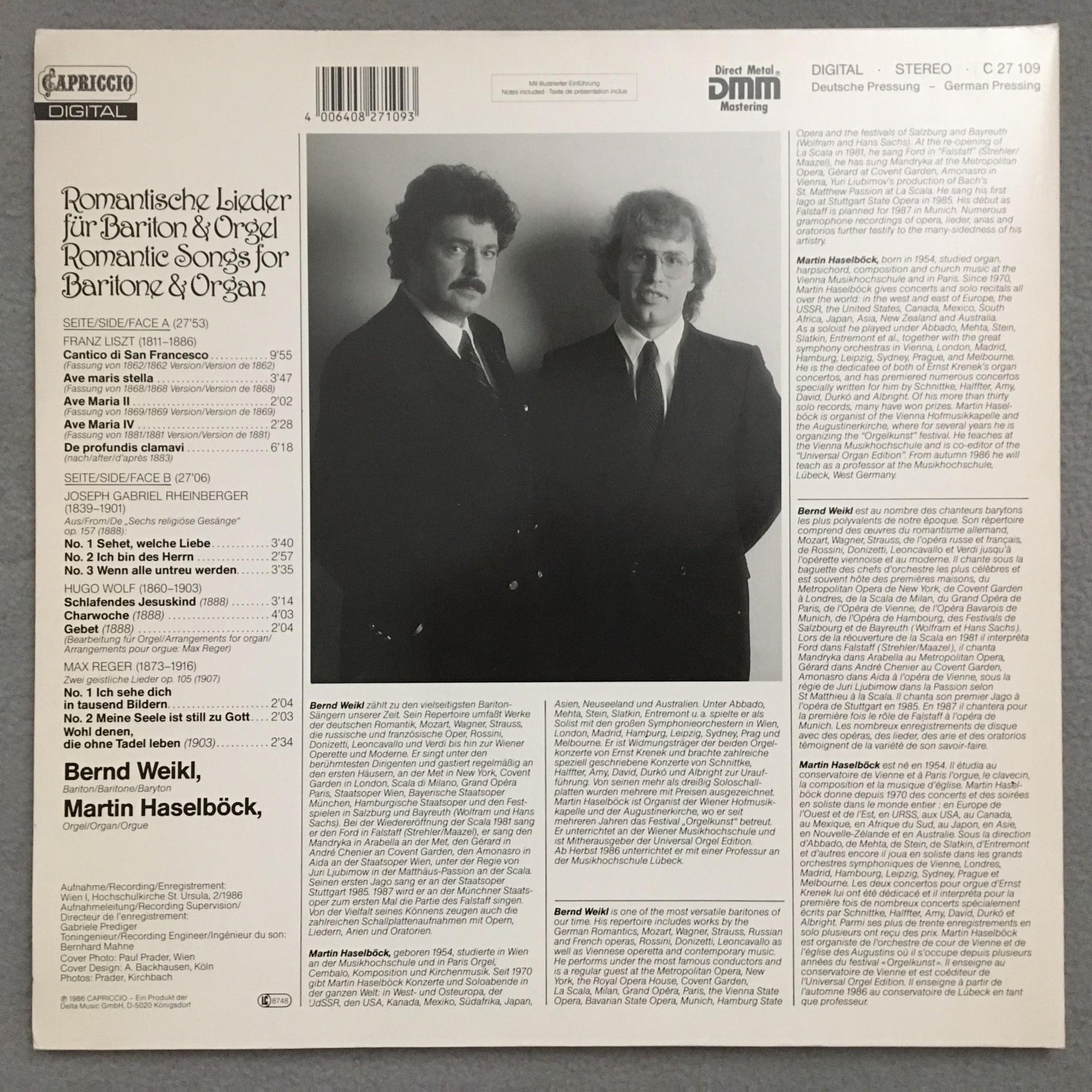 T364 Romantic Songs for Bariton & Organ Weikl Haselböck Capriccio C 27 109 Dig