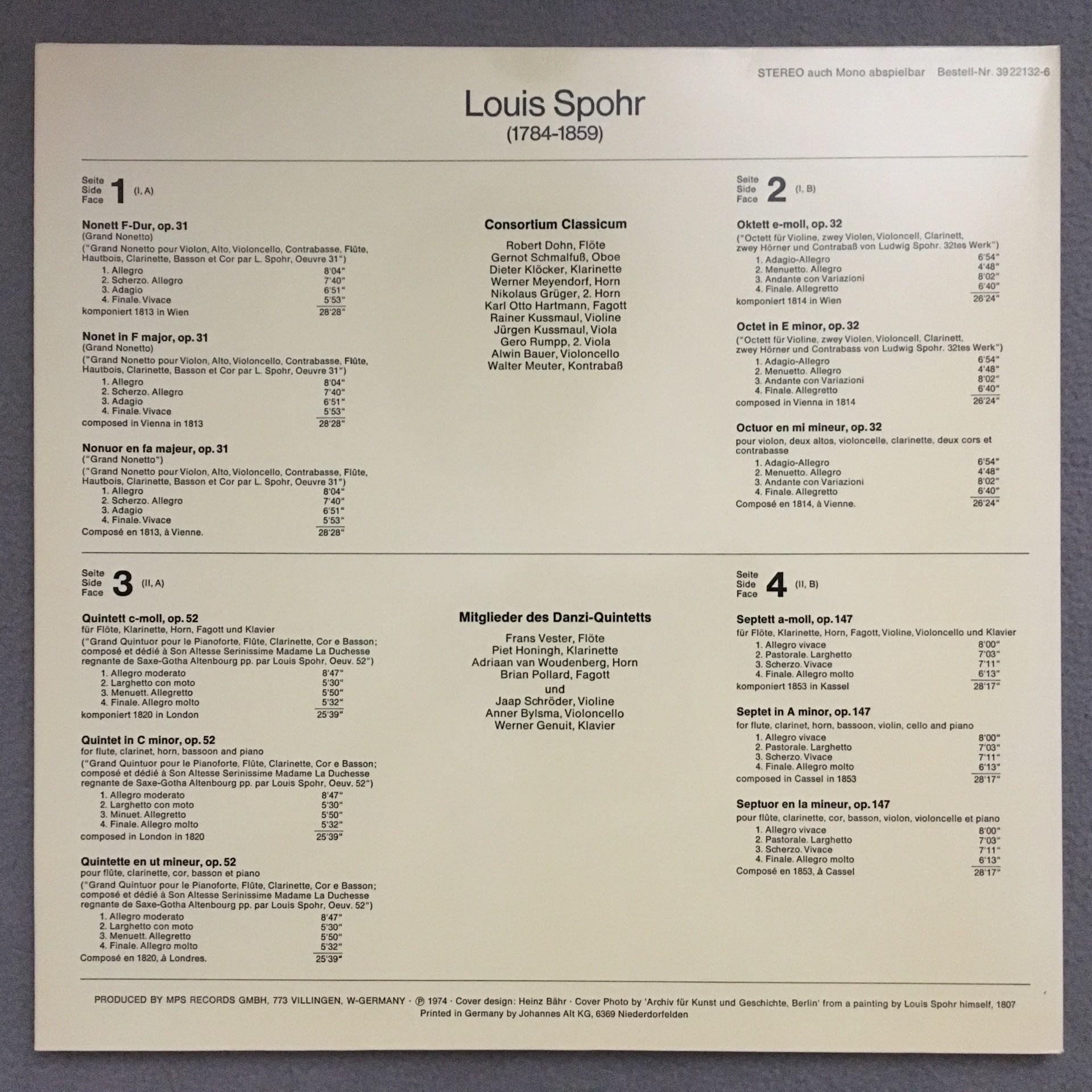T373 Spohr Nonet Octet Septet Consortium Classicum 2LP BASF 39 22132-6 Stereo