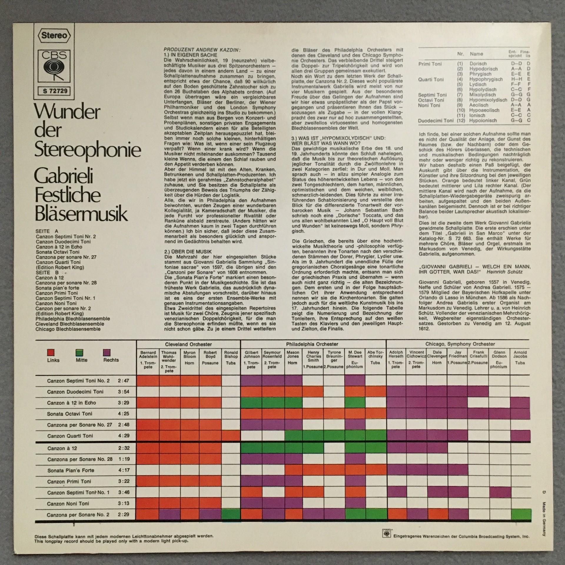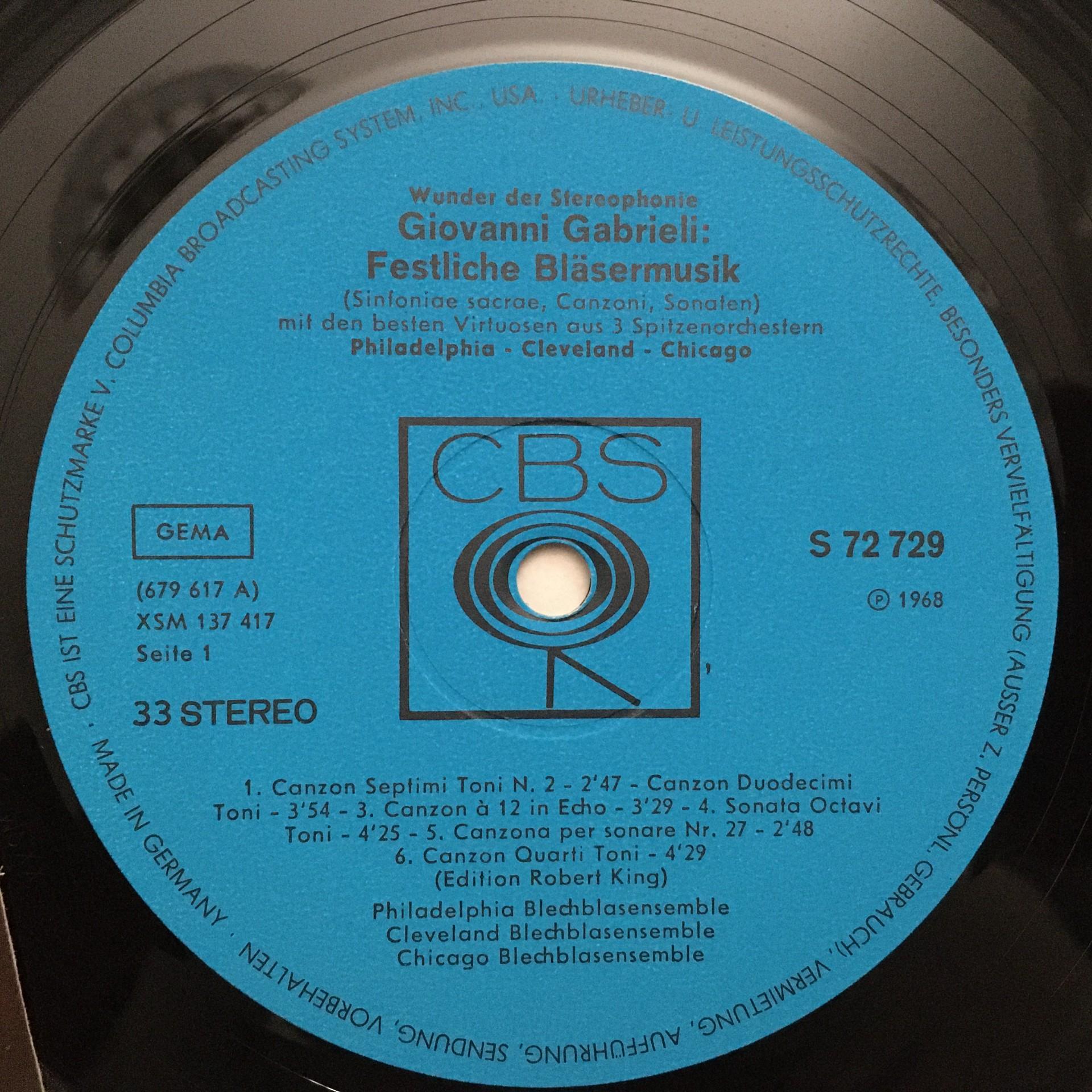 T380 Gabrieli Festive Wind Music Sonatas Sacred Symphonies CBS S 72729 Stereo