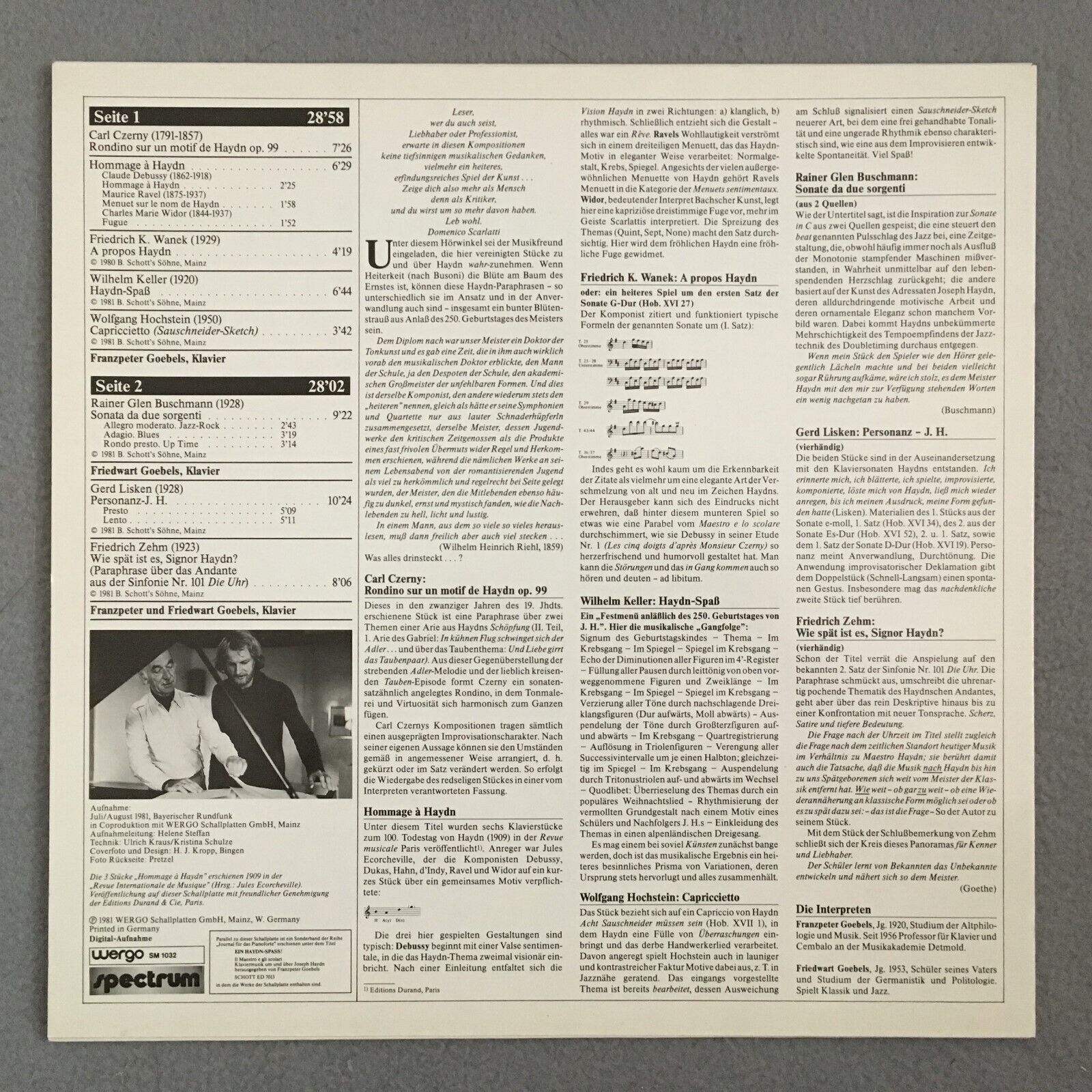 P425 Ein Haydnspass F. & F. Goebels WERGO WER SM 1032 Digital Stereo