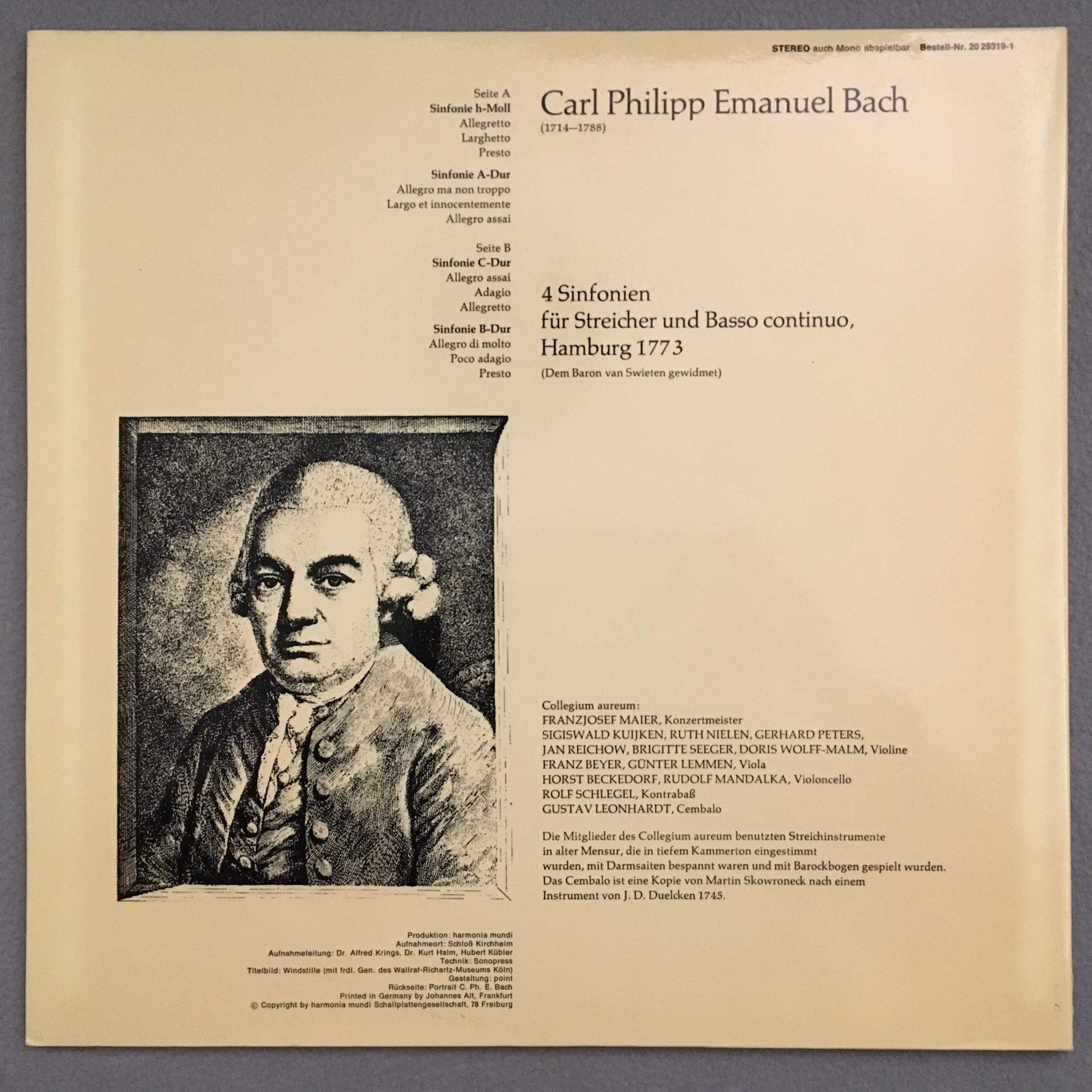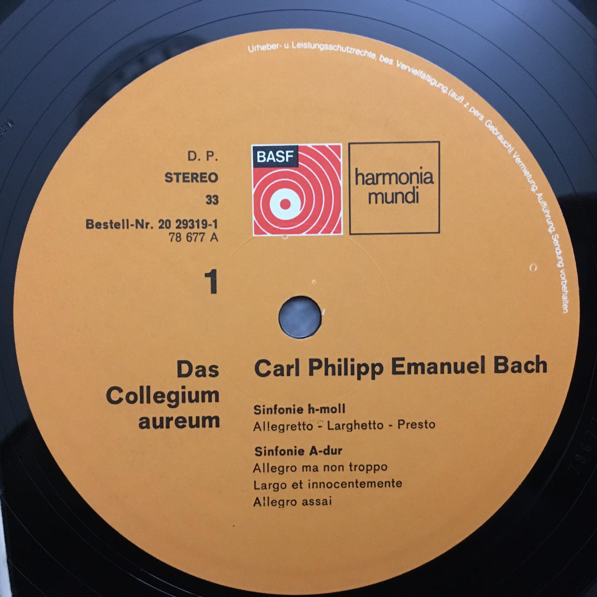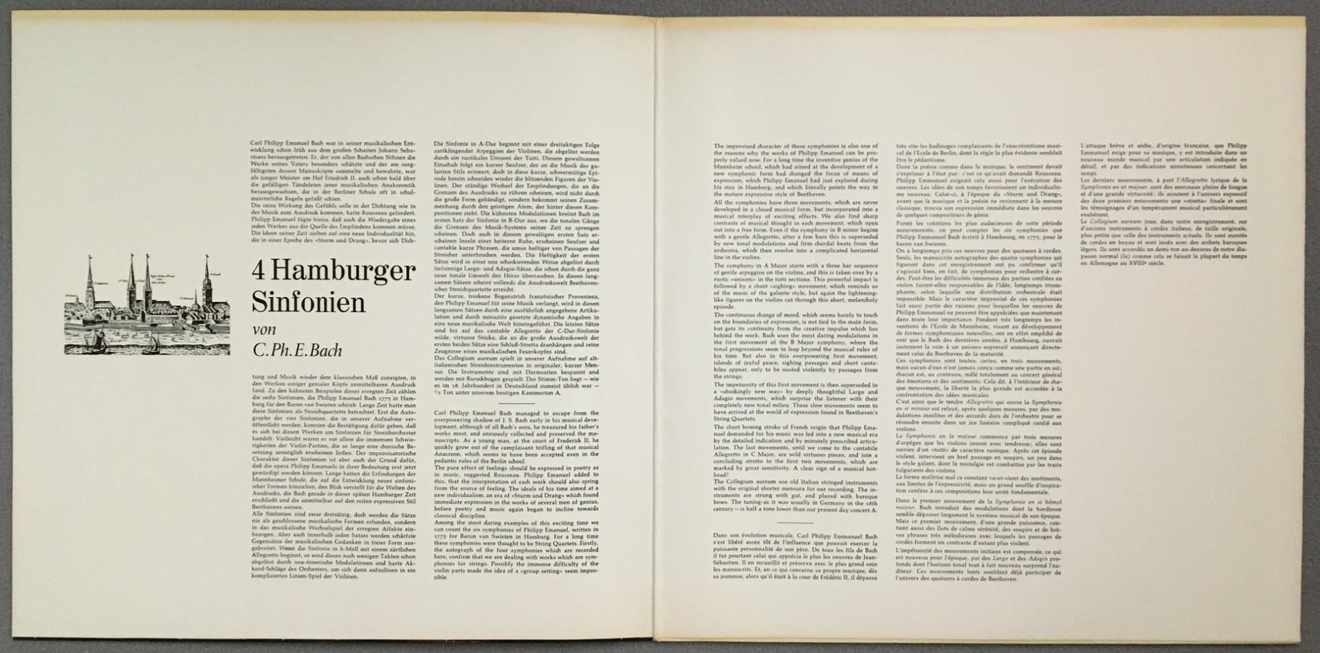 T396 C.P.E. Bach Hamburg Symphonies Collegium Aureum HM 20 29319-1 Stereo