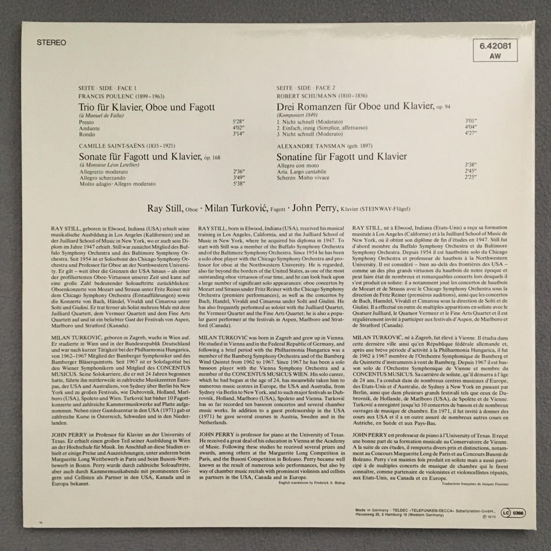 T397 Poulenc Trio Schumann Romances Still Turkovic Telefunken 6.42081 AW Stereo