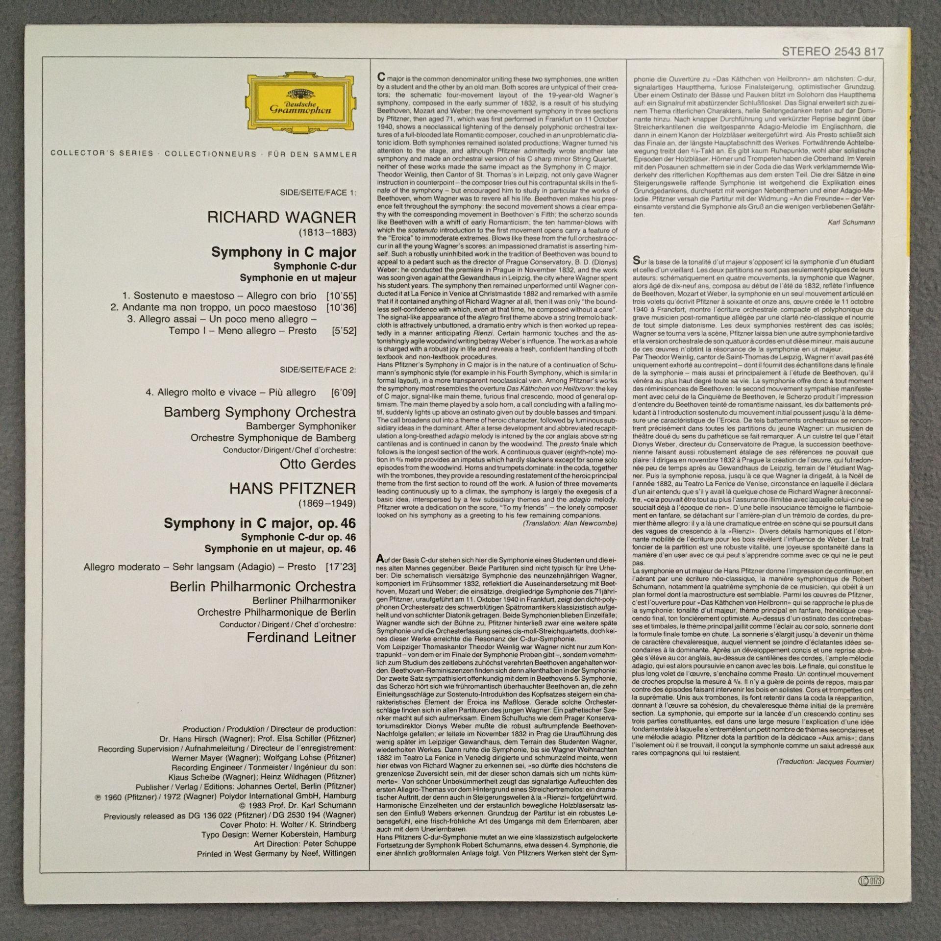 T399 Wagner Pfitzner Symphonies Leitner DGG 2543 817 Stereo