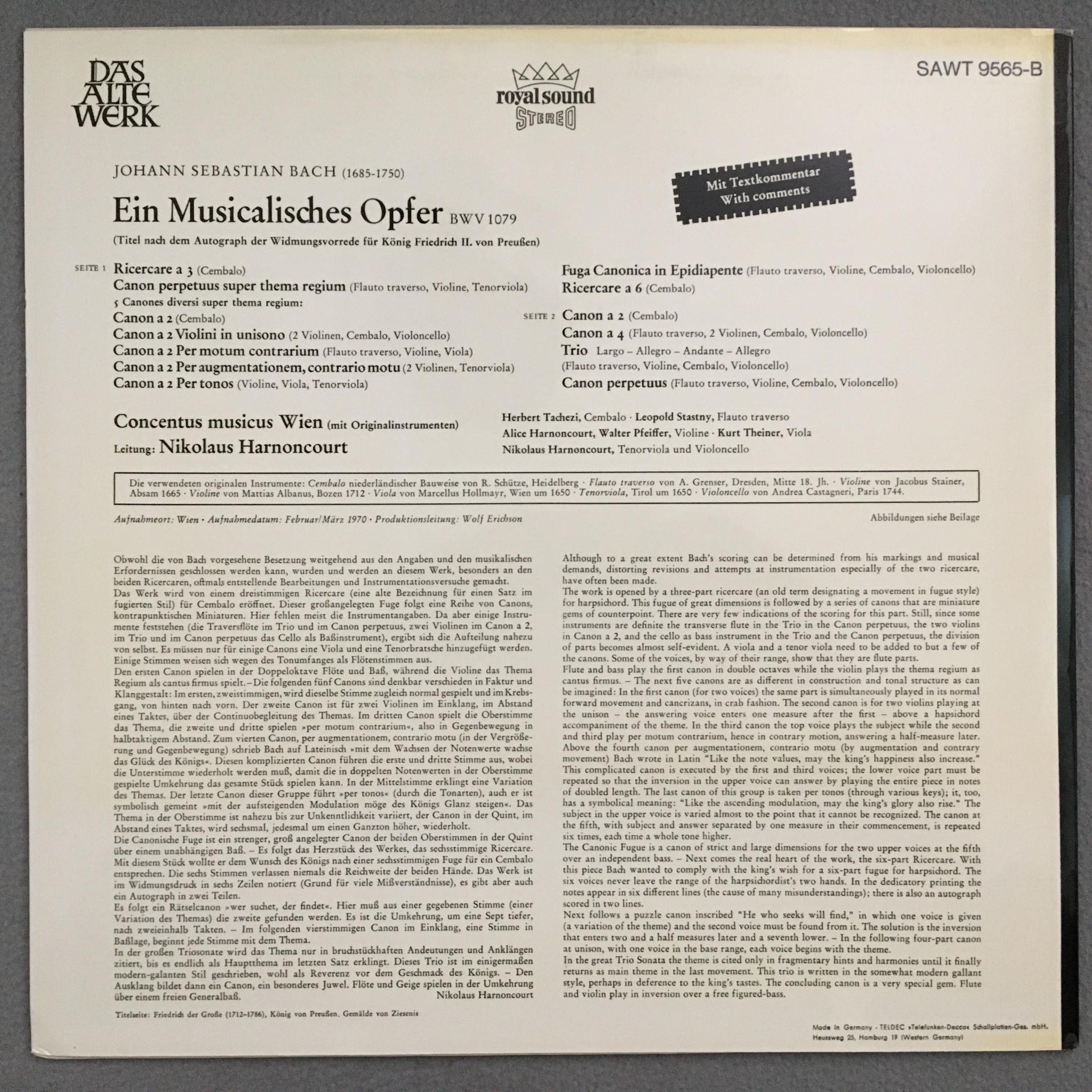 T400 Bach Musical Offering Harnoncourt Telefunken SAWT 9565-B Stereo