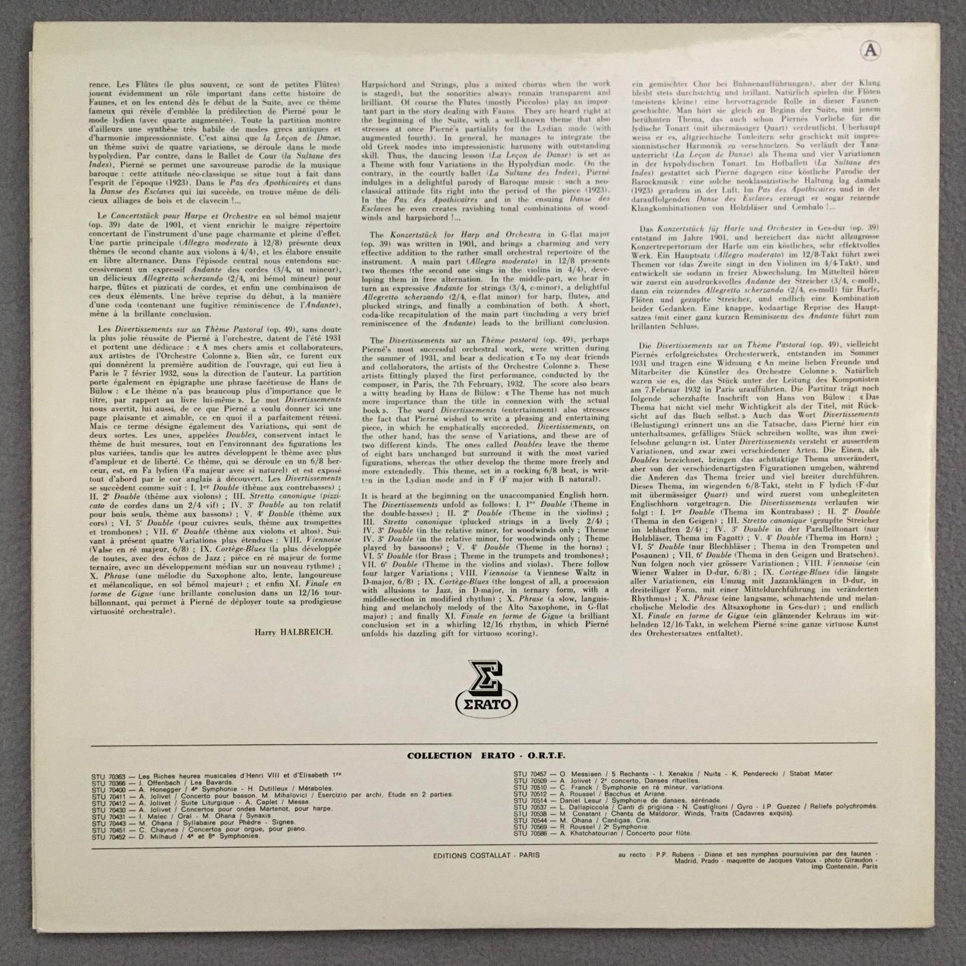 T401 Pierne Suite Concert Piece for Harp Laskine Erato STU 70587 Stereo