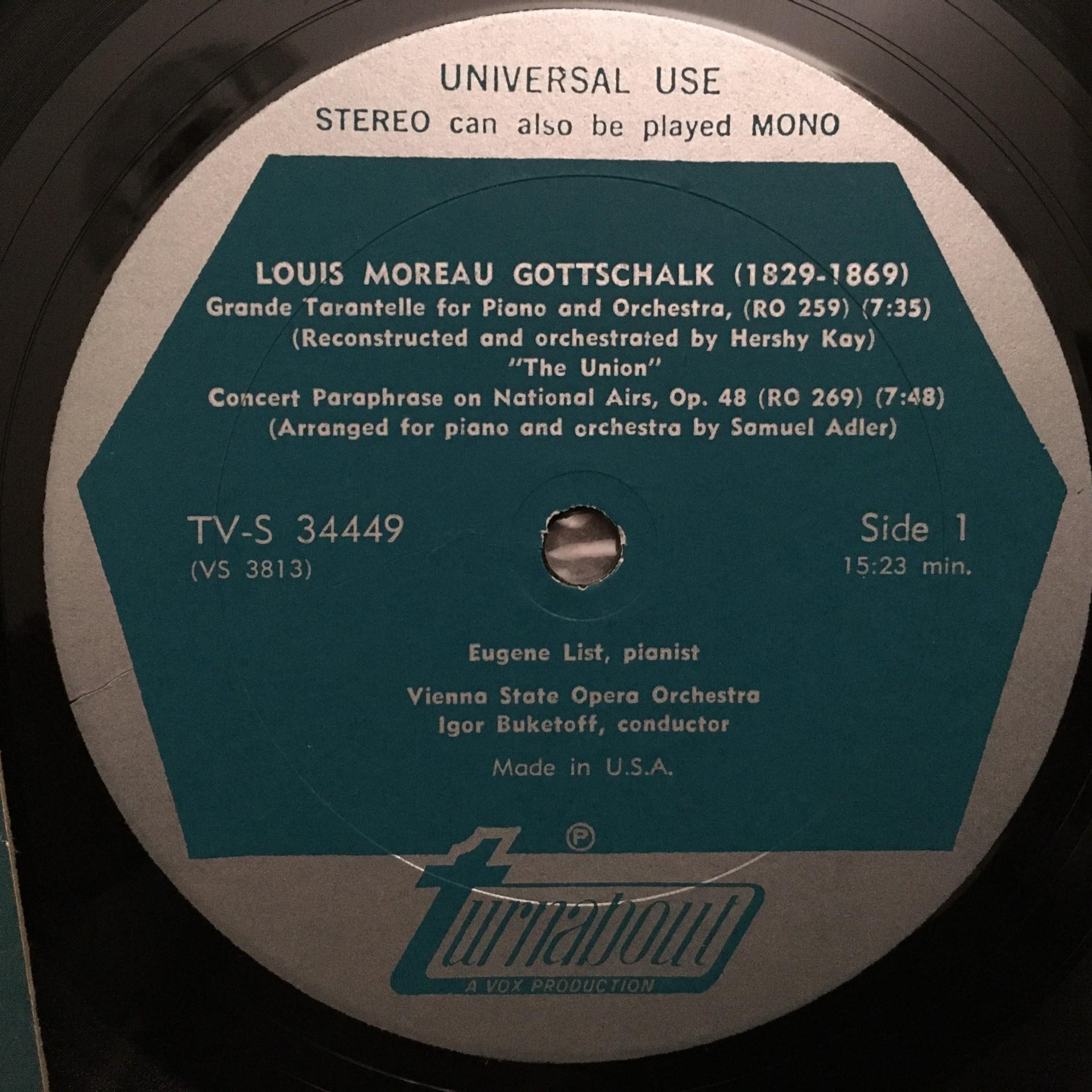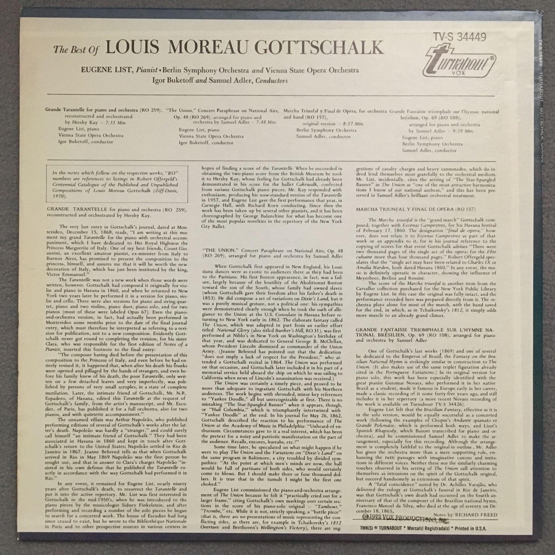 T412 The Best of Gottschalk Piano Music List Adler Turnabout TV-S 34449 Stereo