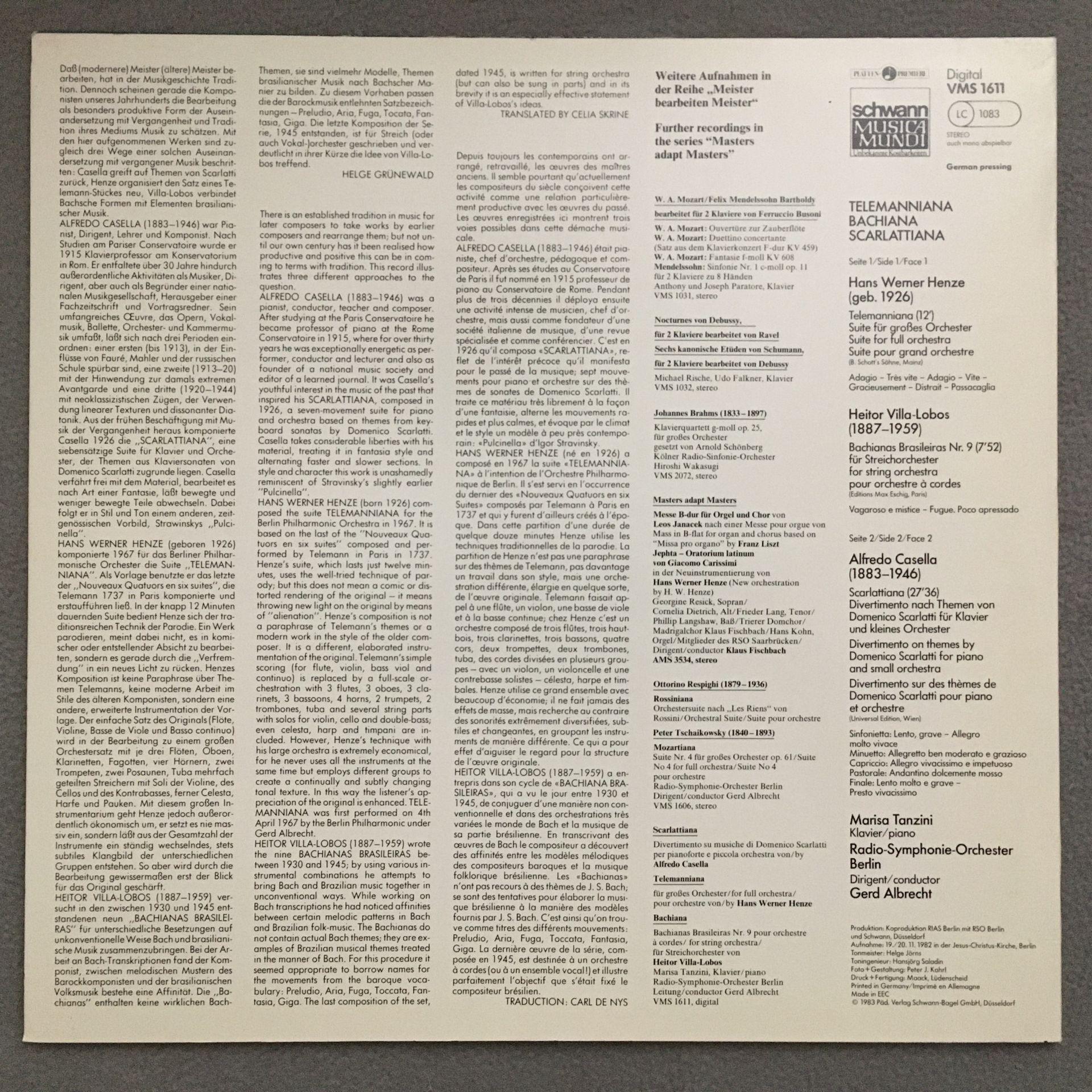 T416 Telemanniana Scarlattiana Bachiana Tanzini Albrecht Schwann VMS 1611 Dig St