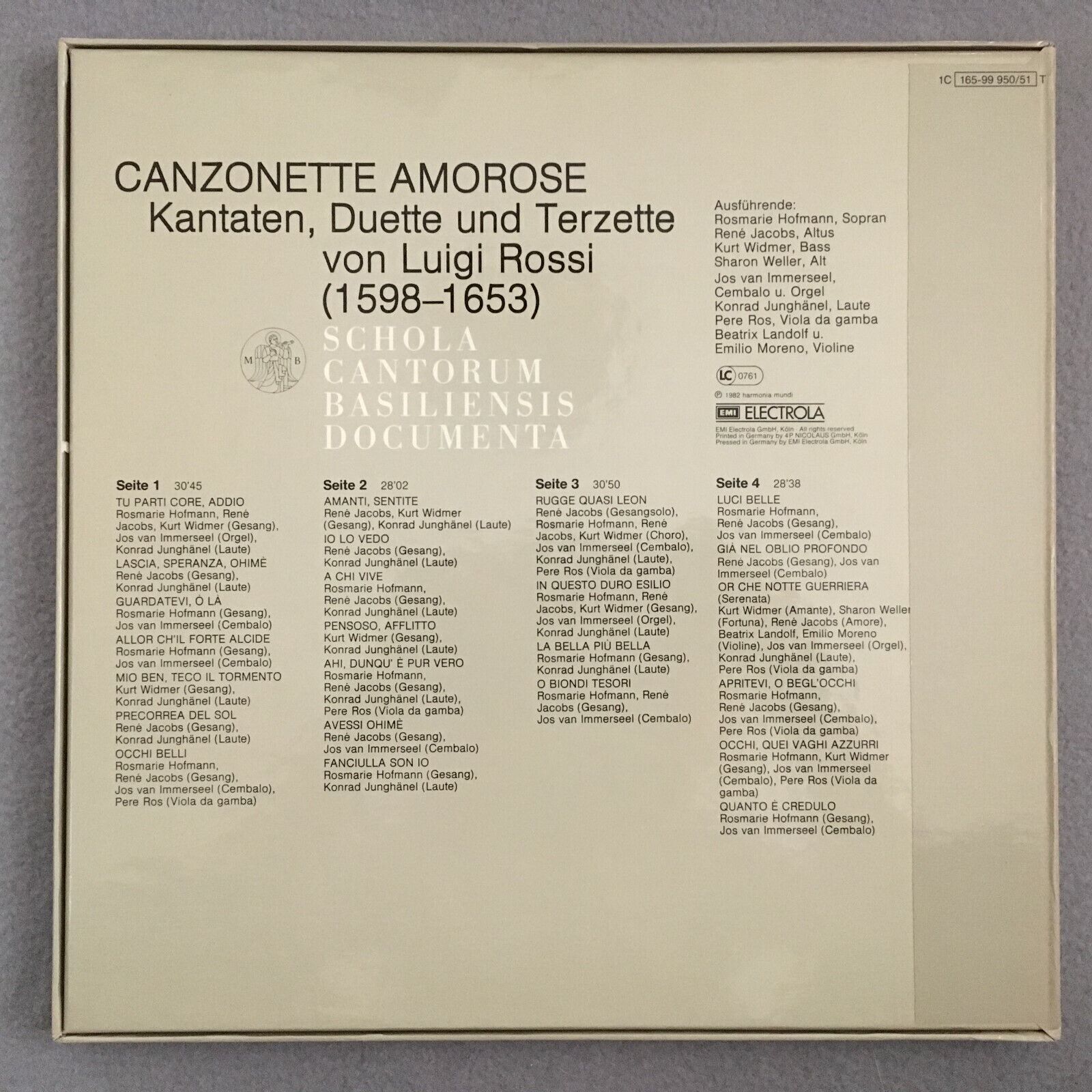 B038 L. Rossi Canzonette Amorose Jakobs 2LP HM 1C 165-99 950/51 T Digital Stereo