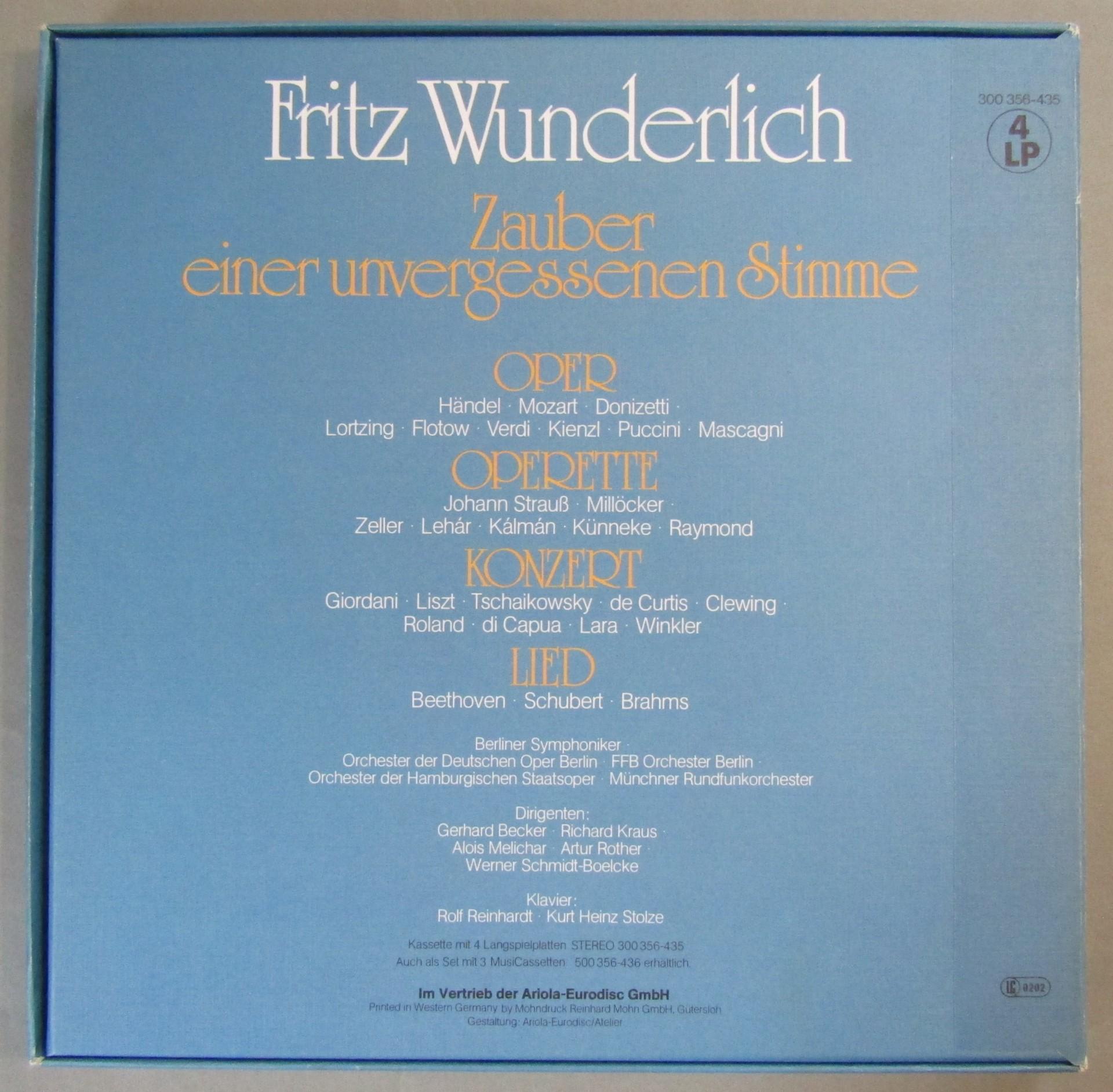 G169 Wunderlich Opera Handel Mozart Concert Song 4LP Eurodisc 300 356-435 Stereo