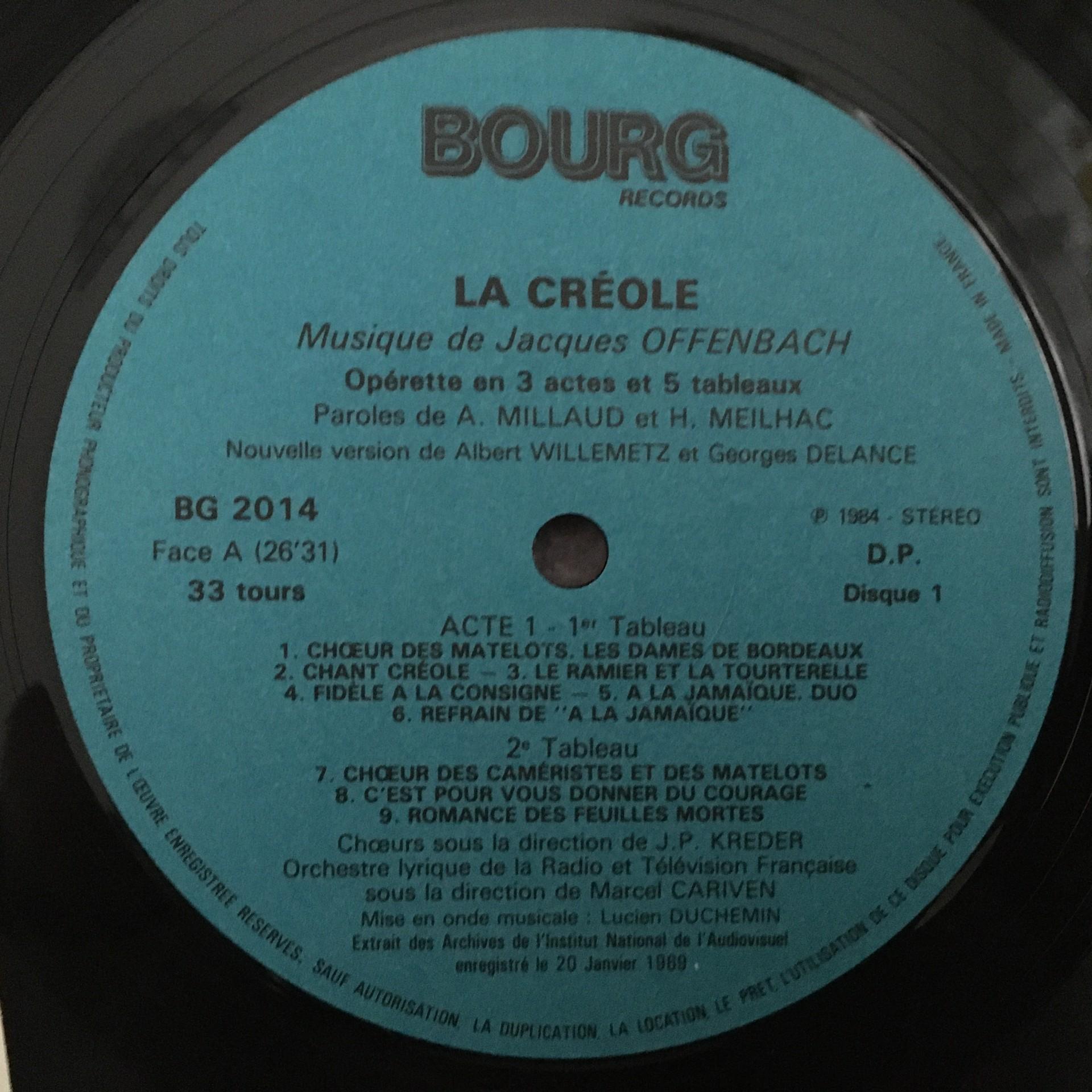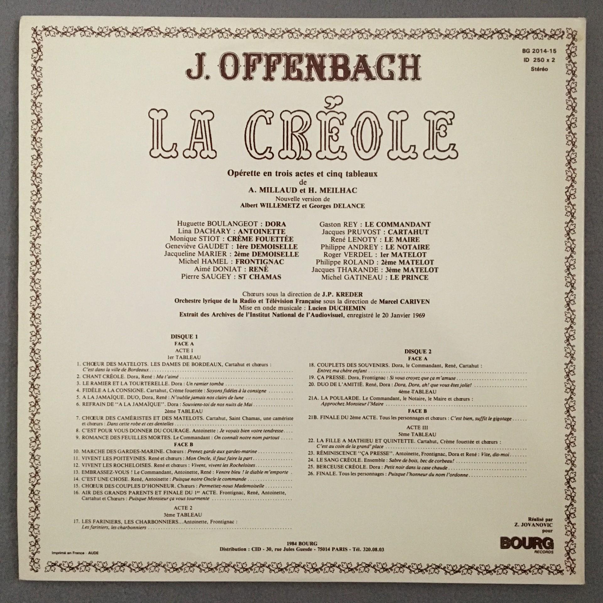 T454 Offenbach La Creole Paroles de Millaud Meilhac Cariven 2LP Bourg BG 2014-15