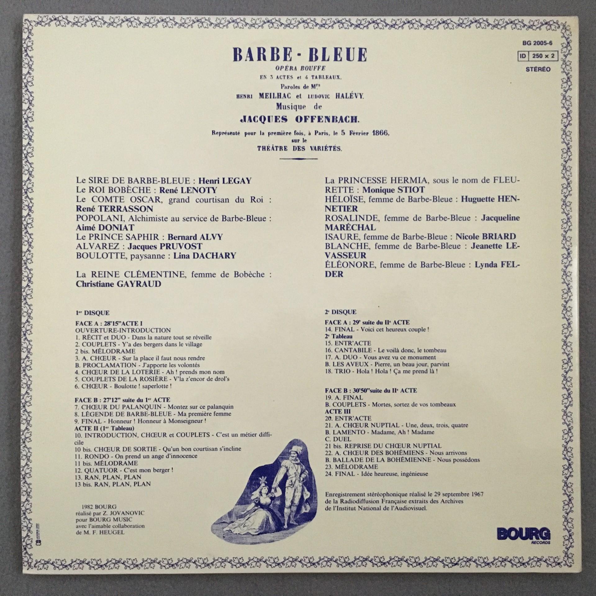 T456 Offenbach Barbe Bleue Meilhac Halevy Doussard 2LP Bourg BG 2005-6
