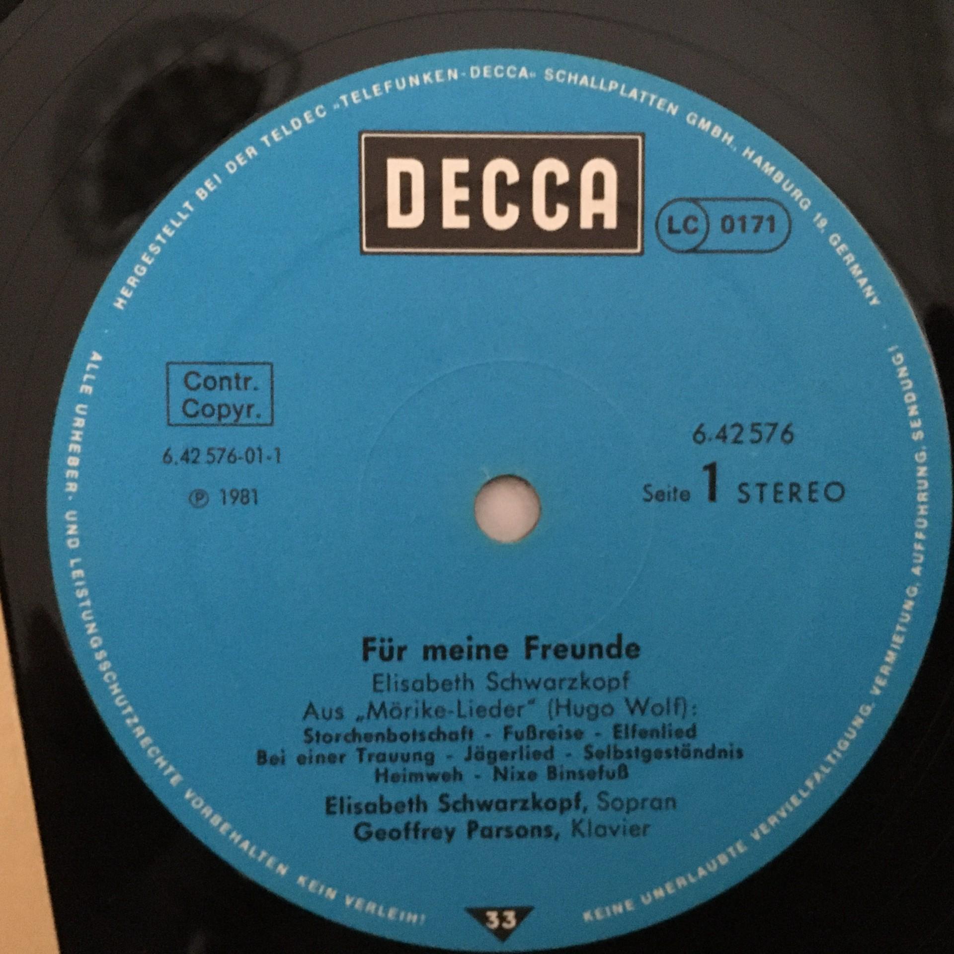 T463 Elisabeth Schwarzkopf For My Friends DECCA 6.42576 AW Stereo