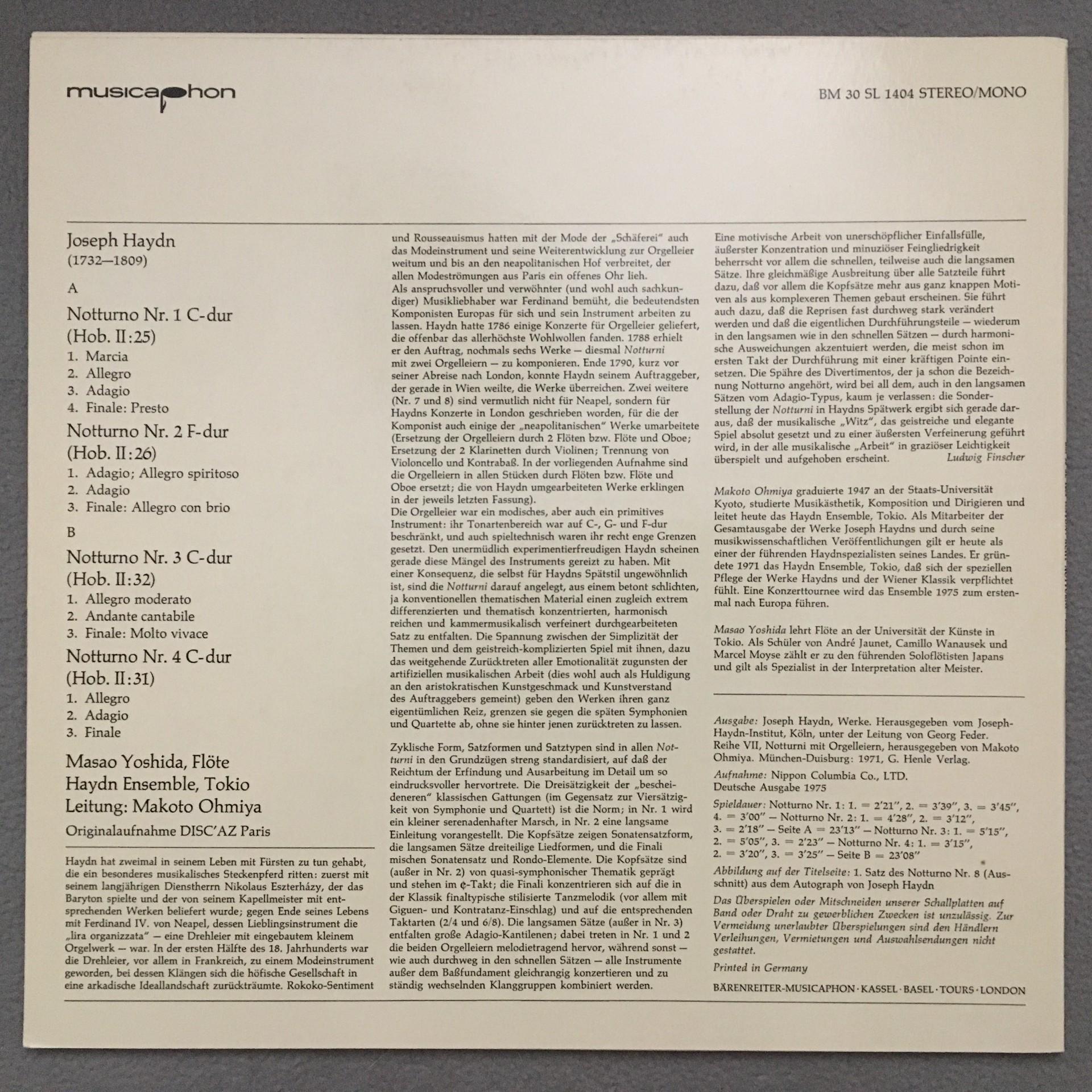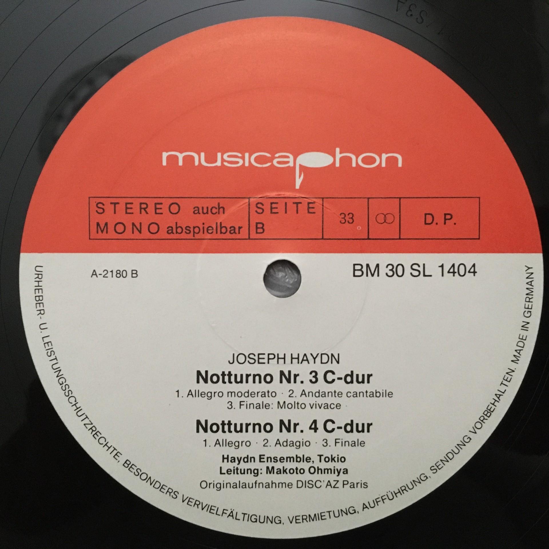 T485 Haydn 8 Notturnes Vol.I Yoshida Ohmiya Musicaphon BM 30 SL 1404 Stereo