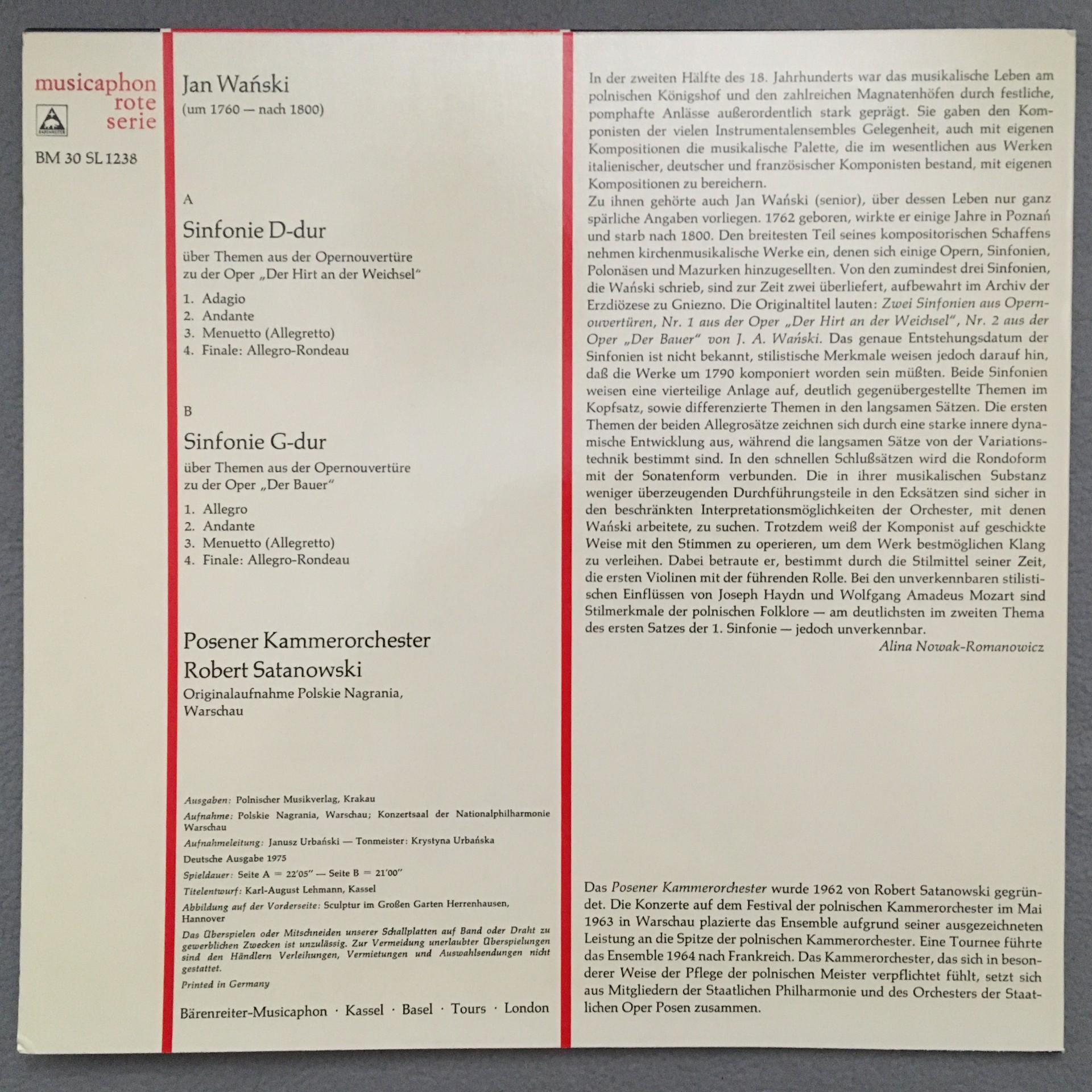 T494 Wanski Symphonies Satanowski Musicaphon BM 30 SL 1238 Stereo