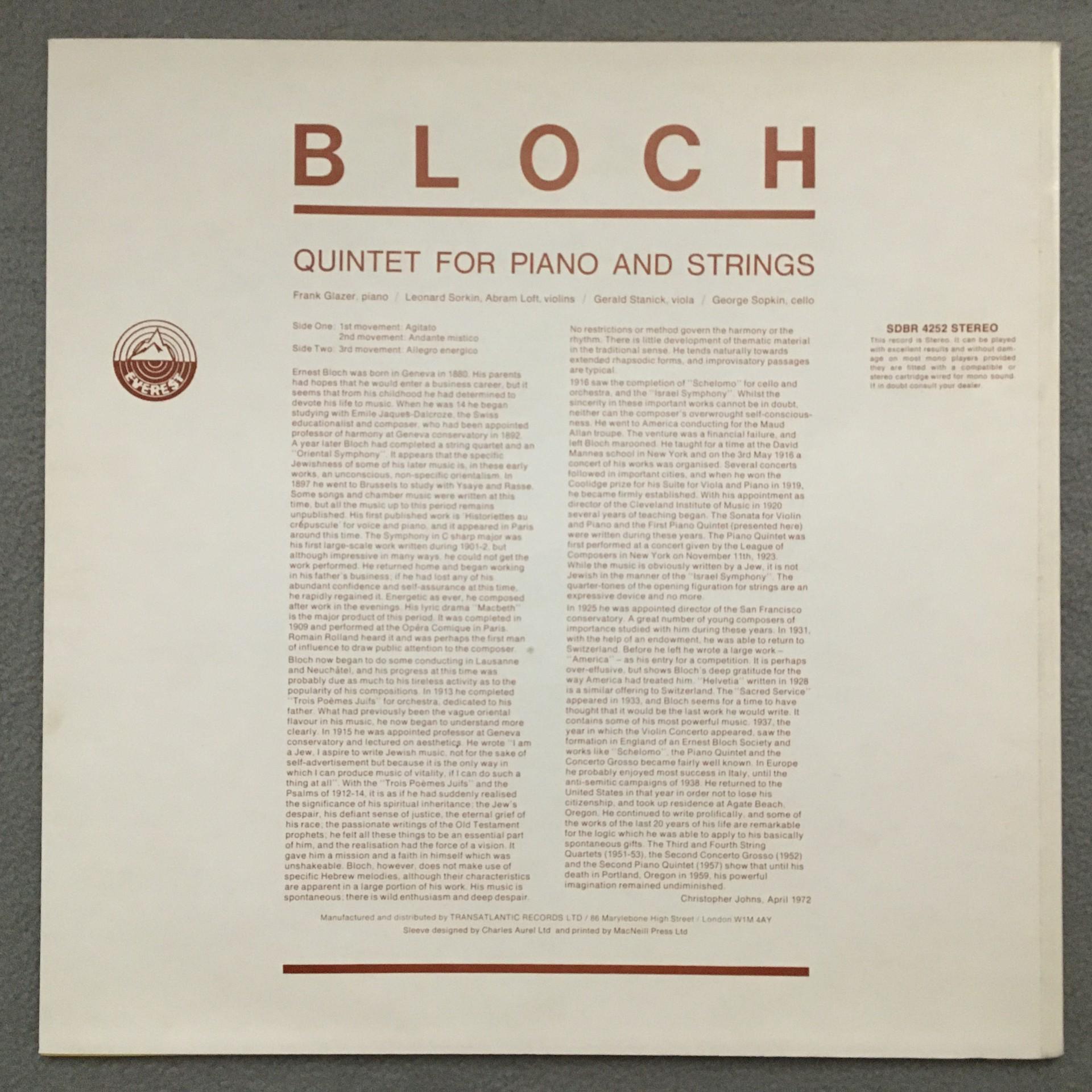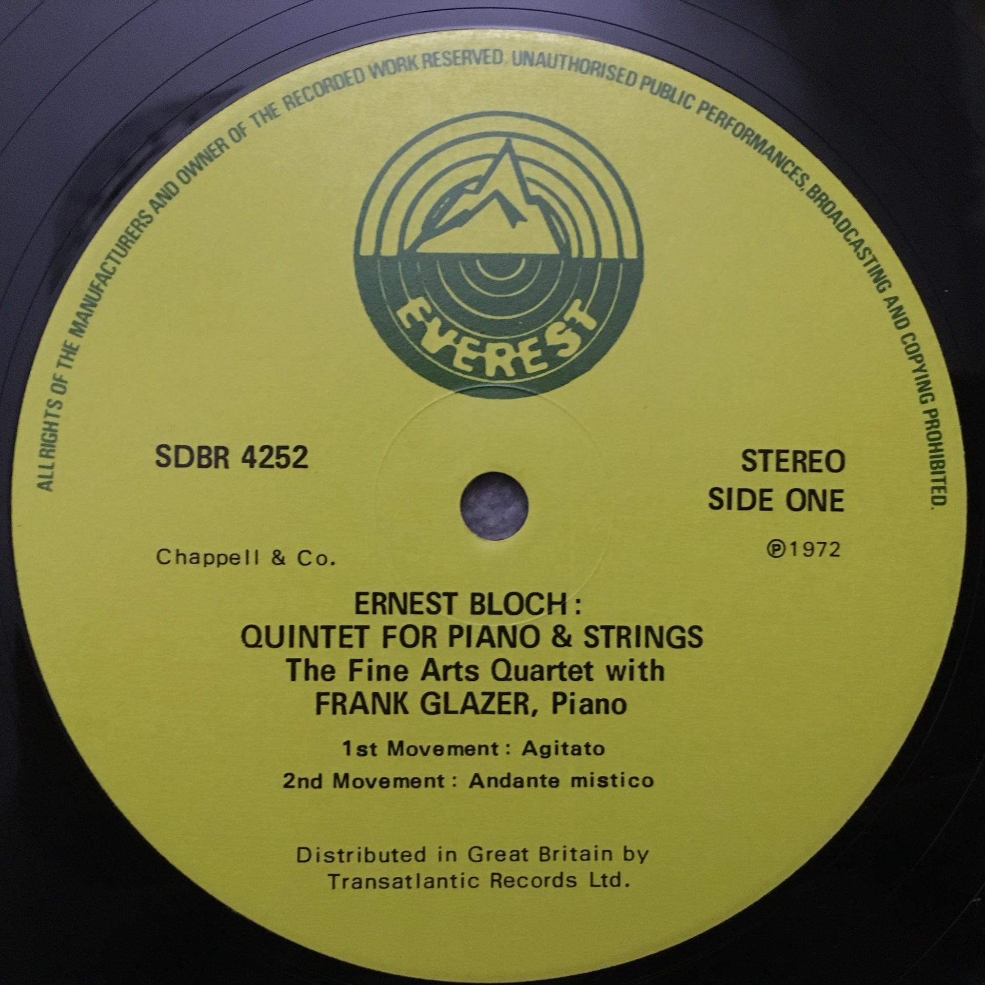 T507 Bloch Quintet for Piano & Strings Glazer Everest SDBR 4252 Stereo