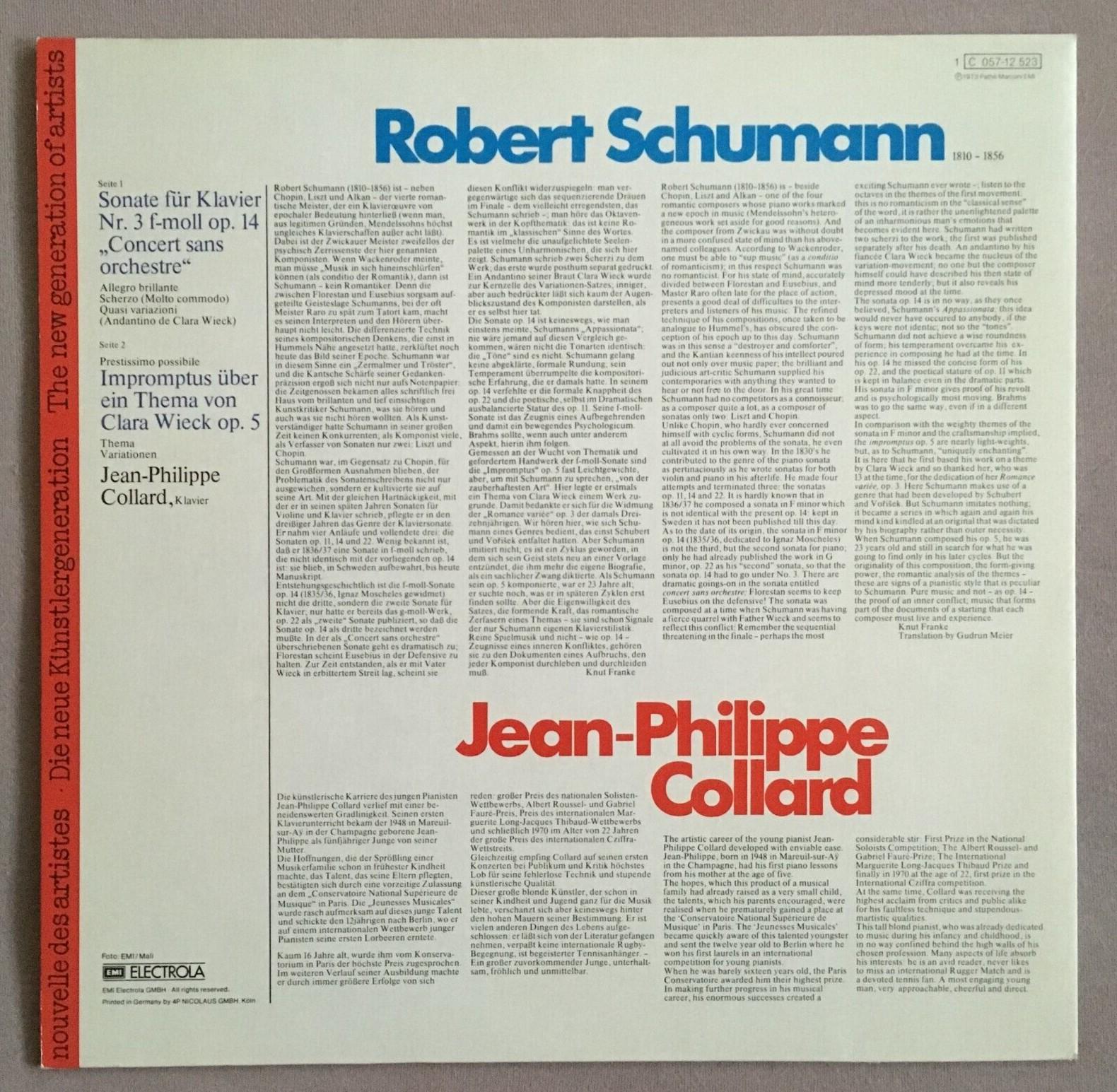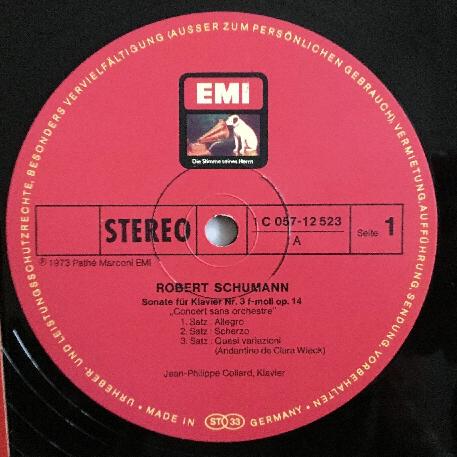 P322 Schumann Piano Sonata Impromptus Collard Piano EMI 1 C 057-12 523 Stereo
