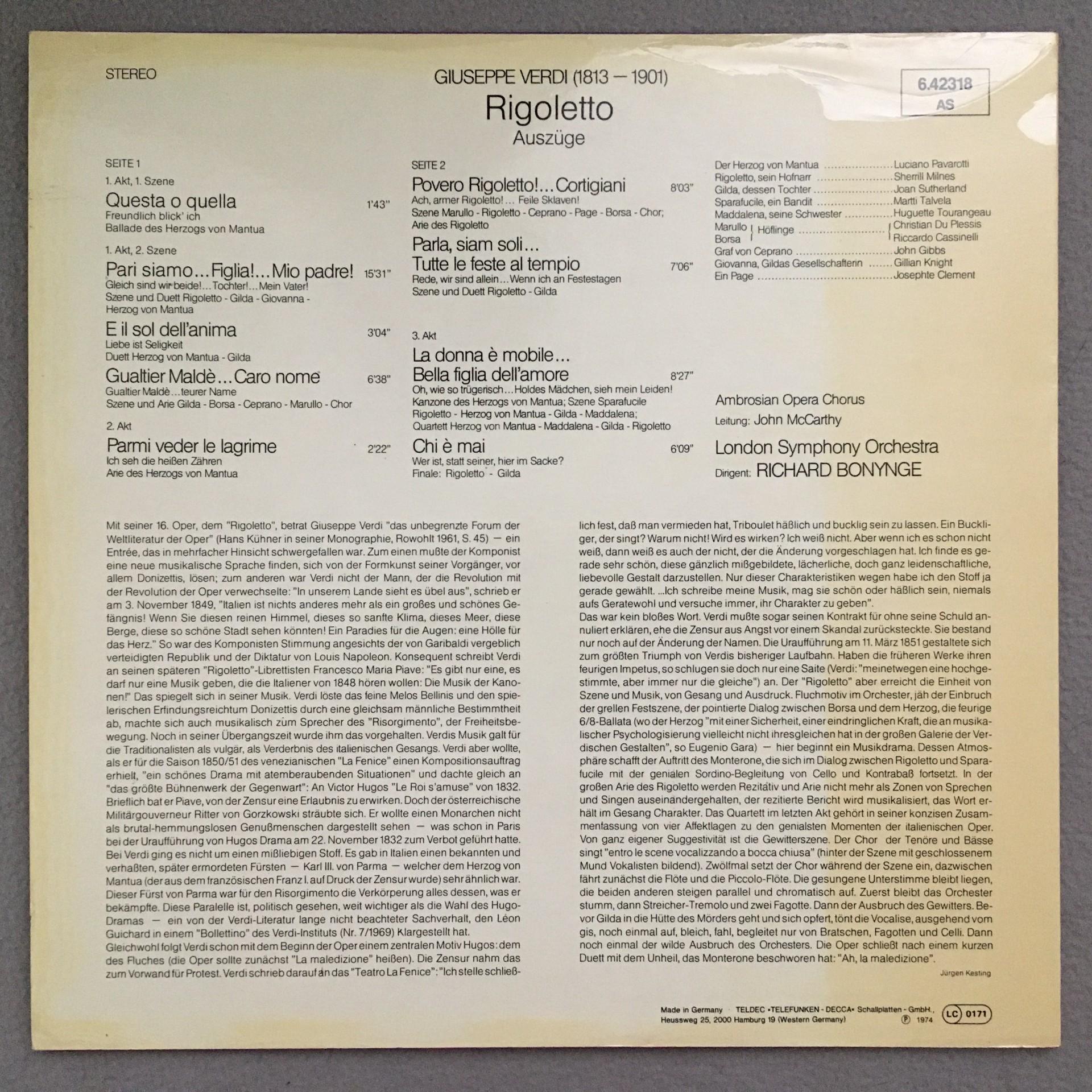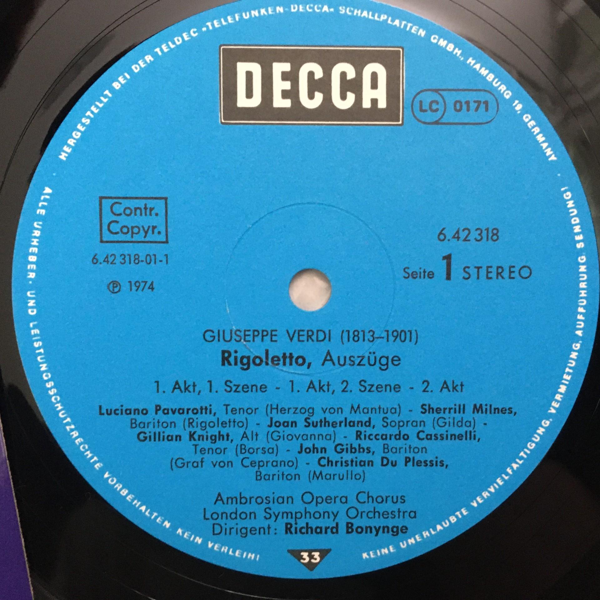 Q972 Verdi Rigoletto Highlights Pavarotti Sutherland Bonynge DECCA 6.42318 AS St