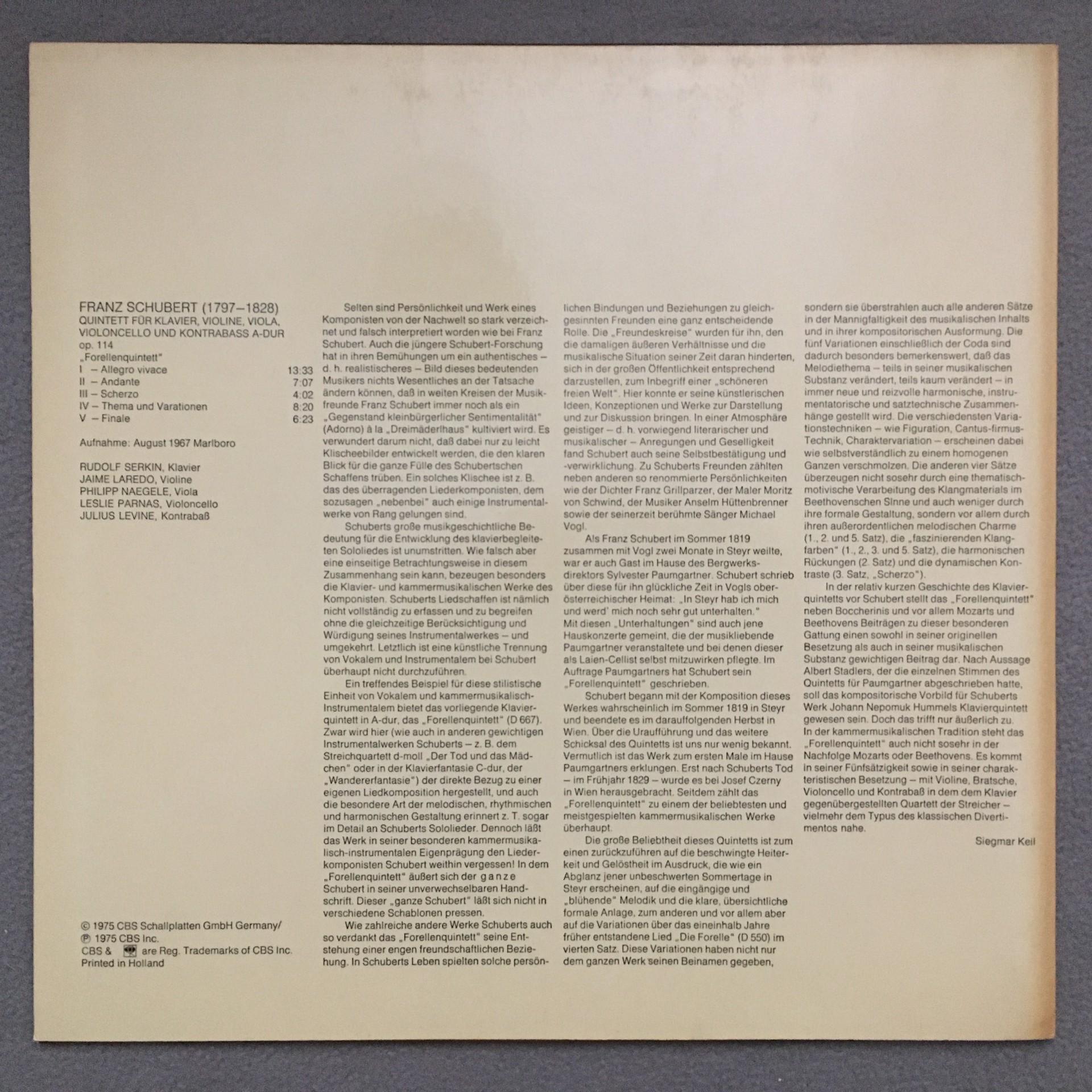 T528 Schubert Piano Quintet Serkin Laredo Parnas Levine CBS 61 623 Stereo