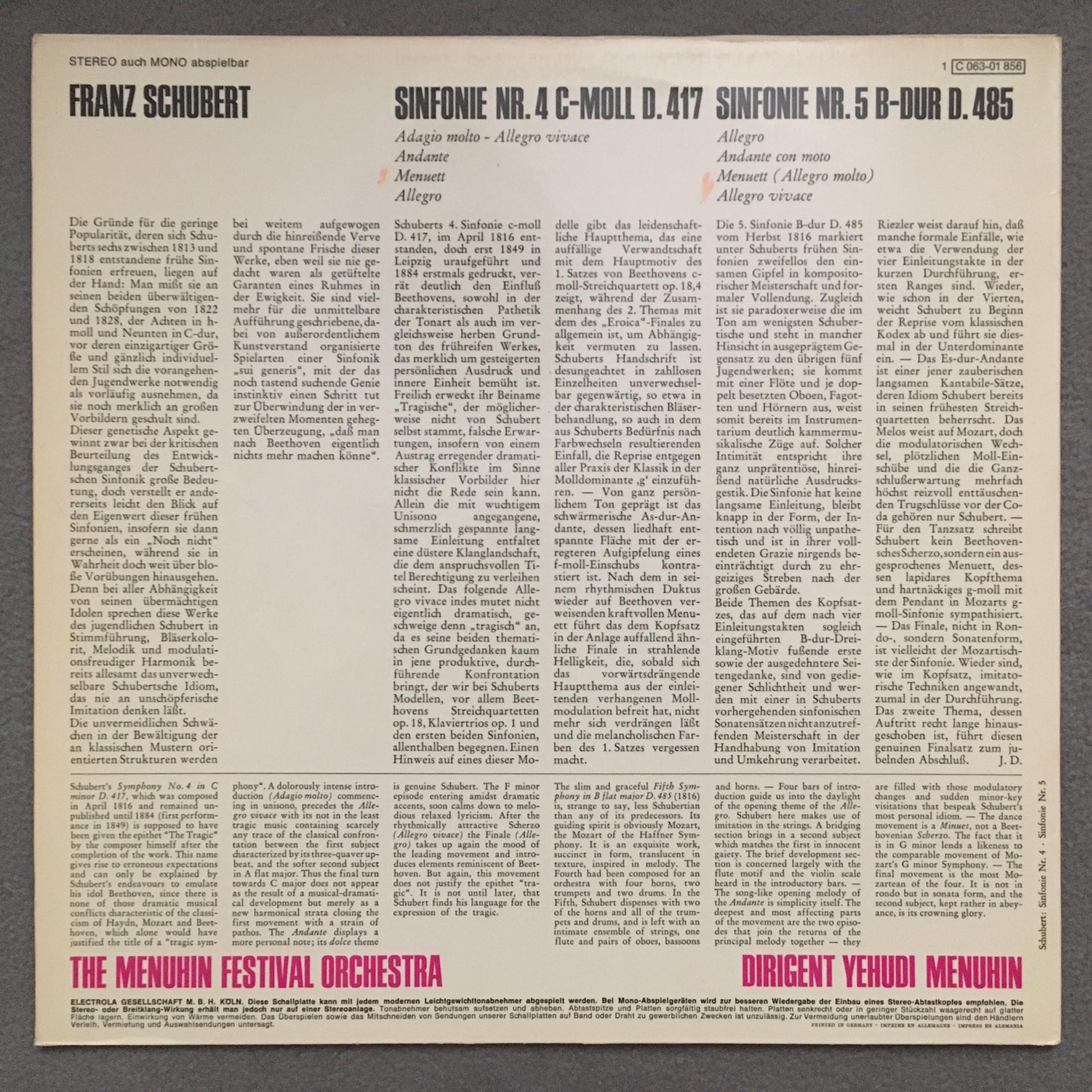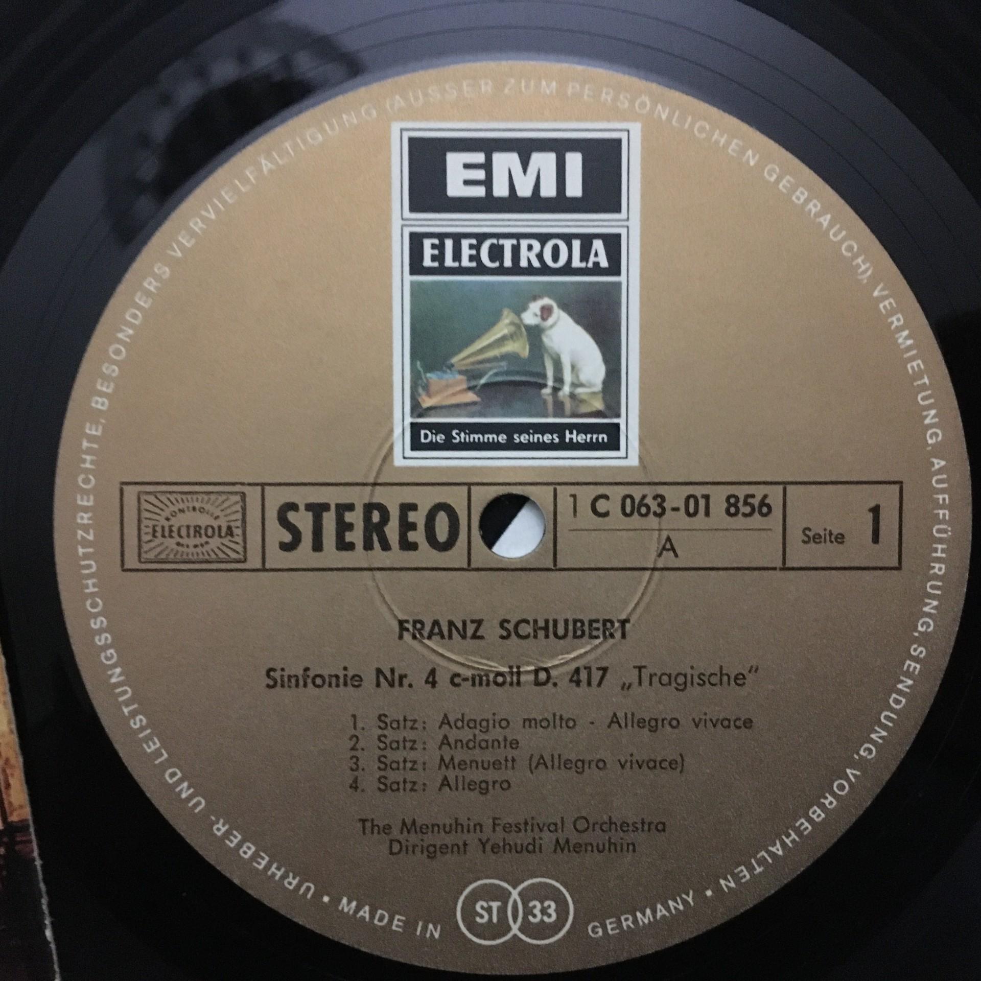 T542 Schubert Symphonies No.4 & No.5 Menuhin EMI 1 C 063-01 856 Stereo