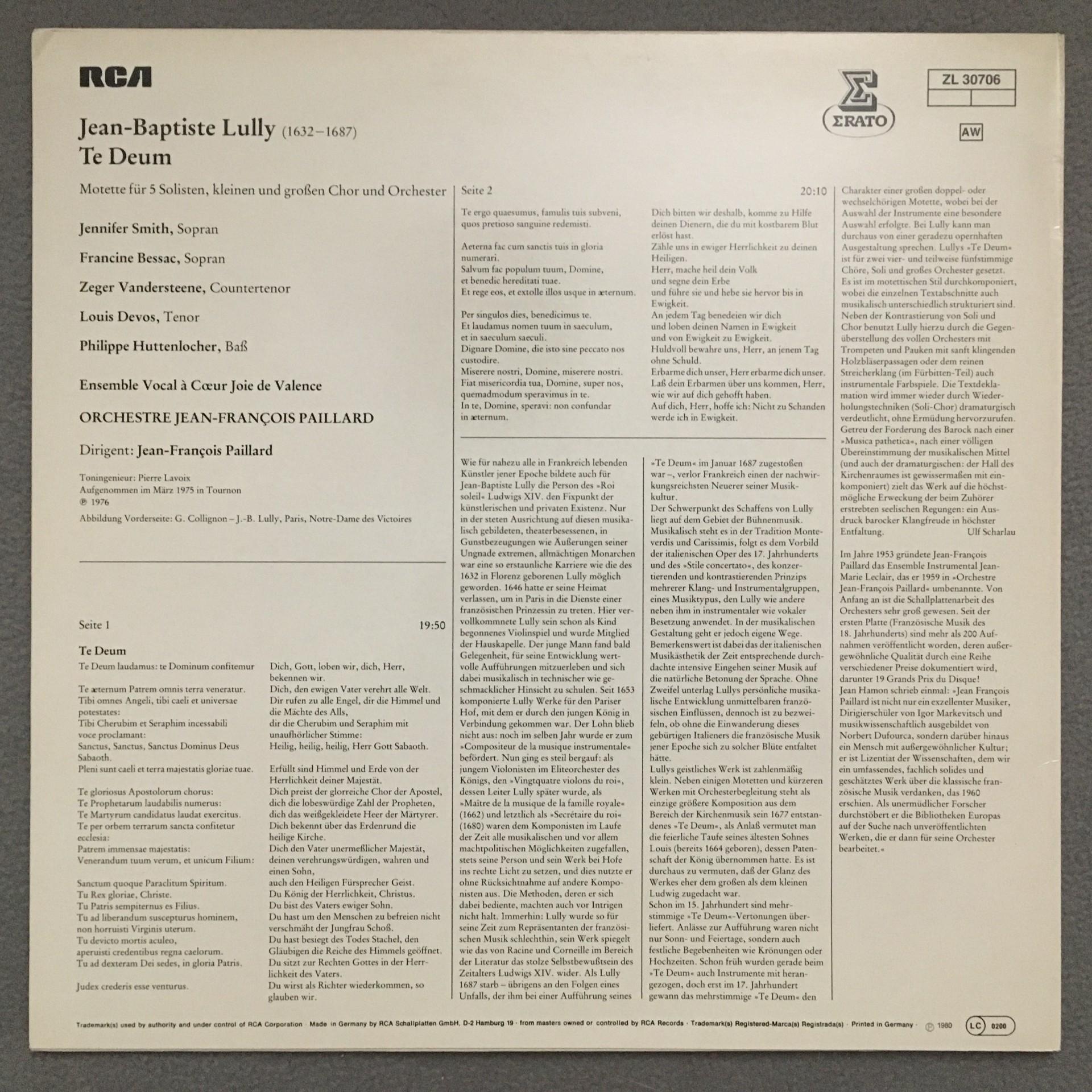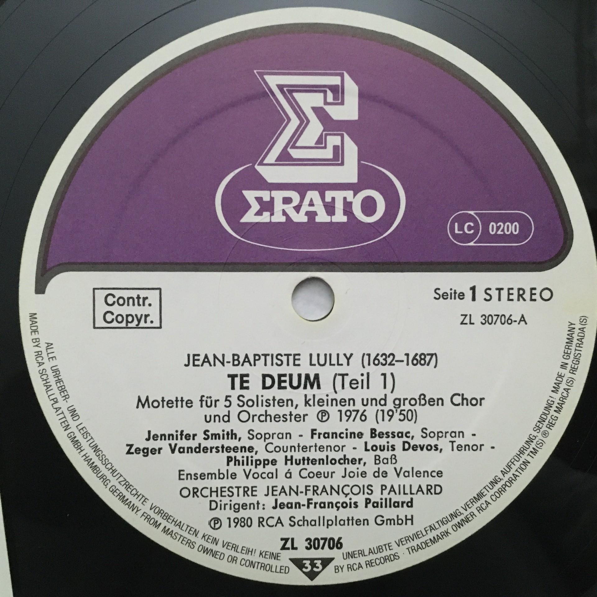 T558 Lully Te Deum Paillard Erato ZL 30706 Stereo