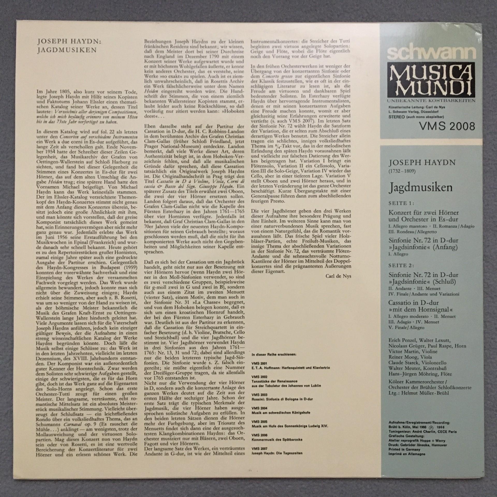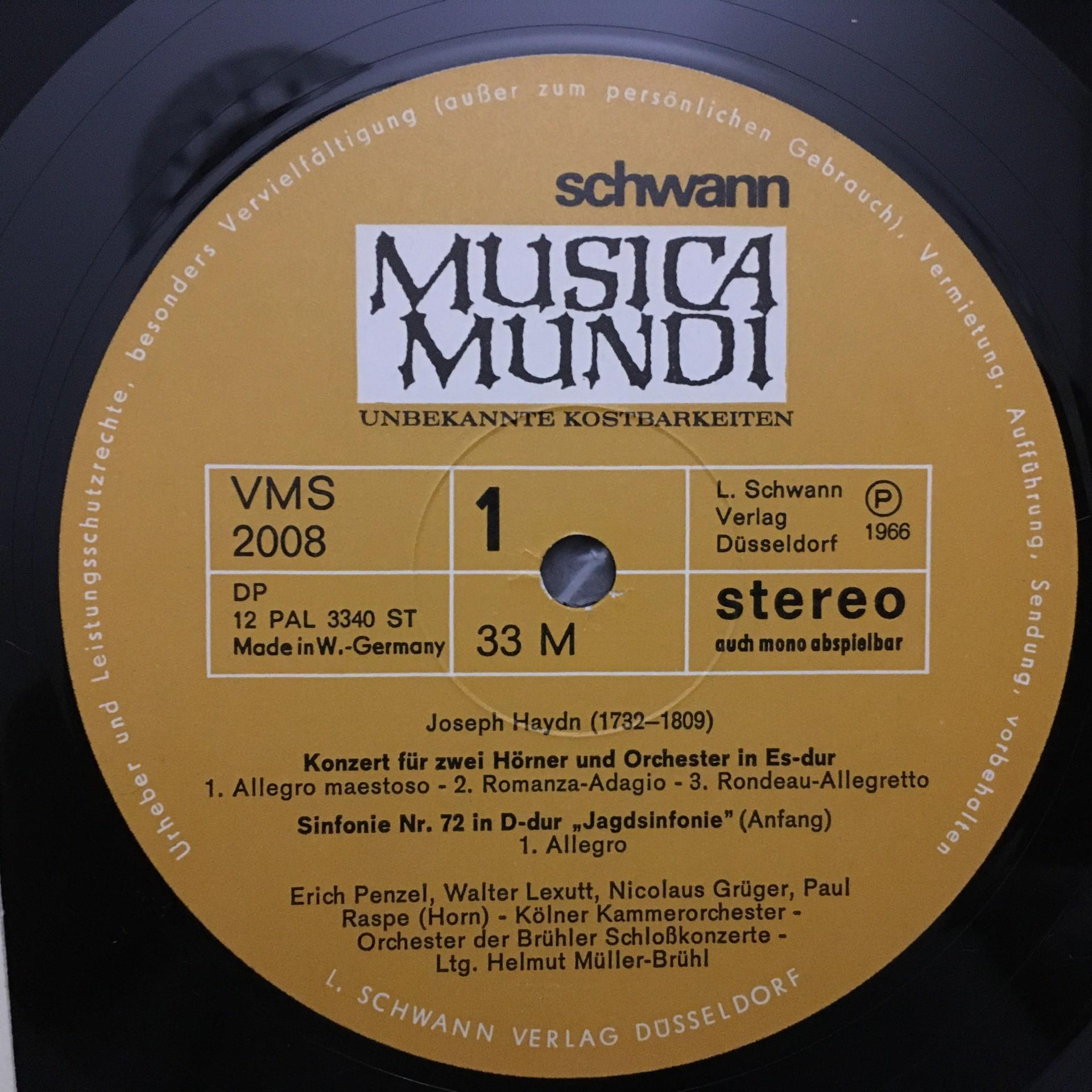 T575 Haydn Hunting Music Concerto Müller-Brühl Schwann VMS 2008 Stereo