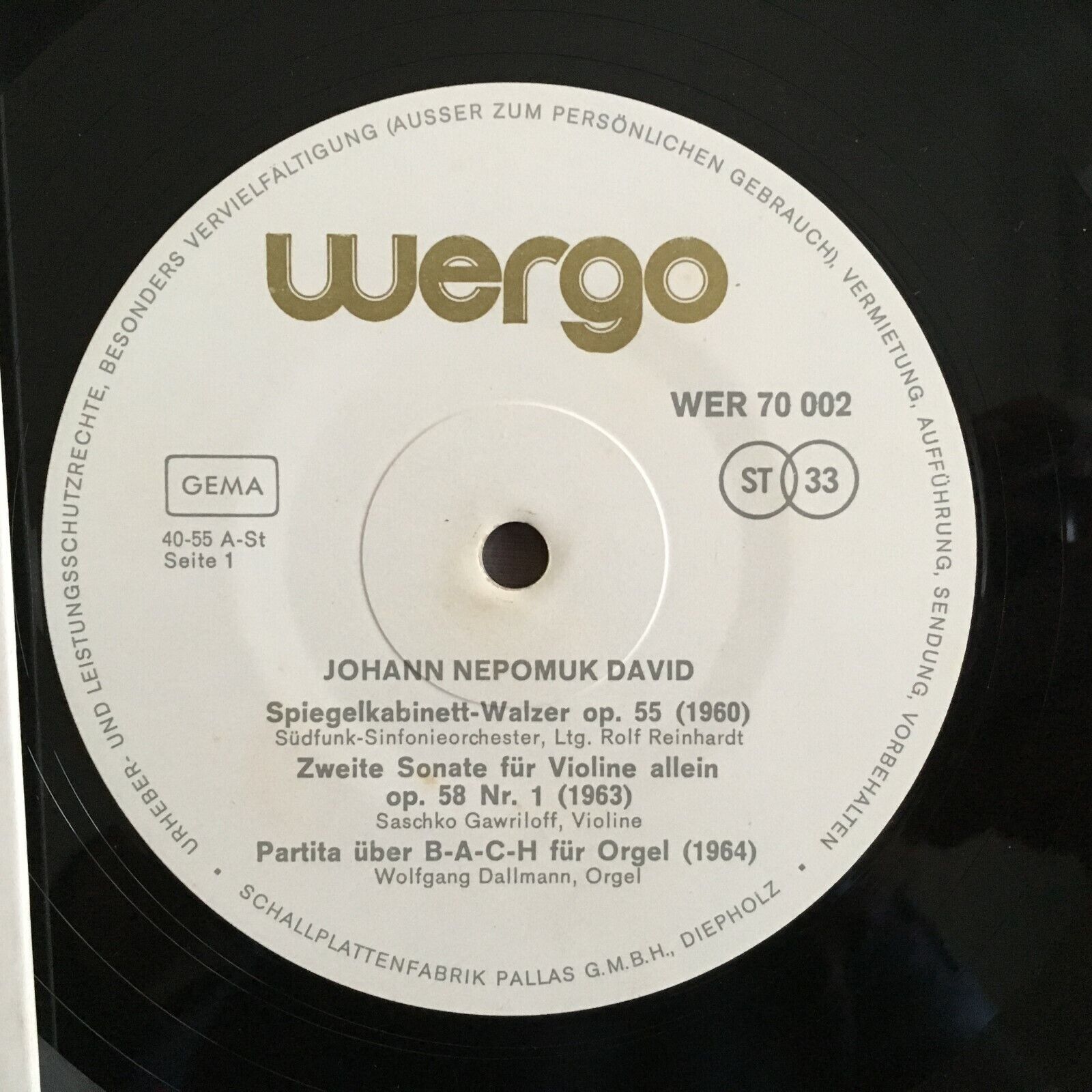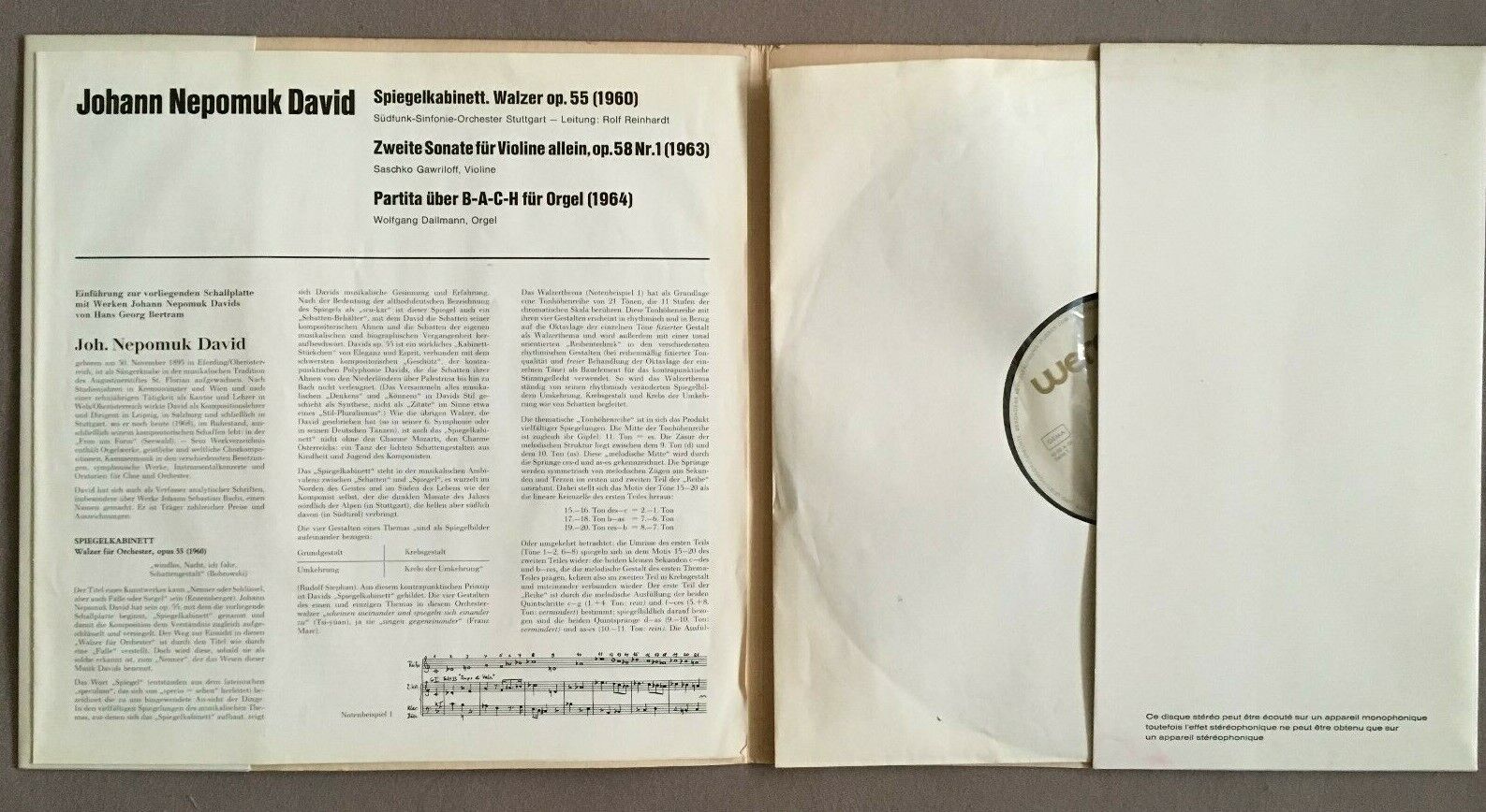X073 J. N. David Waltz Violin Sonata Partita for Organ Wergo WER 70 002 Stereo