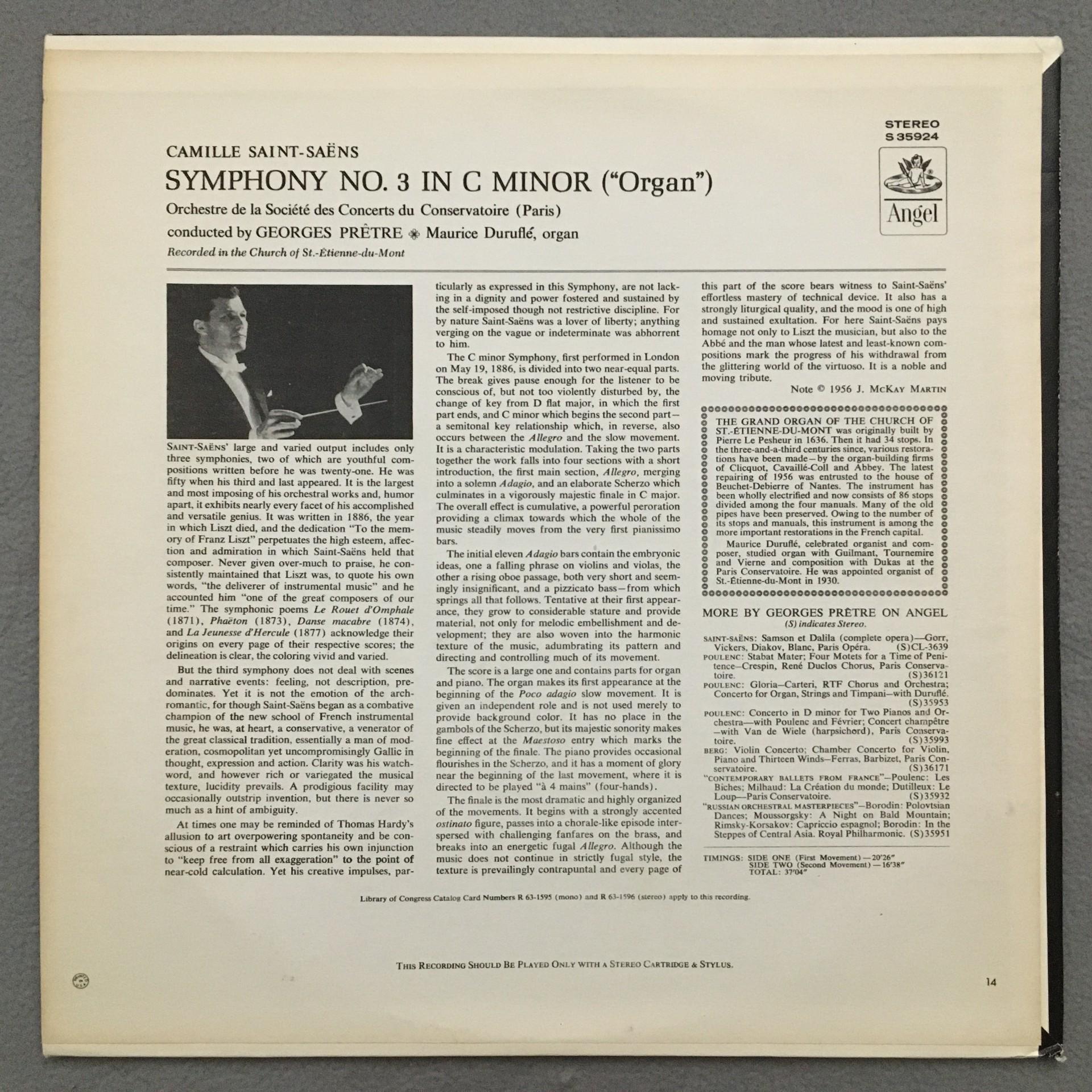 T587 Saint-Saens Symphony No.3 Durufle Organ Pretre Angel 35924 Stereo