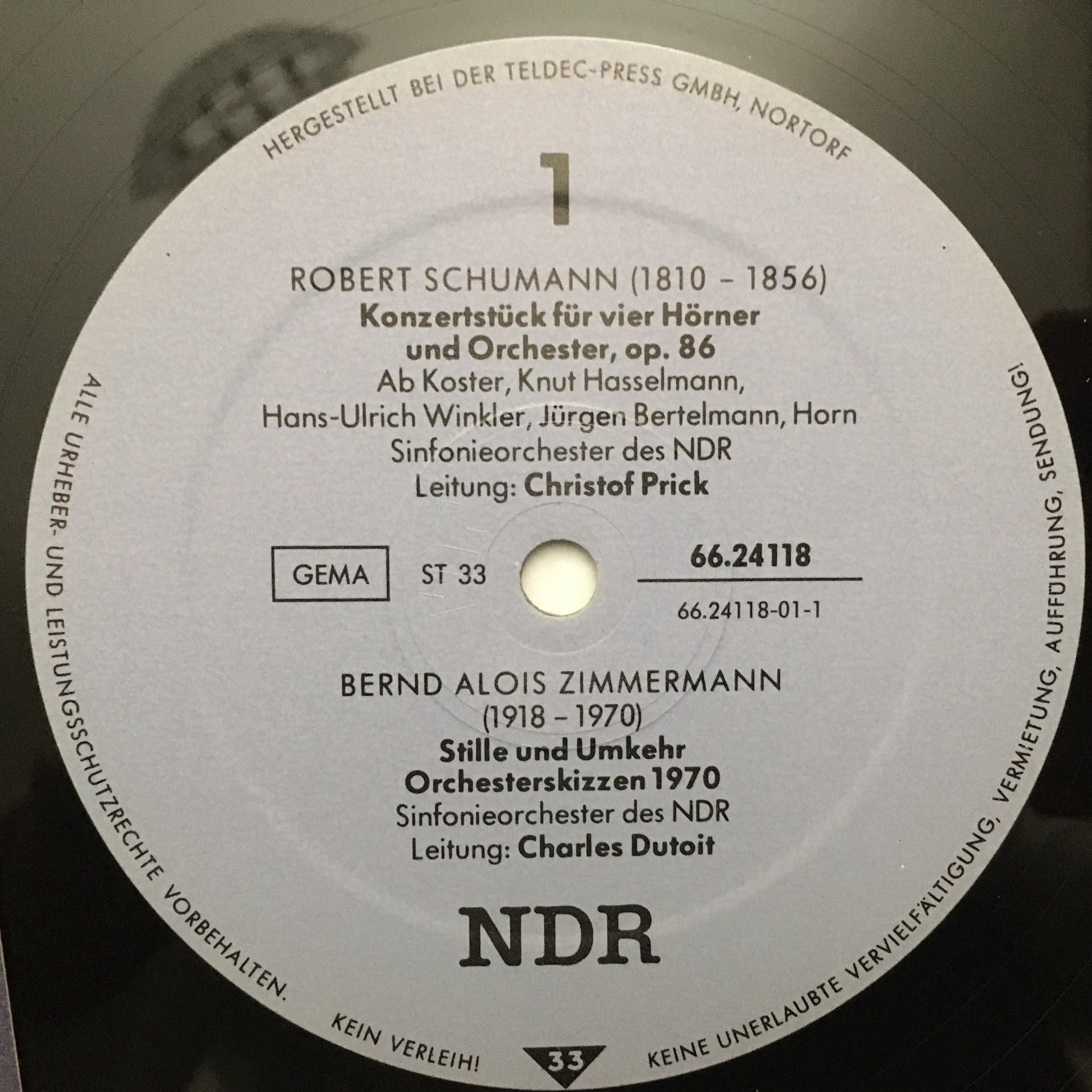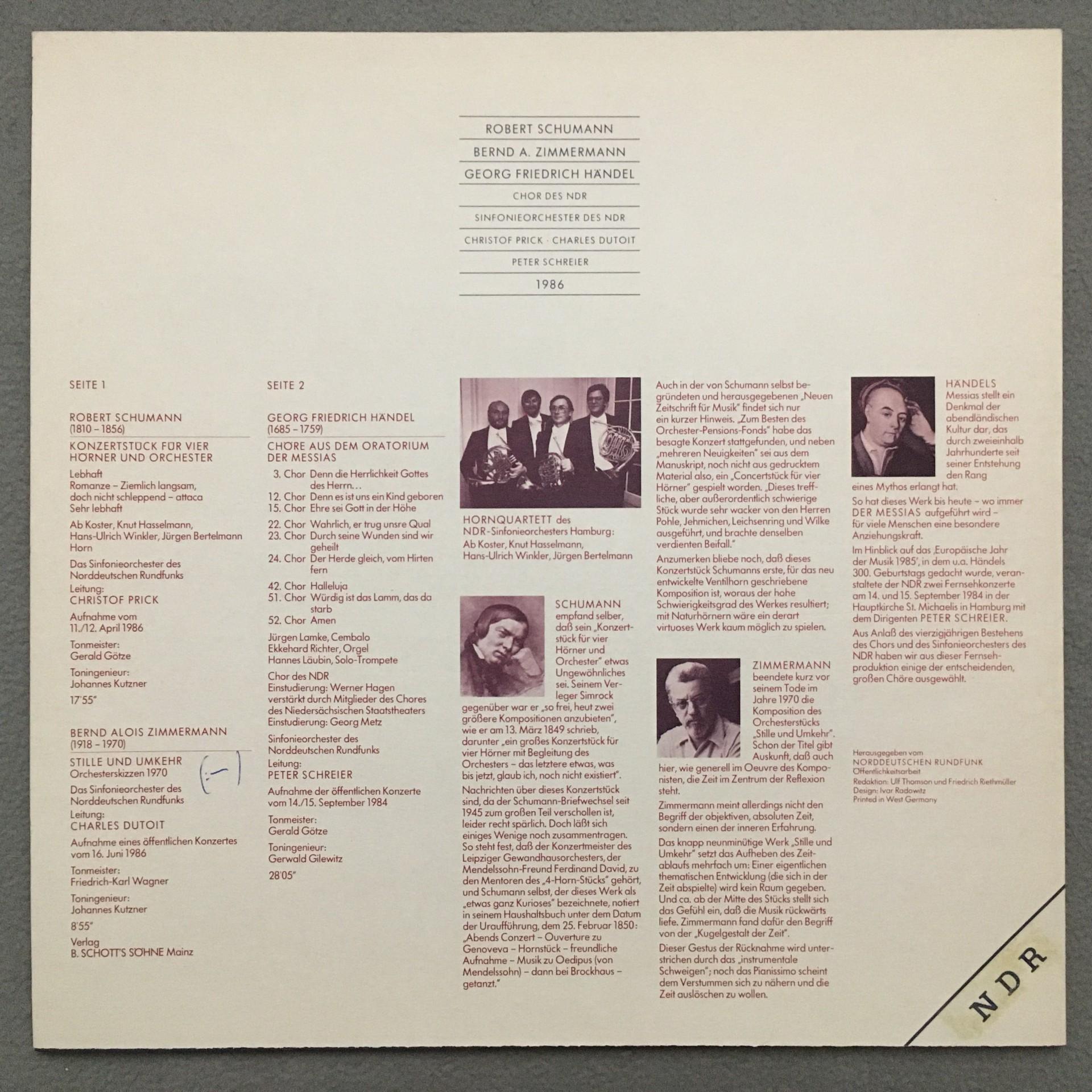 T589 Schumann Concert Piece Handel Chorals Dutoit NDR 1984 2LP NDR 66.24118 St